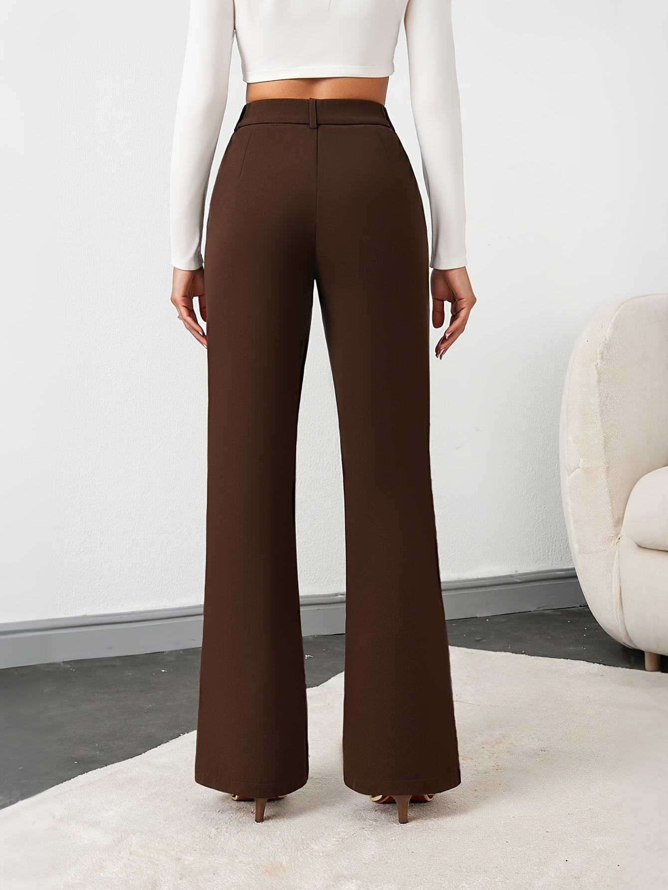 Pantalon Femme Extensible Noir – Costume, Résistant aux Plis, Taille Élastique avec Poches, Cheville Fendue, Boutons, Bureau et Décontracté, Printemps/Été/Automne