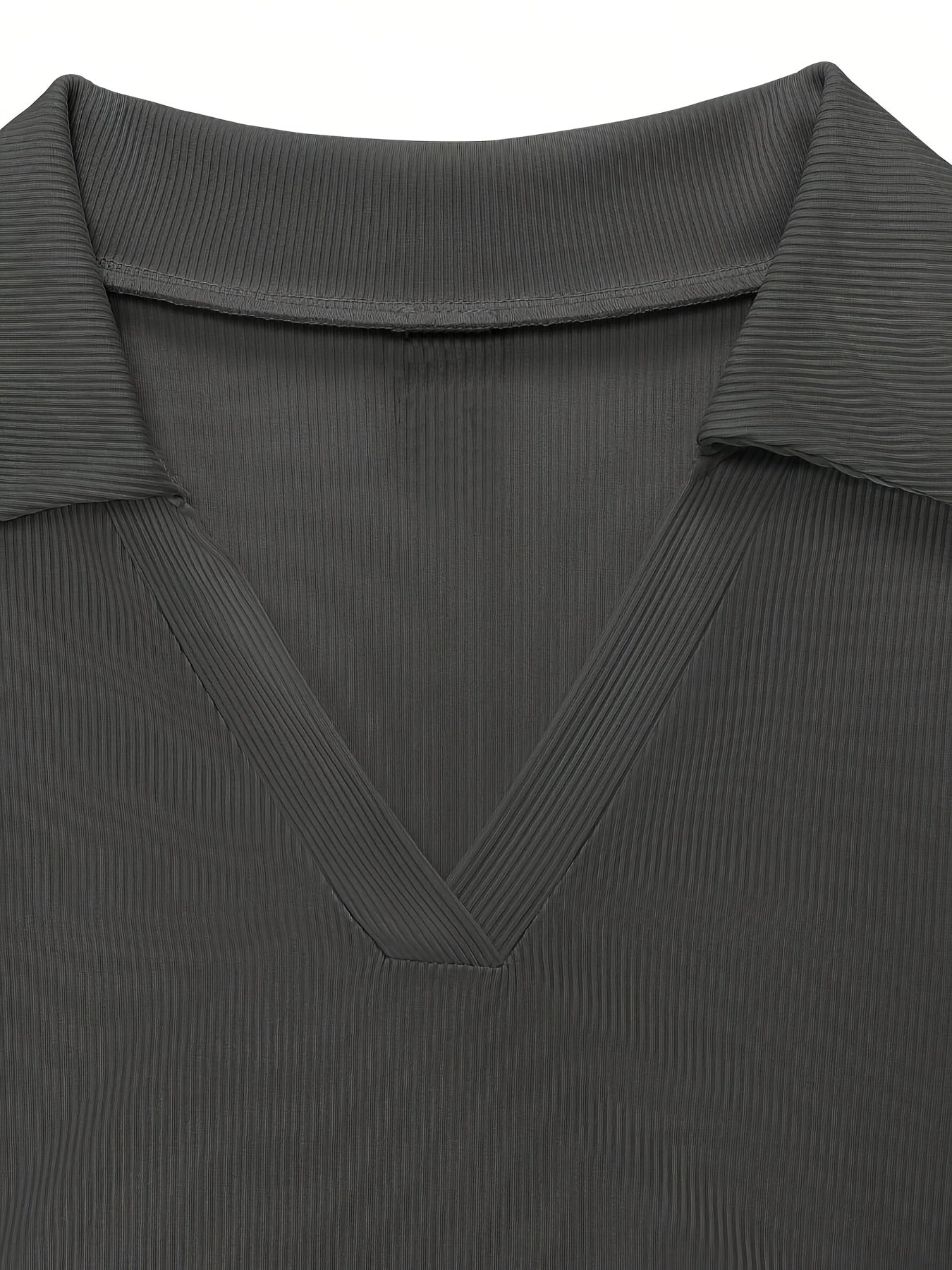 Ensemble 3 t-shirts côtelés col en V manches longues pour femmes – top printemps/automne