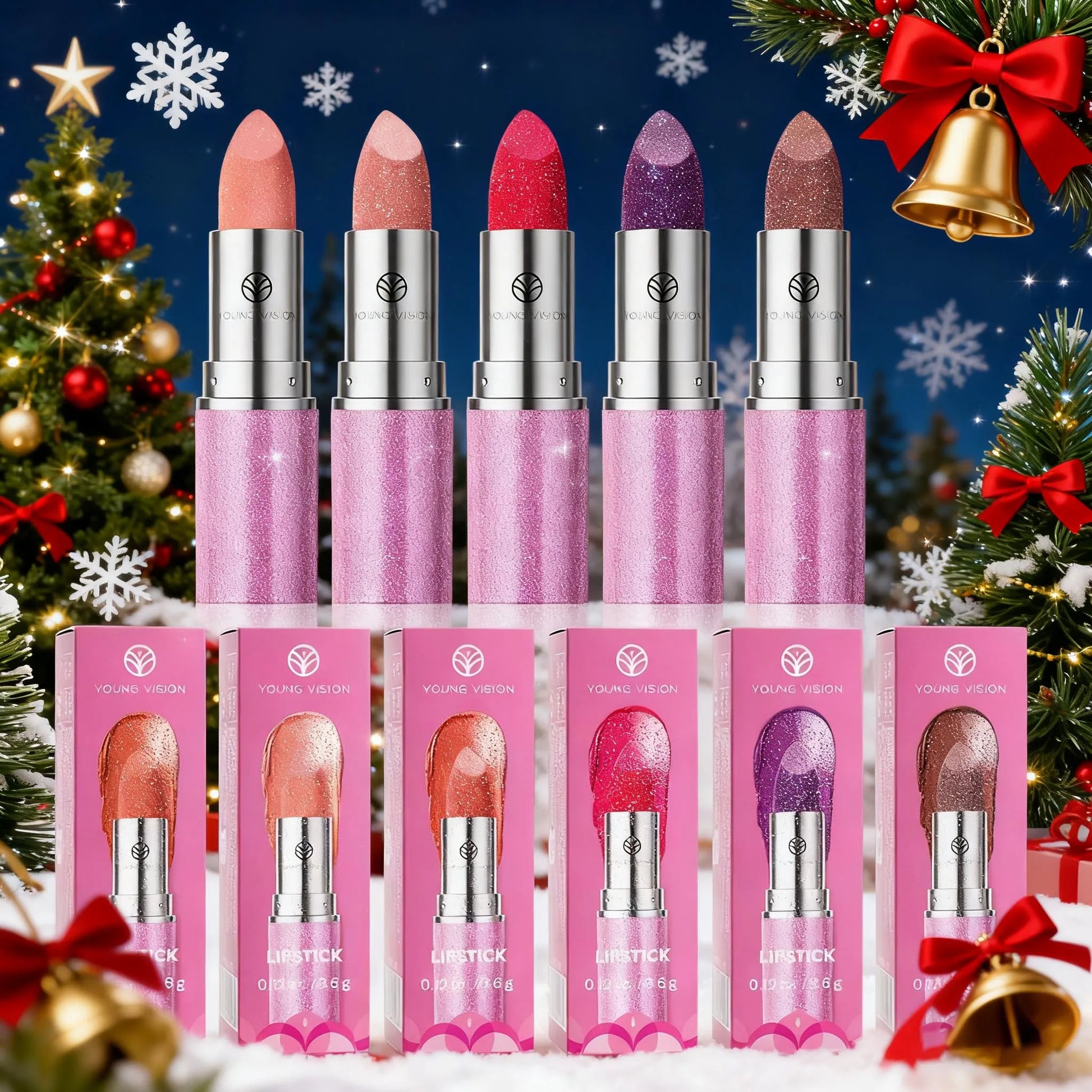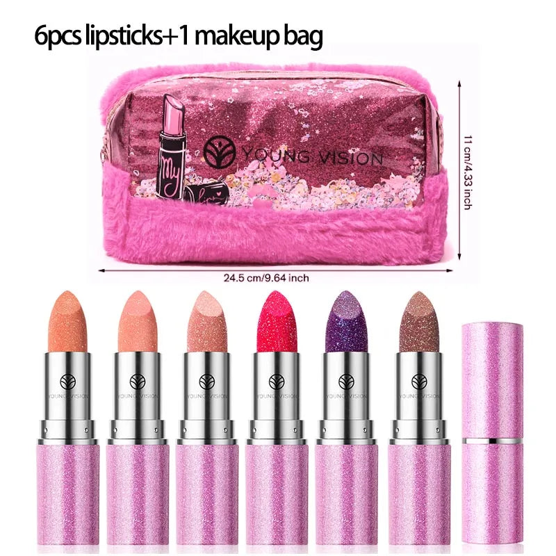 Rouge à Lèvres Changeant de Couleur – 6 Couleurs, Effet Perlé et Flash, Couleur Durable, Ombre à Paupières