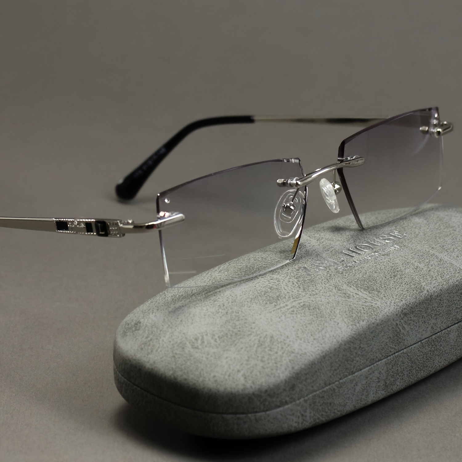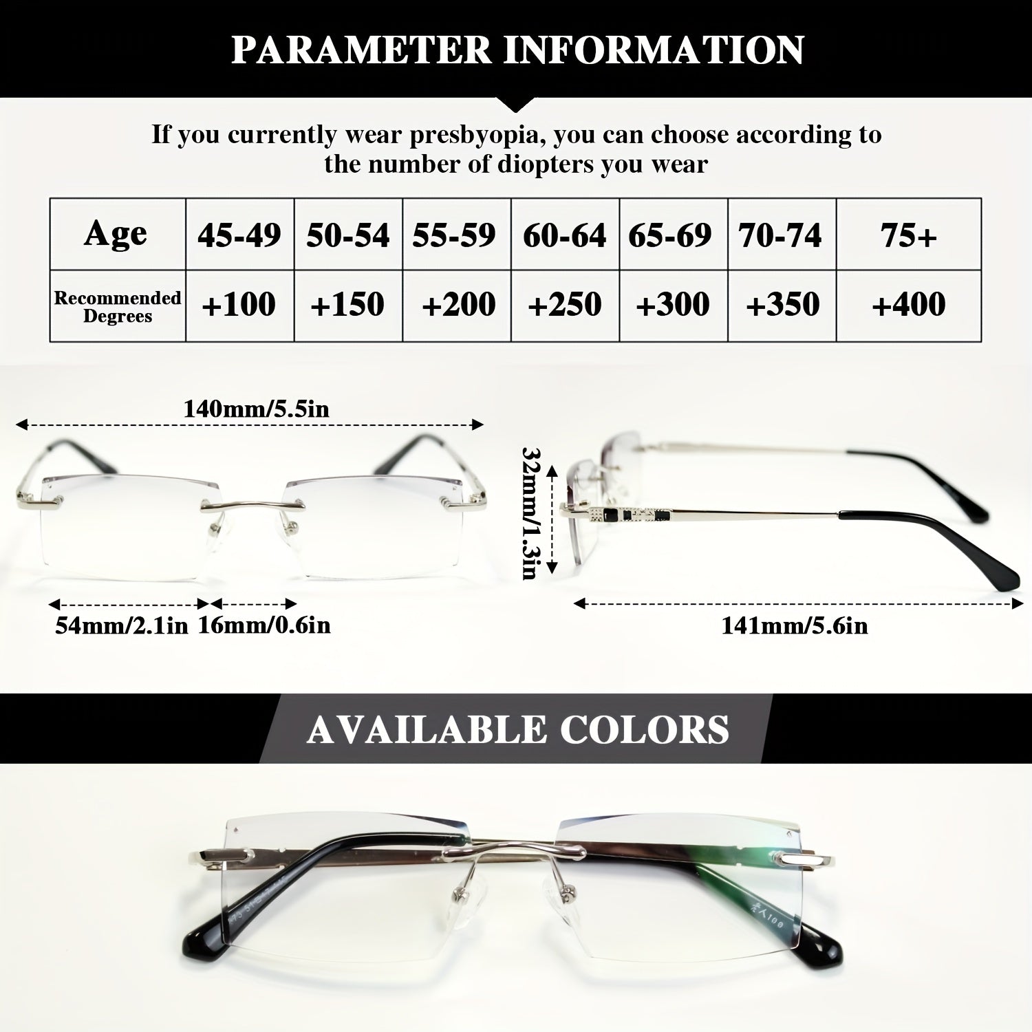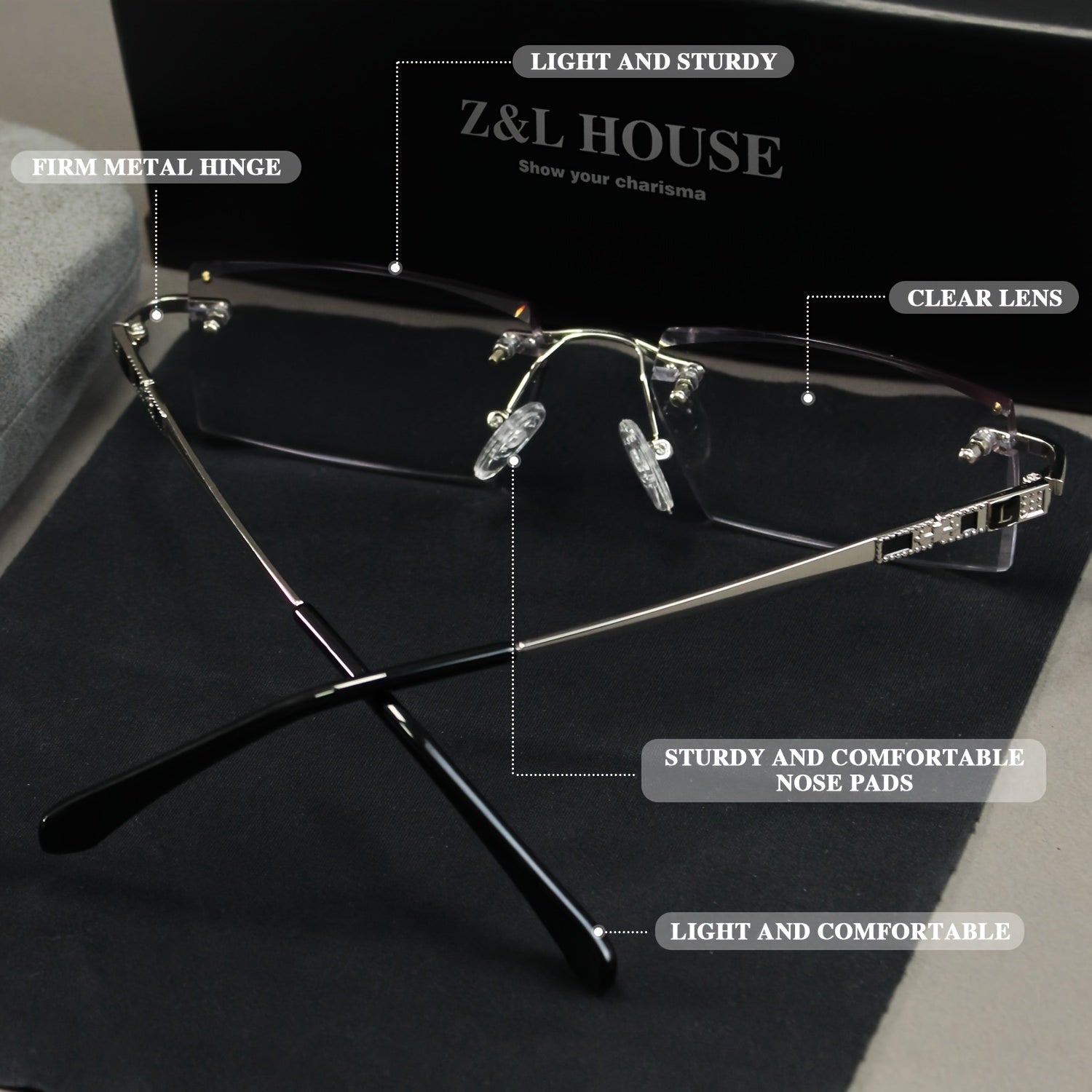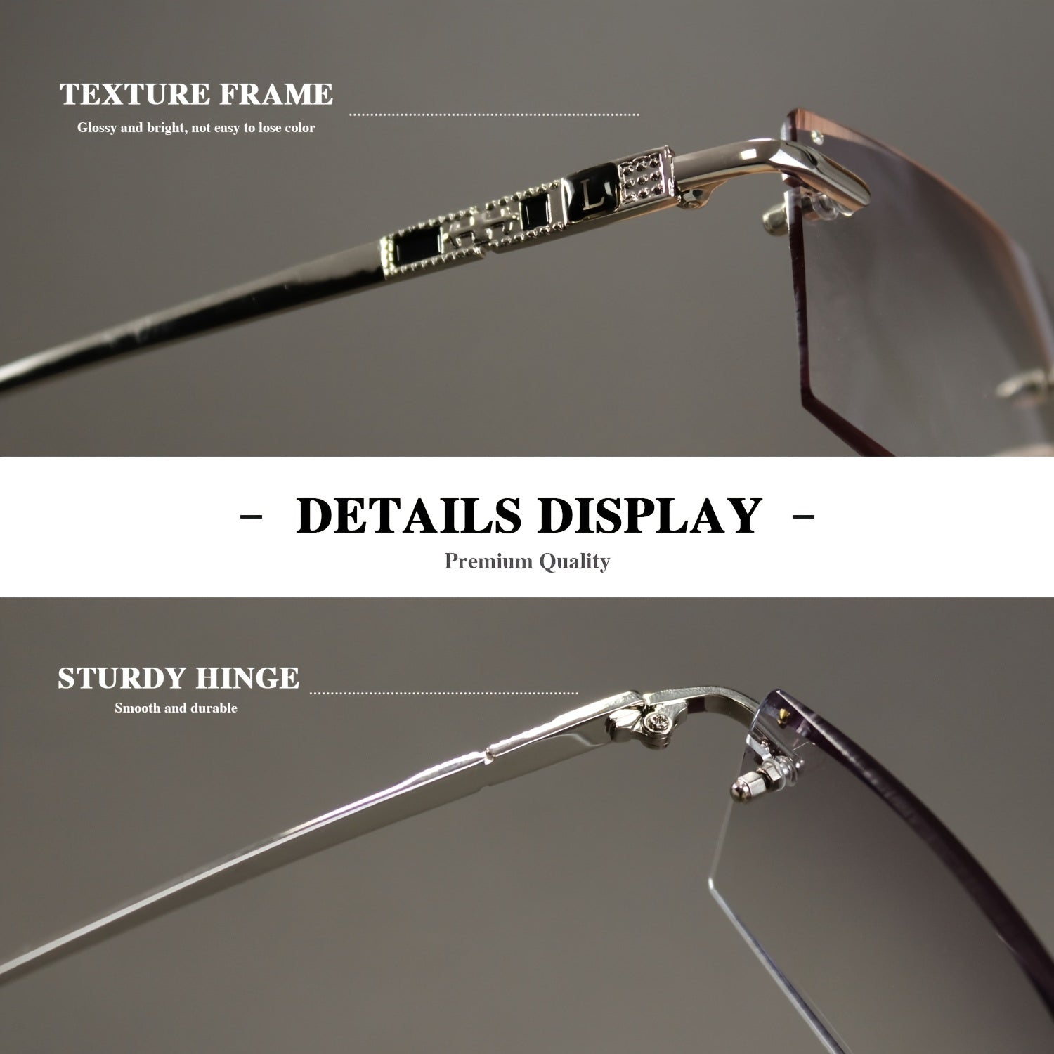Premium Rimless Reading Glasses, High Definition Lenses - Men's fashionable presbyopia glasses with unique decorative temples, including glasses case and lens cloth, comfortable to wear, gift choice, also suitable f