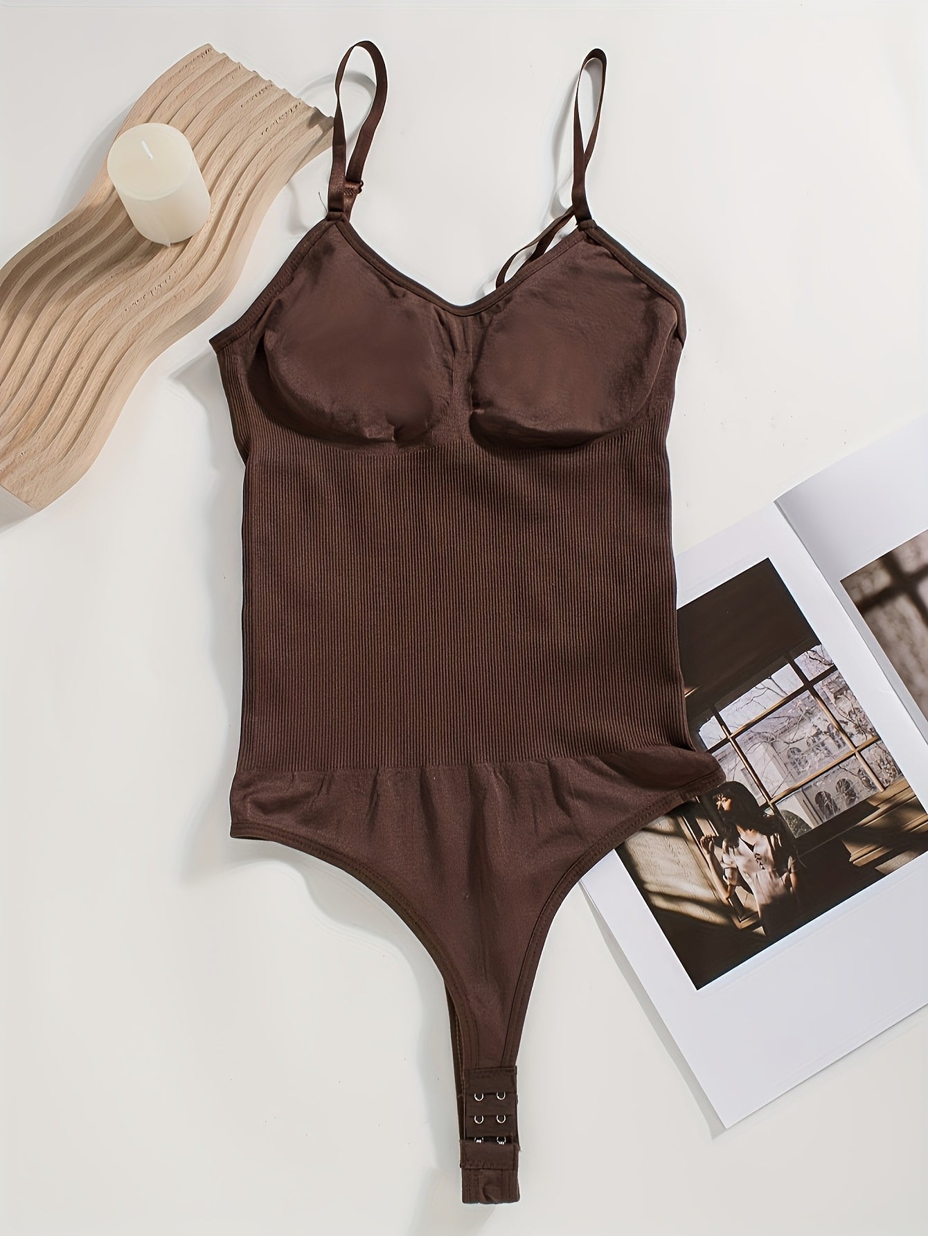 Body sculptant femme sans couture avec string intégré, ouverture à l’entrejambe et bretelles réglables, maintien moyen, sans coques poitrine