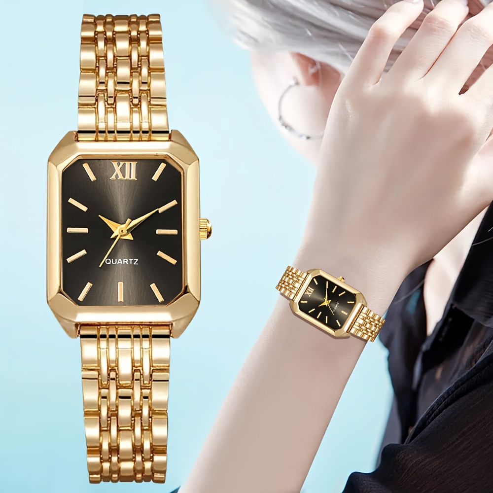 Coffret Cadeau Montre Femme – Lot de 2 Pièces Élégantes, Montre Style Classique avec Bracelet de Luxe, Cadran Rectangulaire Rétro, Bracelet Confortable en Alliage, Idéal Cadeau Famille et Amis, Parfait pour Pâques ou Tenues Décontractées