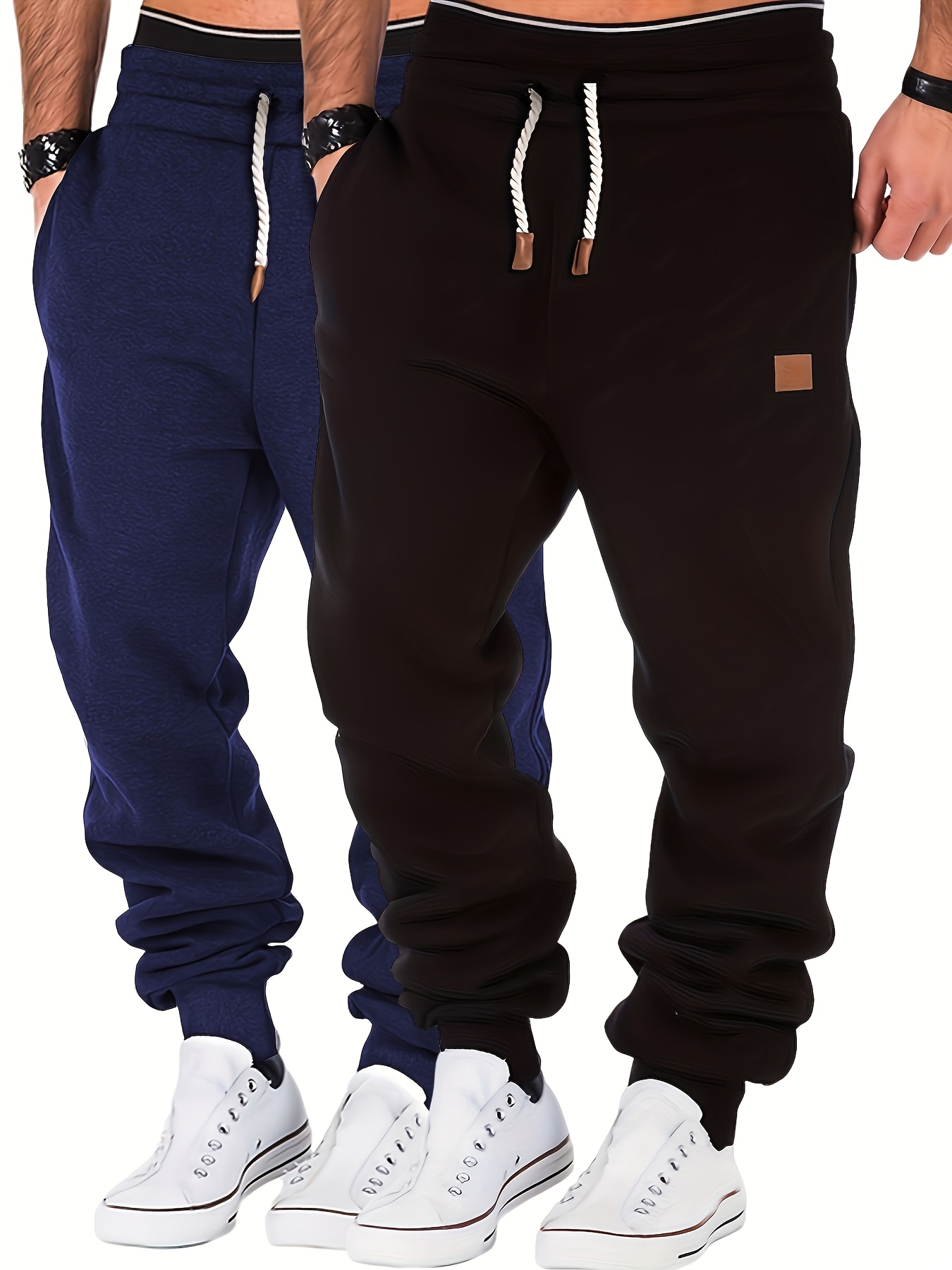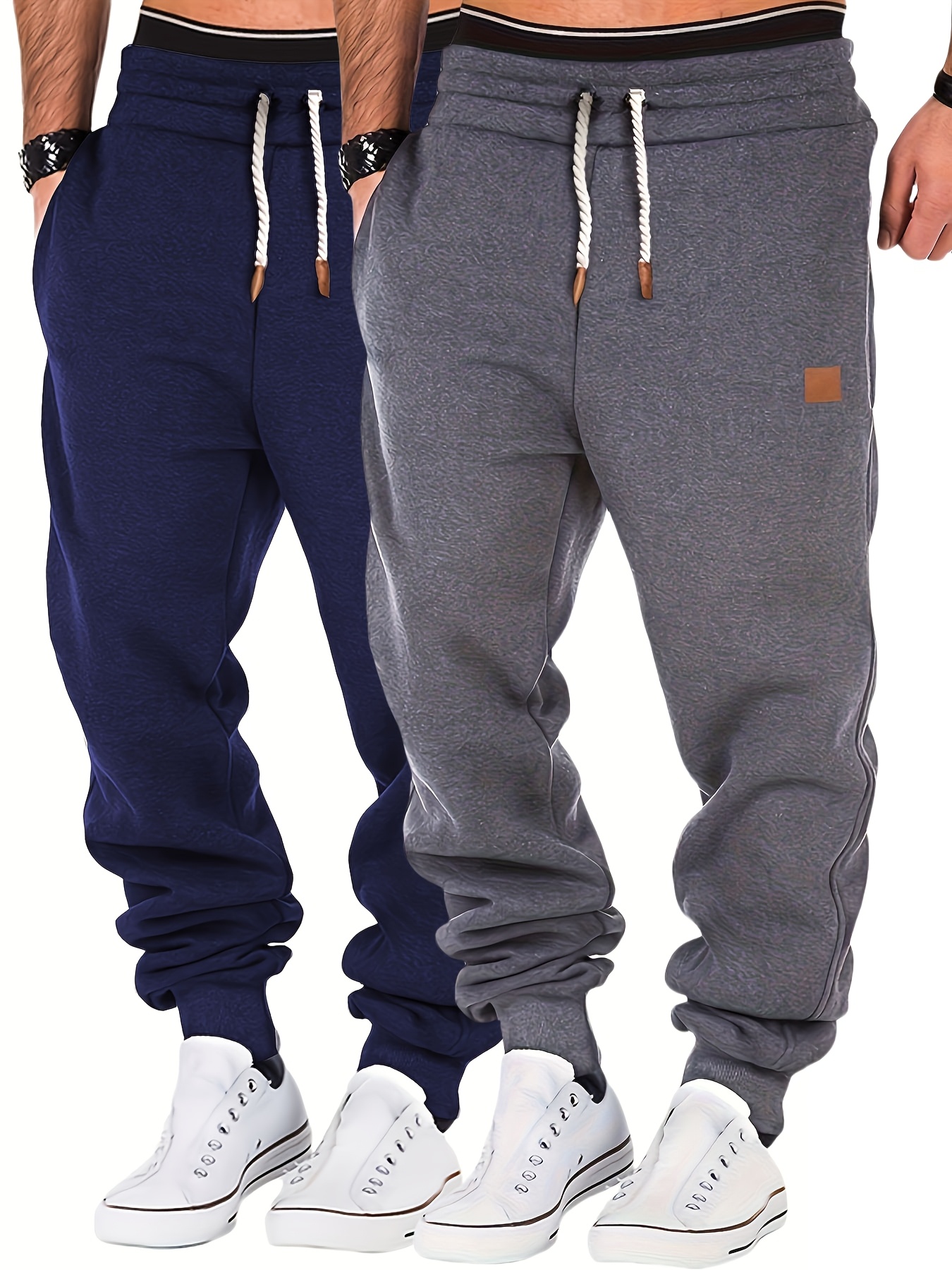 2pcs Joggers Homme – Polaire, Gris, Cordon, Sport & Casual, Hiver
