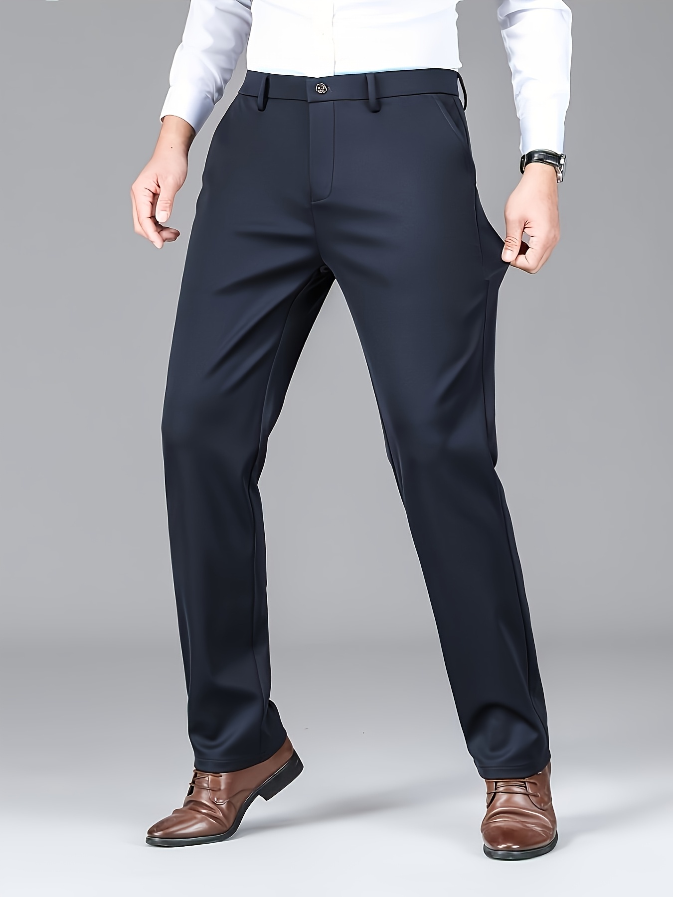 2pcs Pantalons Homme Business Casual – Stretch, Anti-Rides, Jambe Droite, Bureau & Loisir