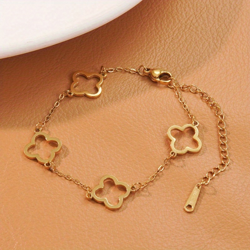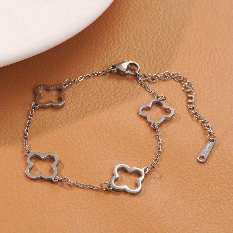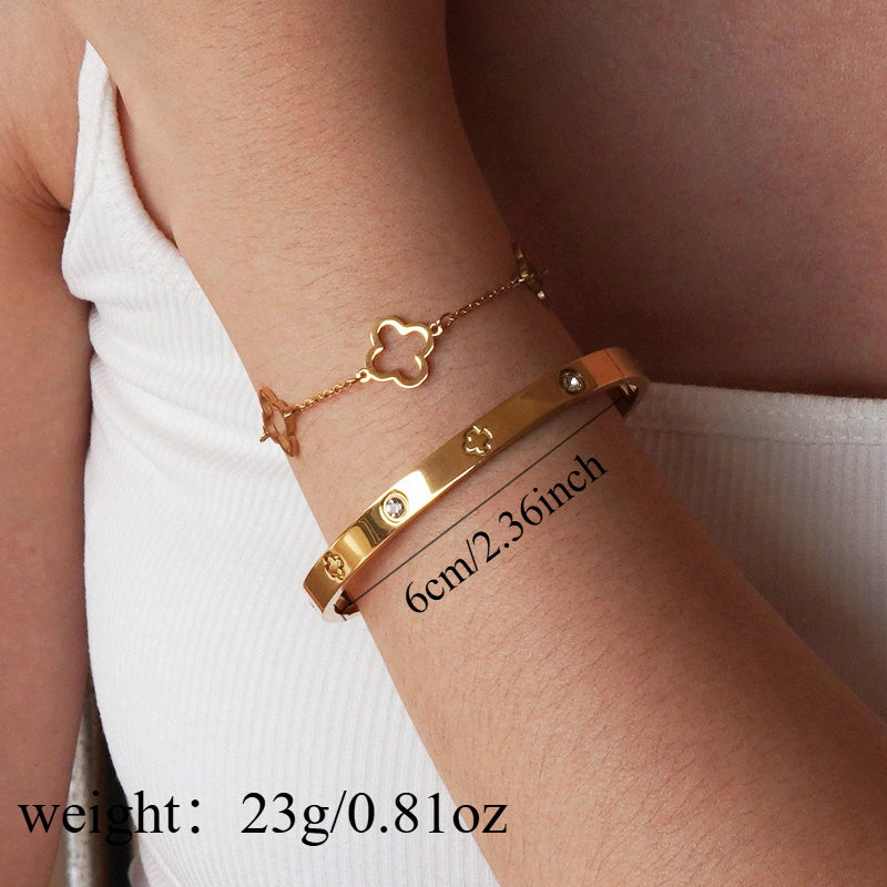 Lot de 2 Bracelets Femme Élégants – Acier Inoxydable, Design Créatif Trèfle, Simple et Chic, Parfait pour Banquets, Quotidien, Déplacements ou Cadeaux de Fêtes, Accessoire Mode Polyvalent