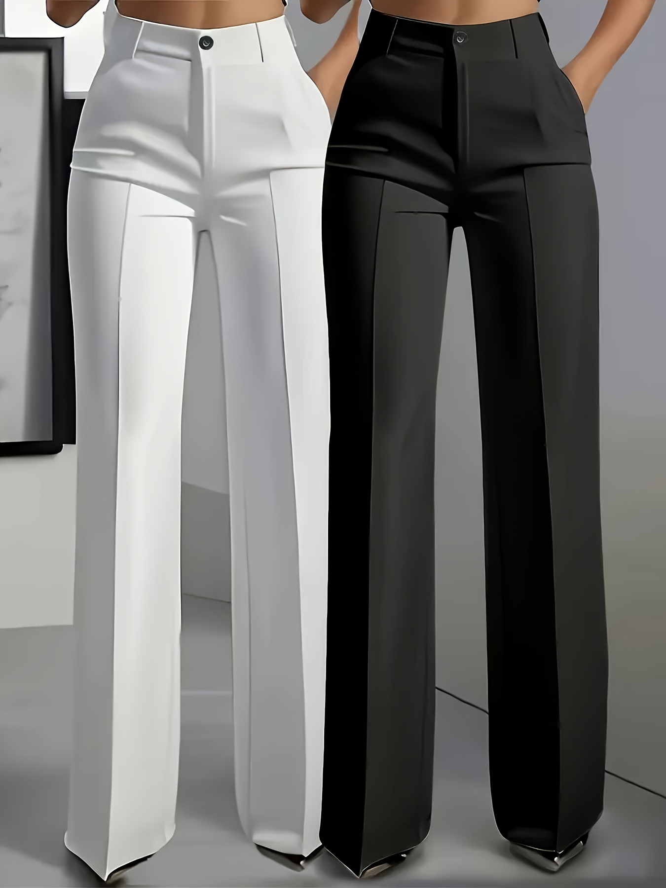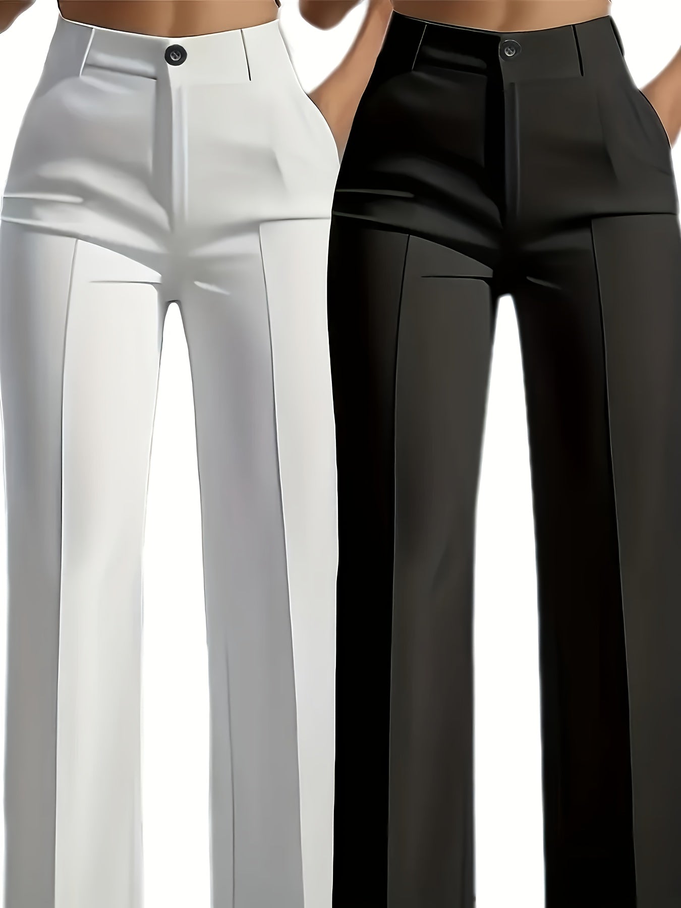 Lot de 2 Pantalons Femme Élégants Droits – Taille Élastique avec Poches Obliques