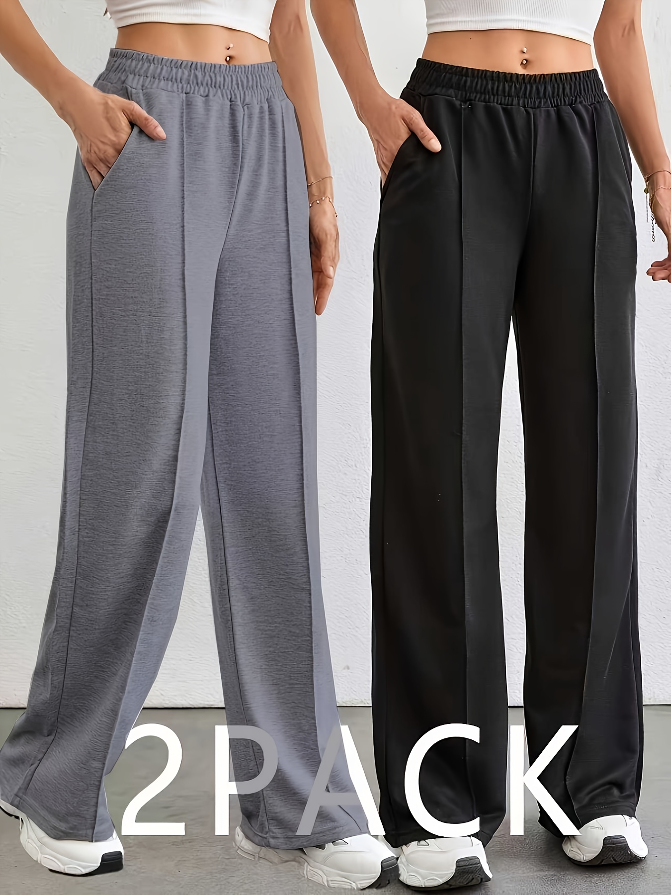 Lot de 2 Joggers Femme – Gris et Noir, Confortables et Polyvalents