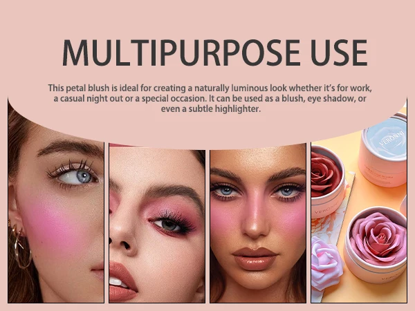 1. Petal design: Presents a three-dimensional rose-shaped blush that doubles as an eyeshadow. The delicate petals add depth and dimension to any makeup style, leaving you with a youthful glow and subtle radiance.