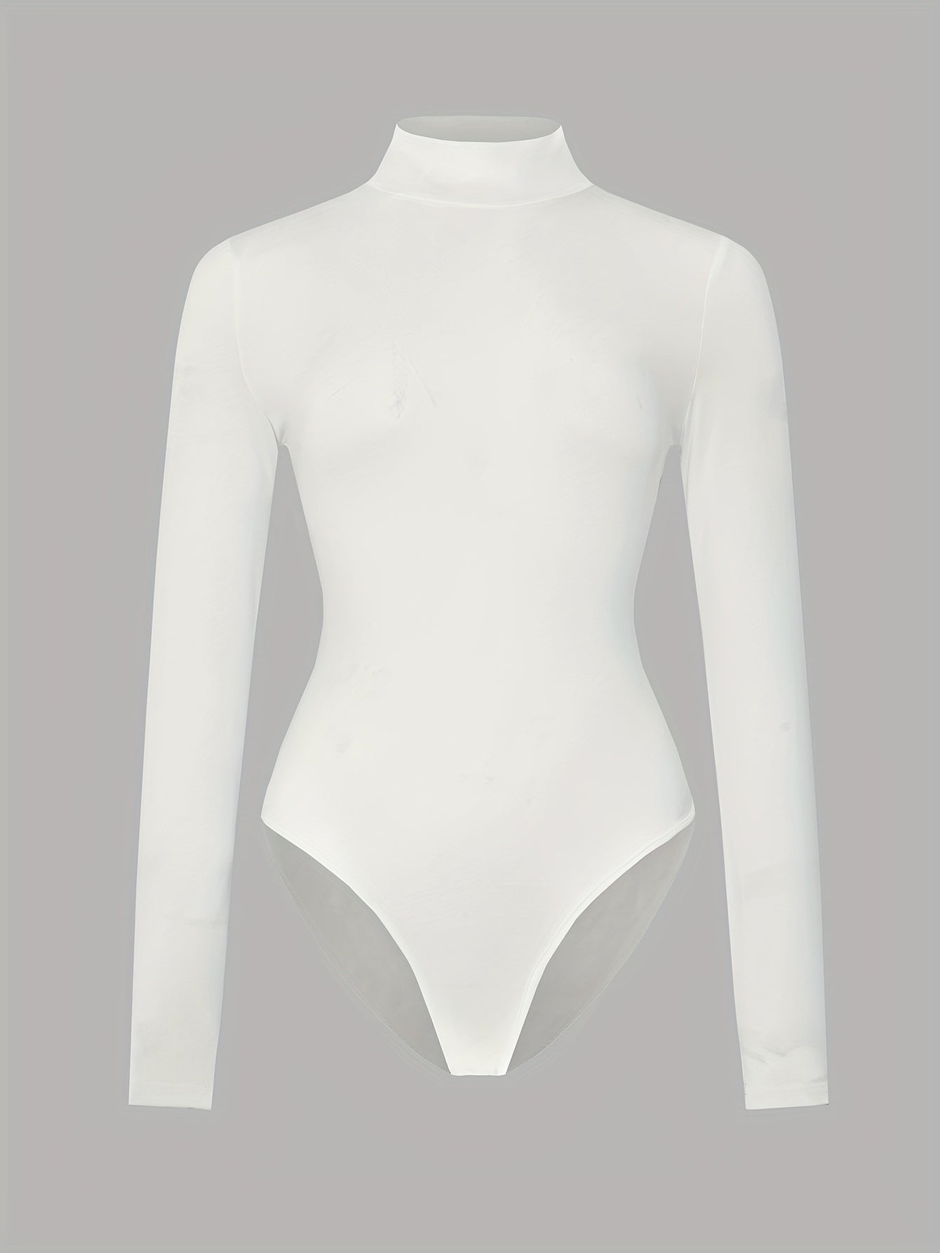 Lot de 3 hauts femme – col montant, manches longues, coupe slim, t-shirts extensibles semi-transparents, noir, marron et blanc, essentiels pour superposition casual, design minimaliste, confortables et polyvalents