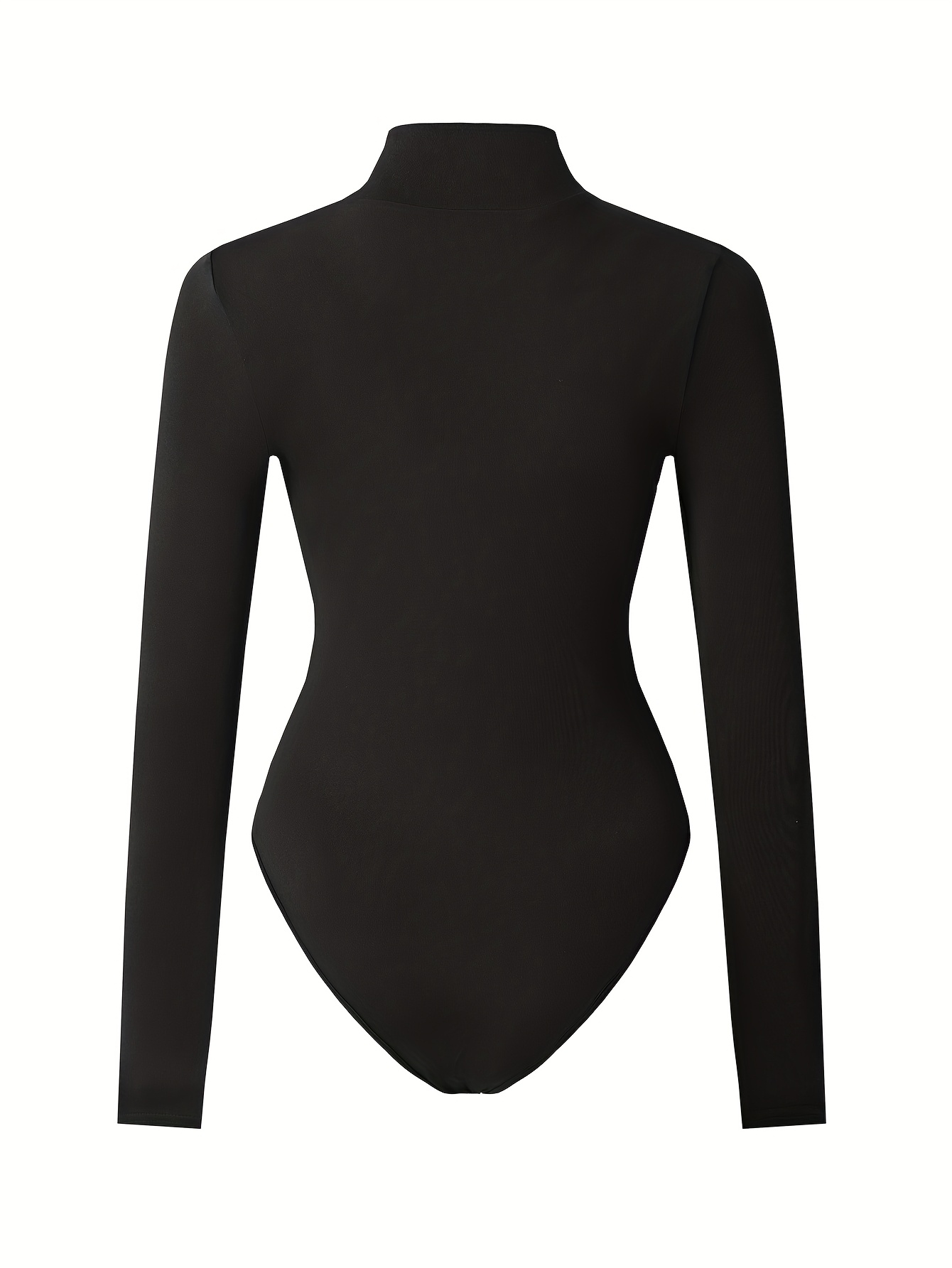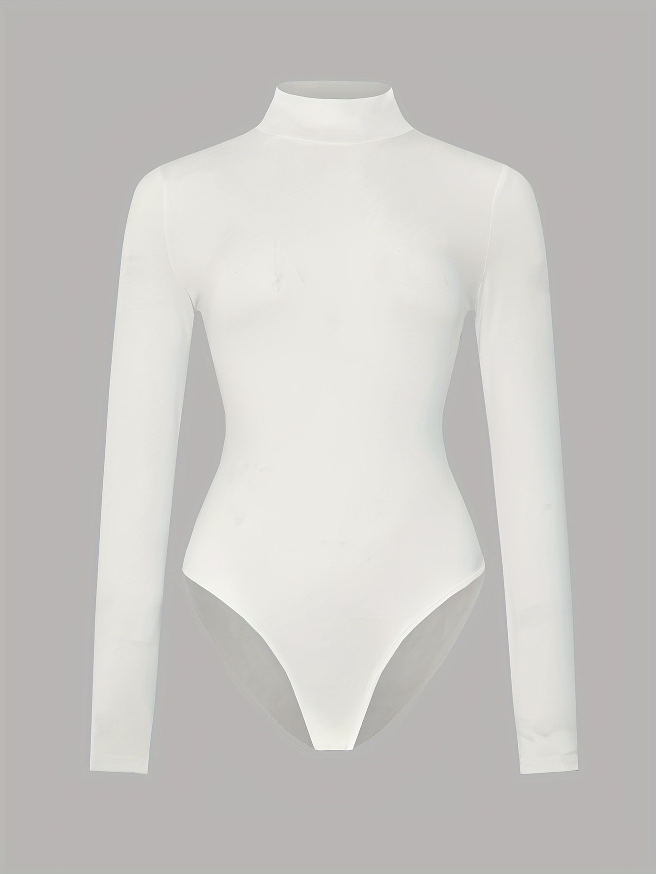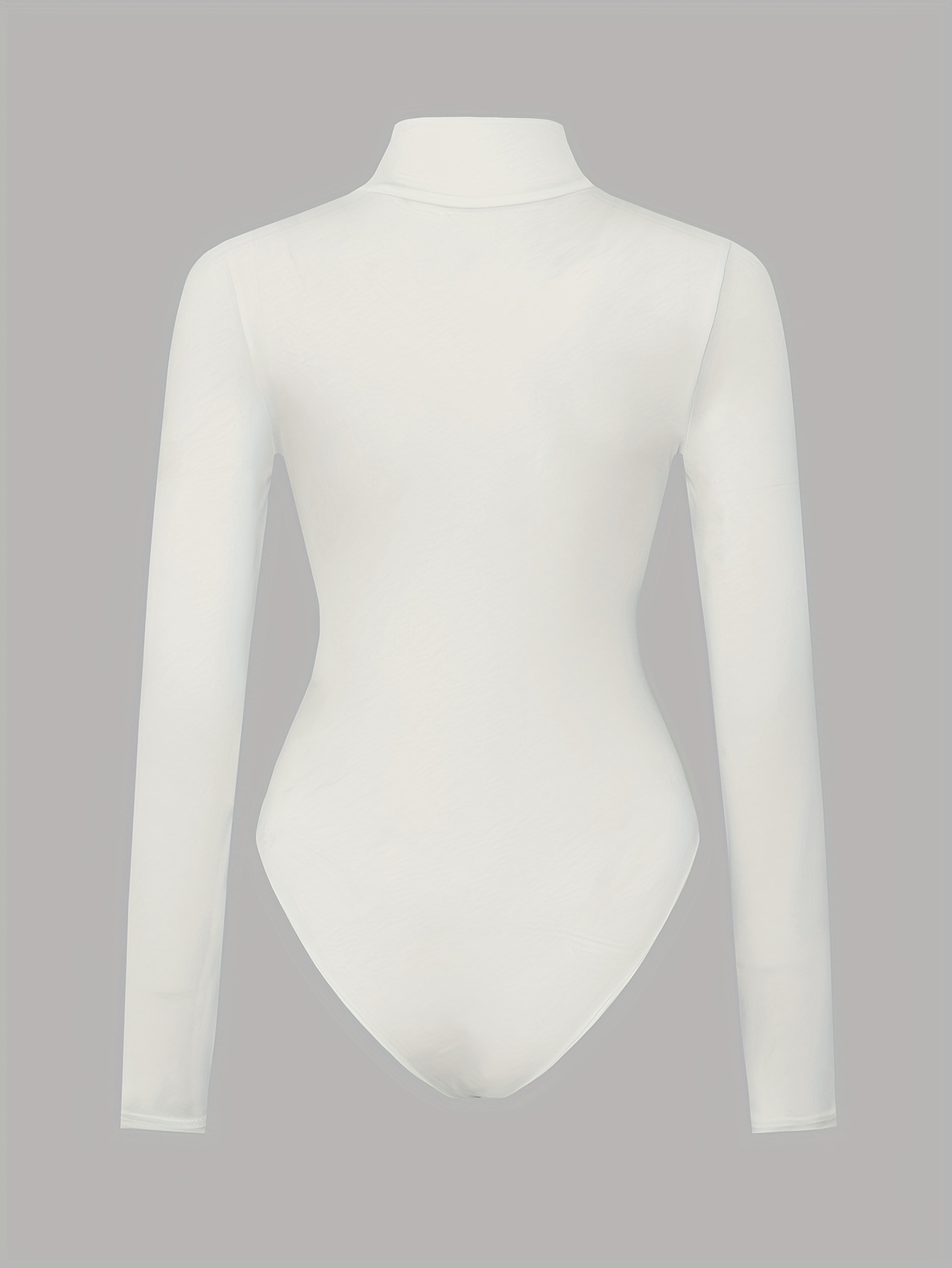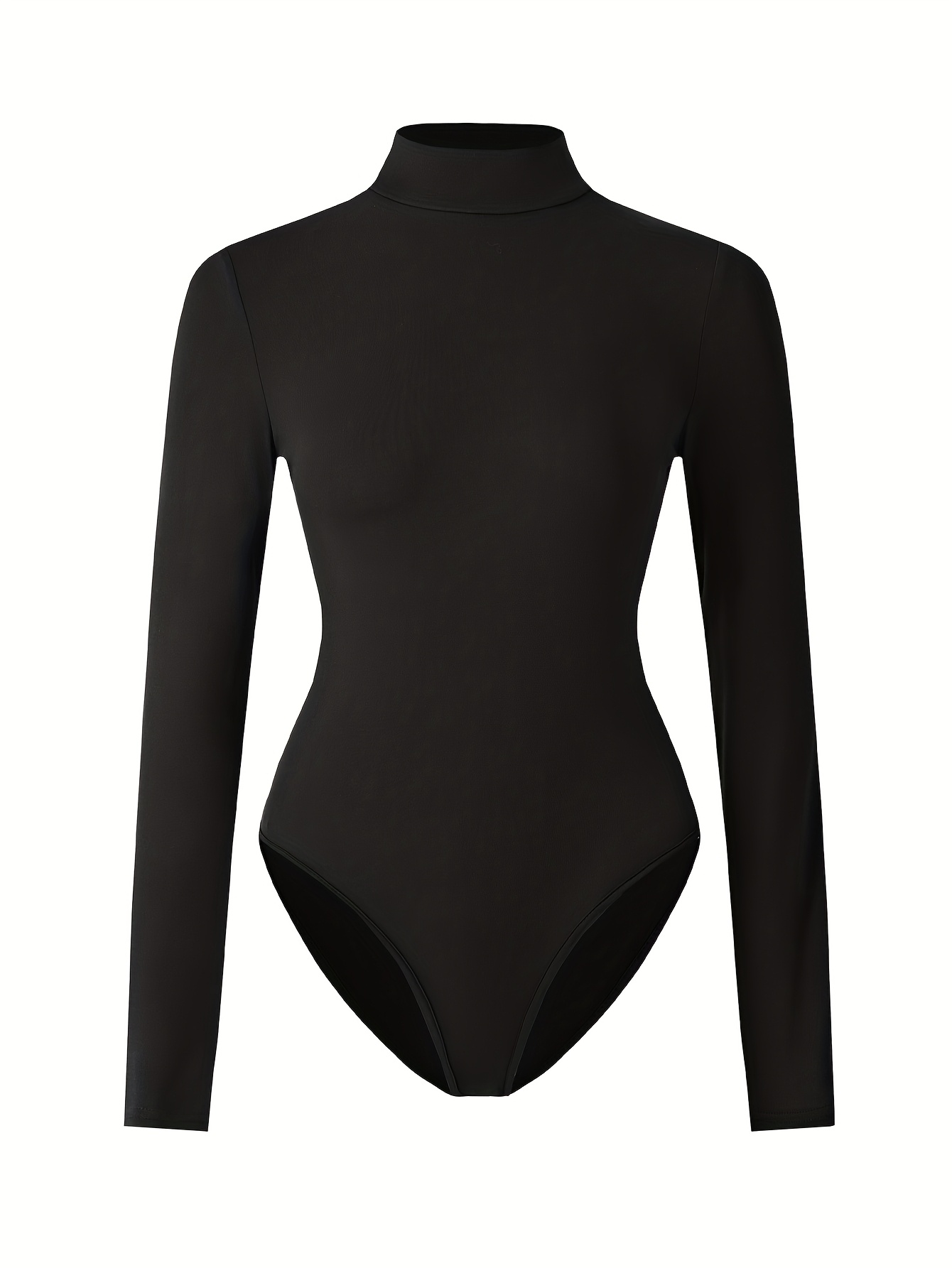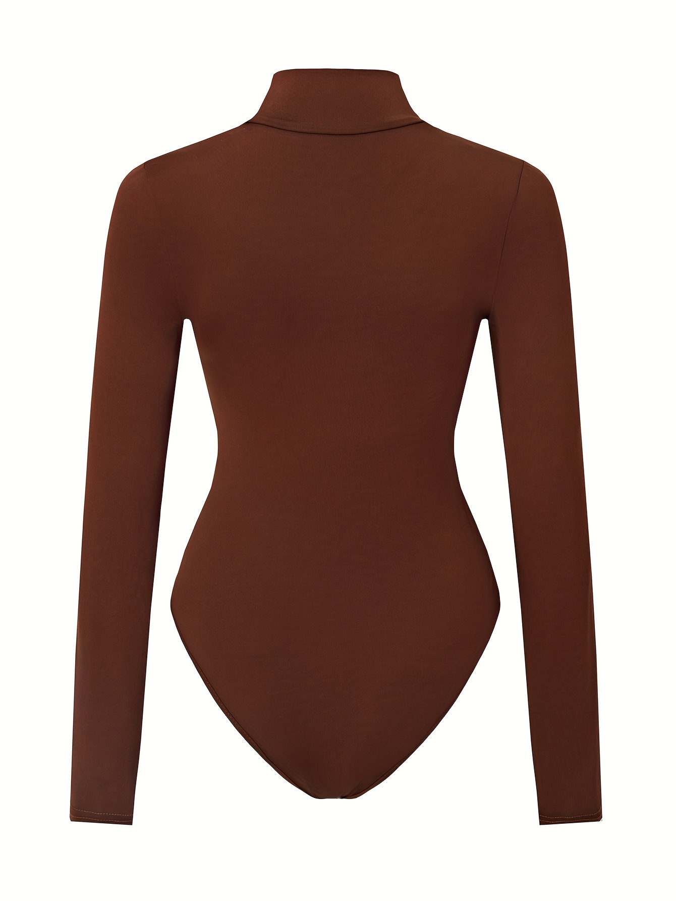 Lot de 3 hauts femme à col montant, manches longues, coupe slim, tissu extensible, semi-transparent, essentiels pour superposition, coloris noir, marron et blanc, style polyvalent et minimaliste, confortable à porter