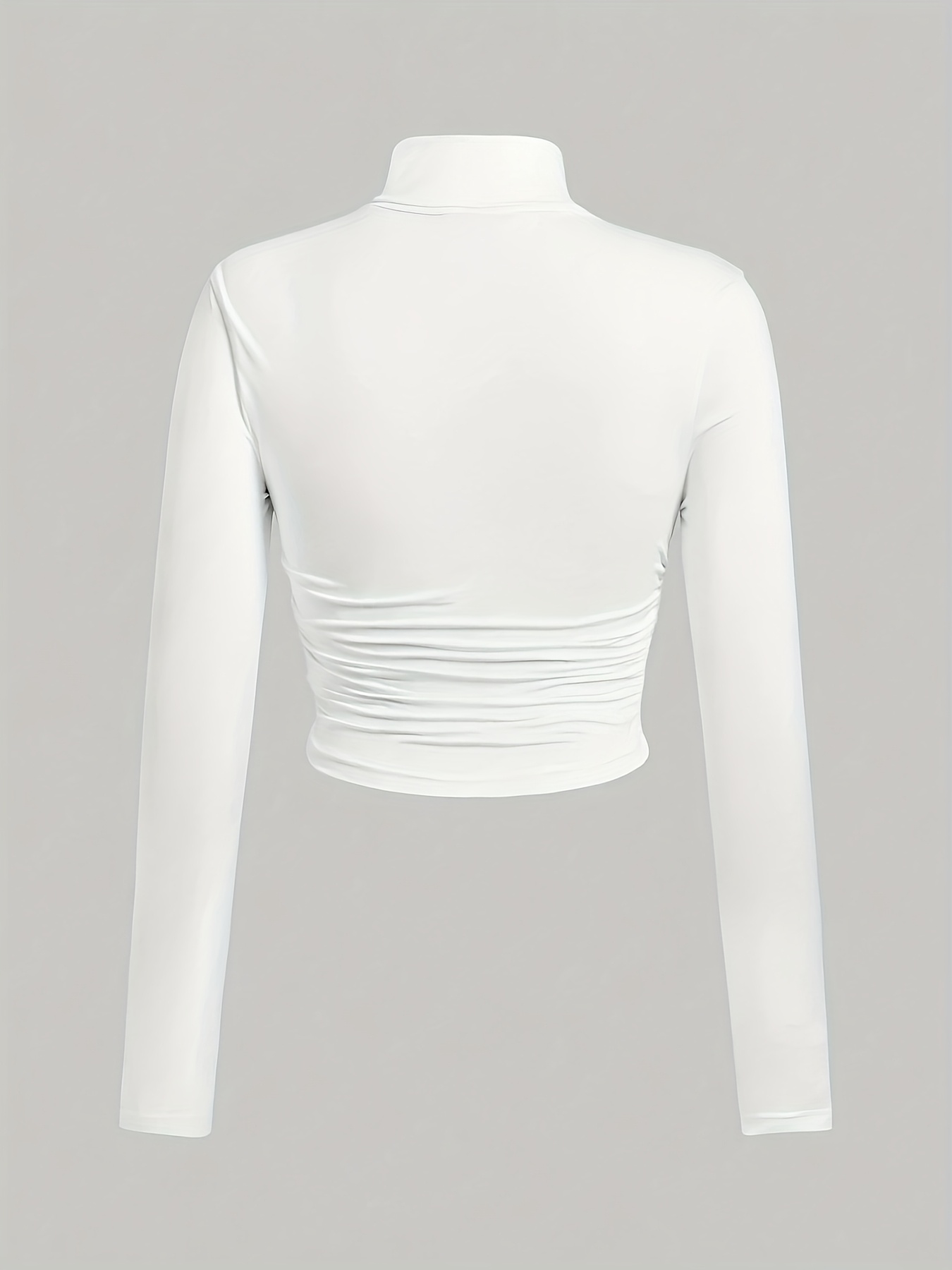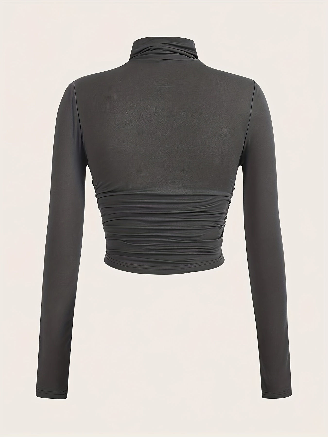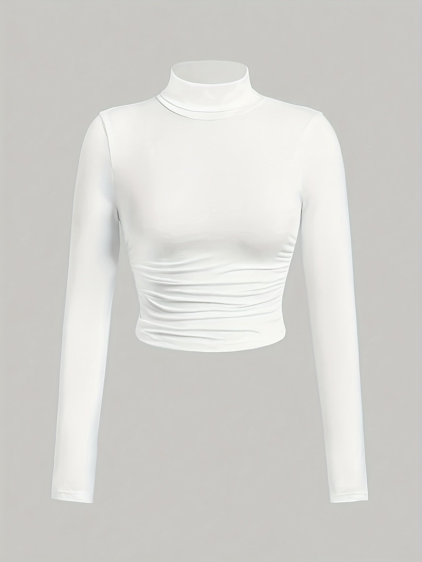 Lot de 3 Tops Femme Col Montant Manches Longues – Couleurs Unie Noir, Blanc et Gris