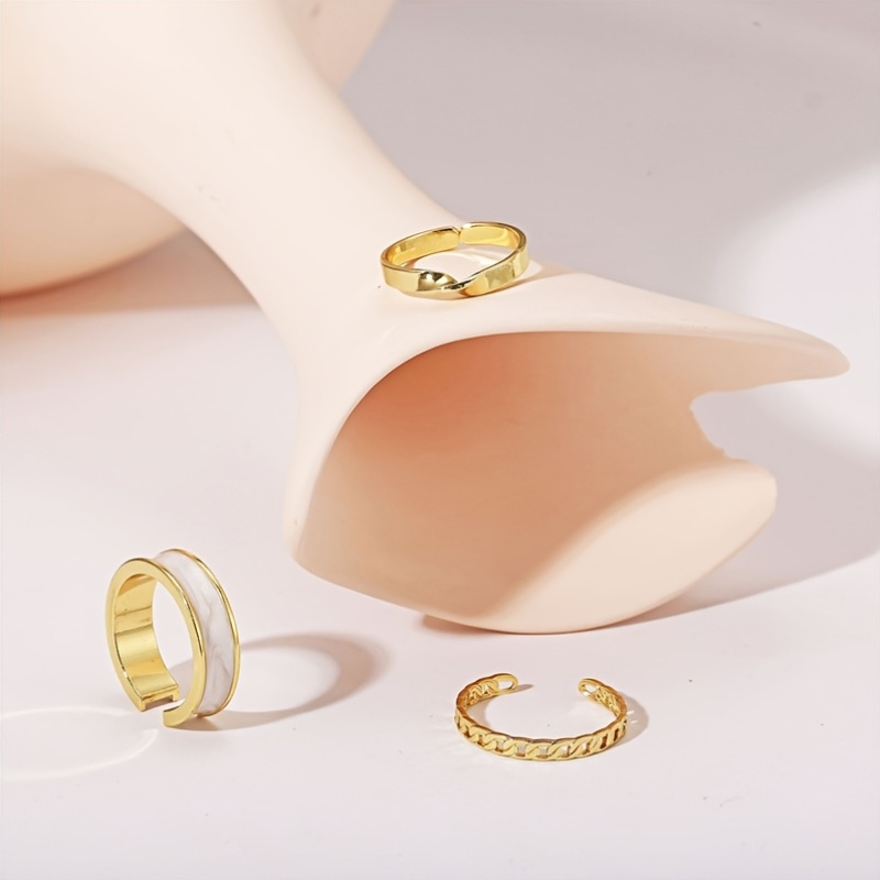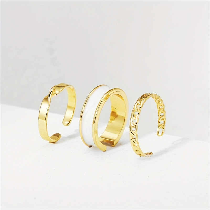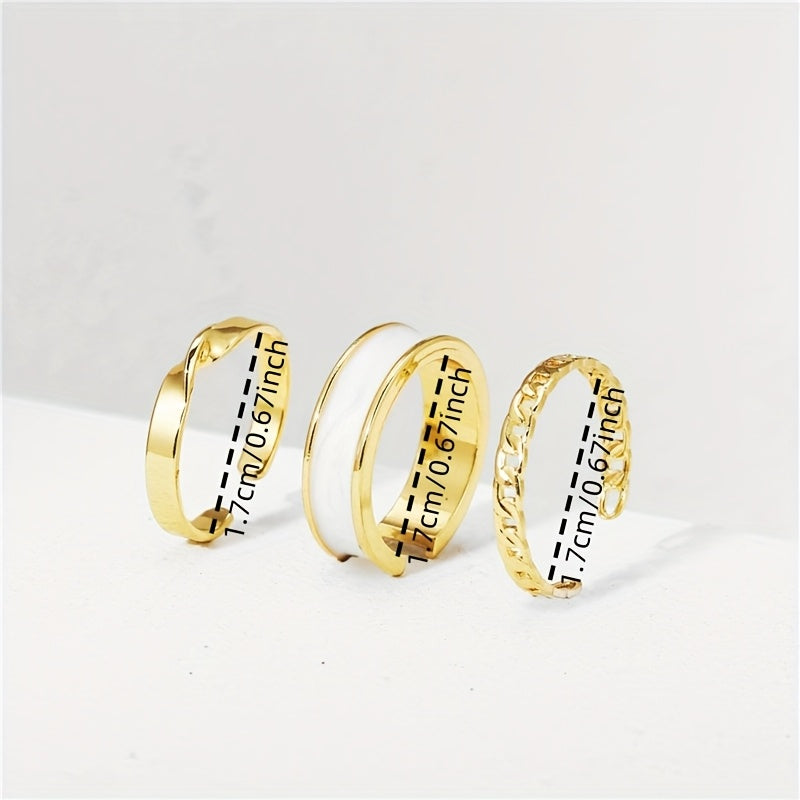 Lot de 3 Bagues Femme – Design Mode et Luxe Léger, Ouverture Ajustable, Style Bohème, Bagues Rondes Émaillées, Alliage de Zinc, Parfait pour Toutes Occasions, Quotidien, Vacances et Tenues Élégantes