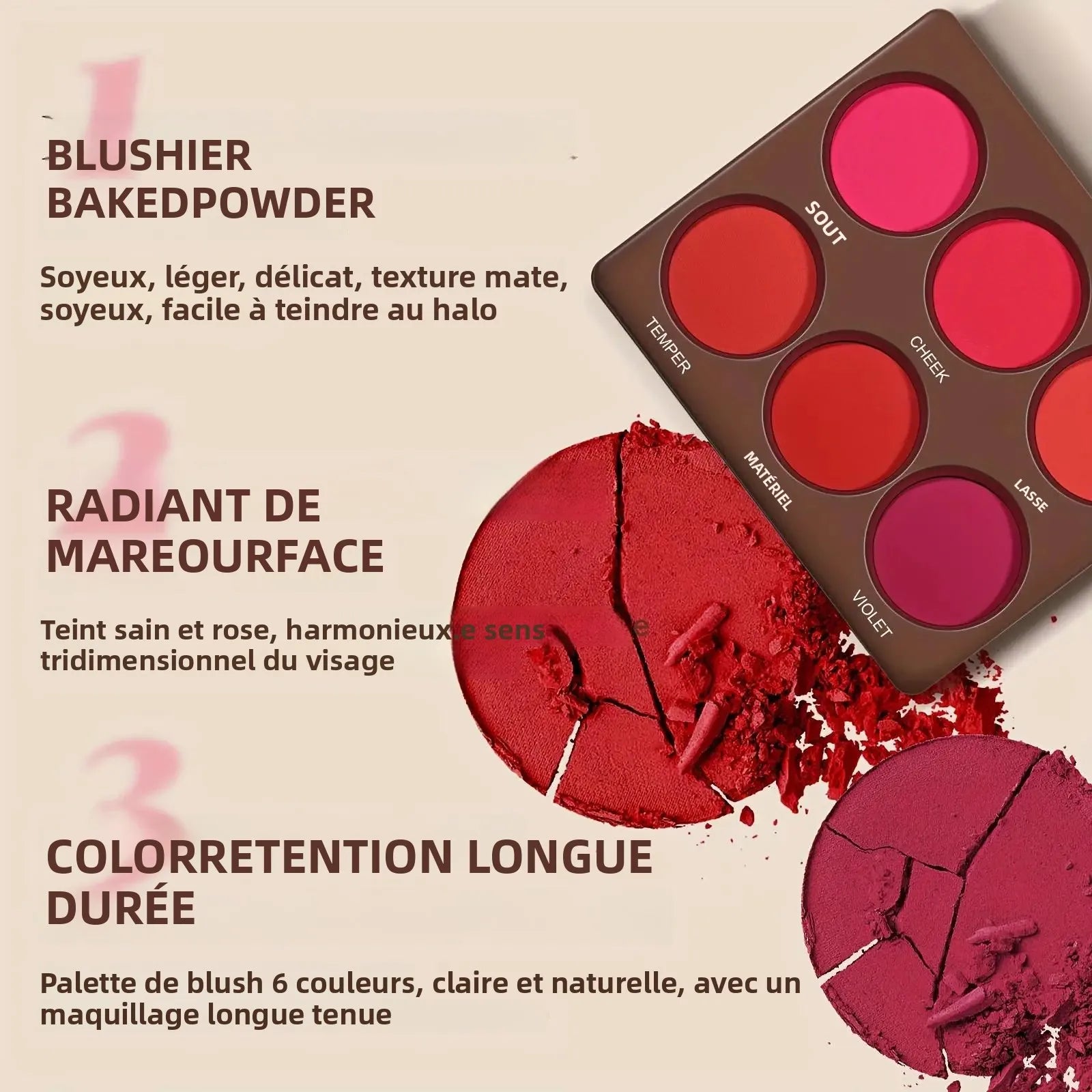 This 6-color blush palette offers a variety of natural tones, perfect for achieving a healthy glow on your cheeks and eyes.
