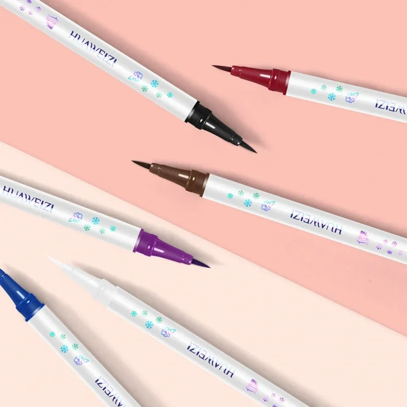 Crayon Eyeliner Liquide 6 Couleurs — waterproof, longue tenue, facile à appliquer, fini mat, couleurs noir, rouge, blanc, bleu, violet et brun