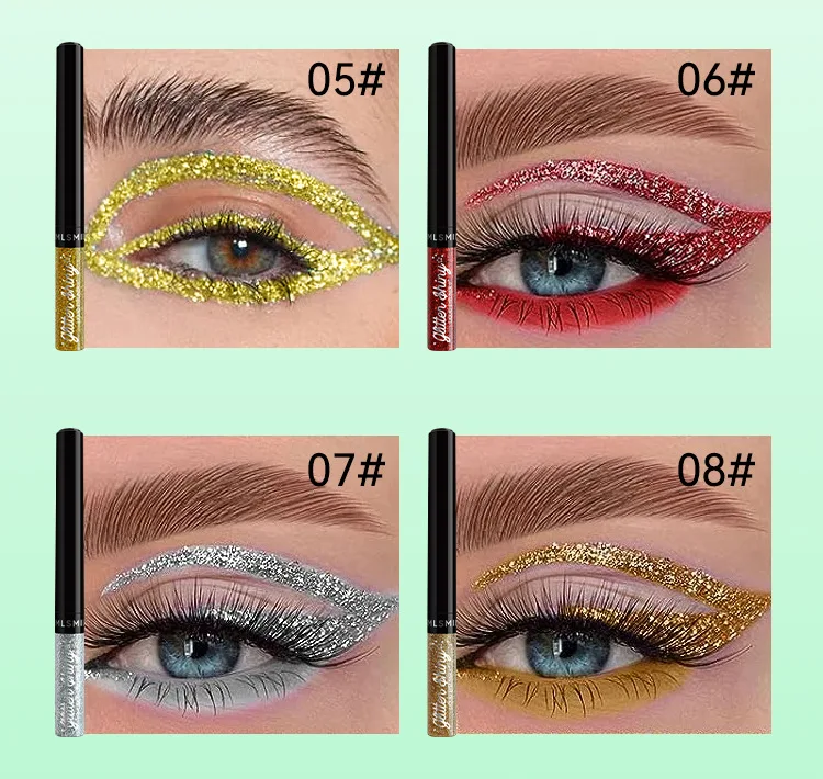 Set 8 Crayons Eyeliner Liquide Pailleté – Séchage Rapide, Longue Tenue, Ombre à Paupières, Anti-Bavure, Maquillage des Yeux