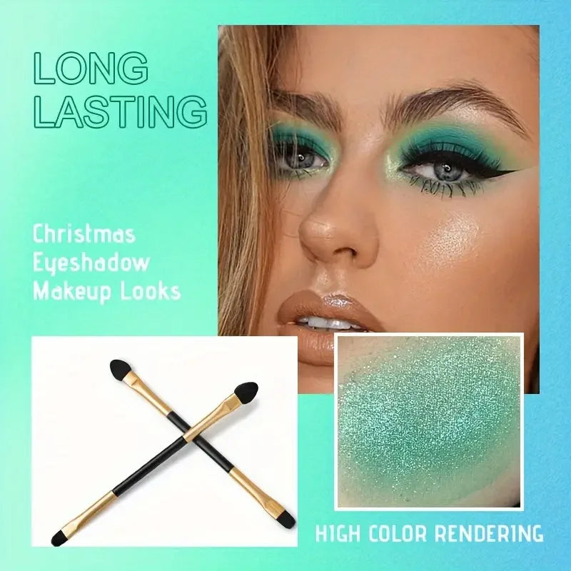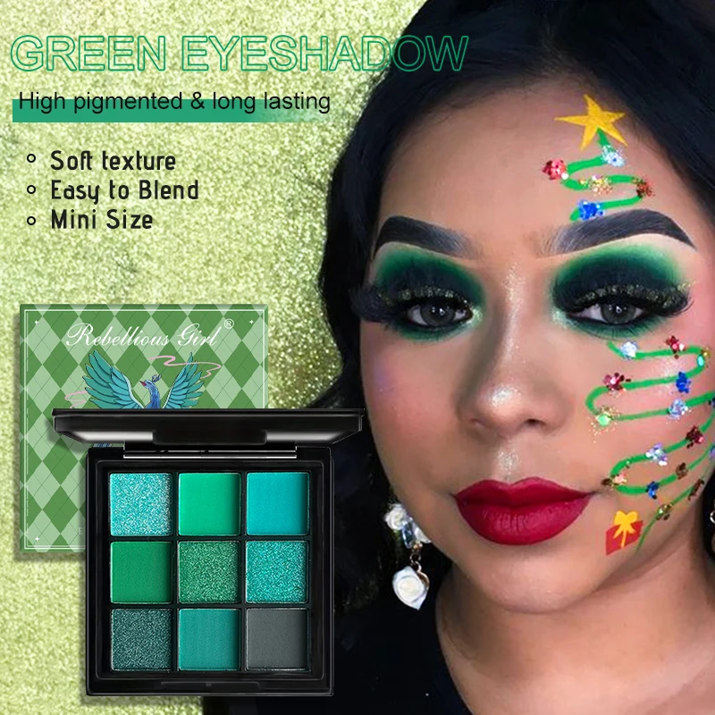 Palette fards à paupières 9 couleurs vertes, pinceau double embout, effets scintillants et naturels, mini palette maquillage yeux