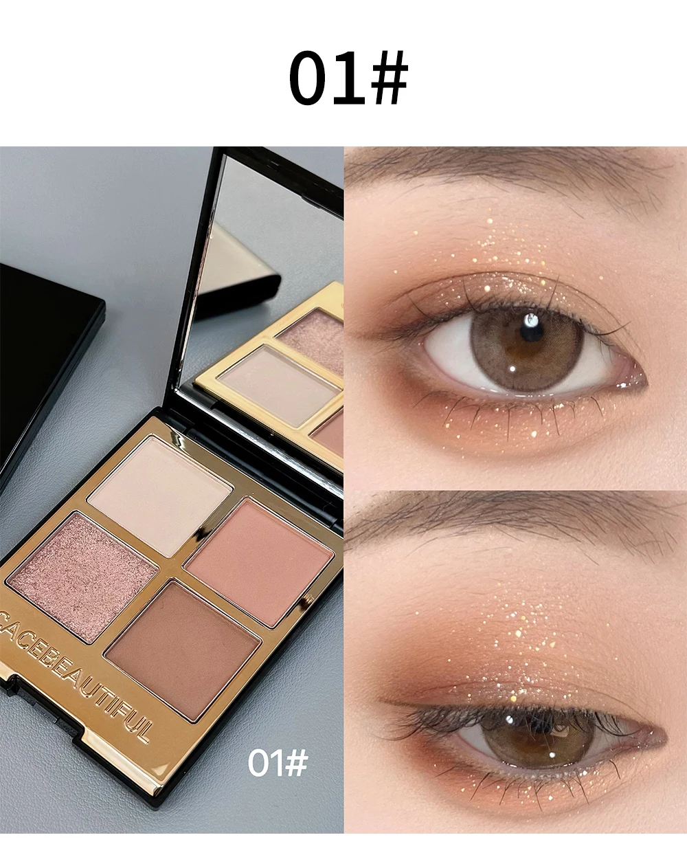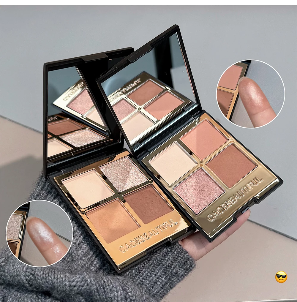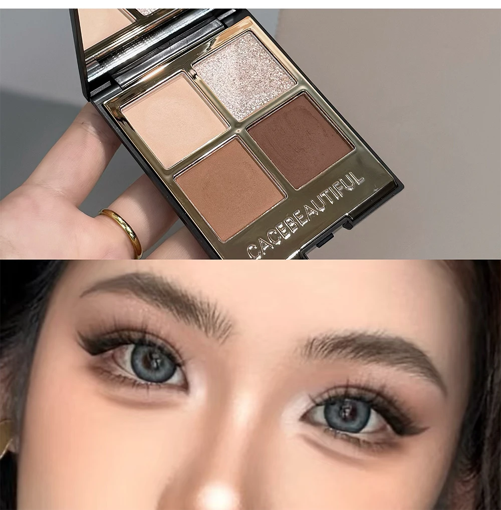 Palette fards à paupières 4 couleurs, gris fumé et noir, mats et nacrés pailletés, pigments lumineux, longue tenue