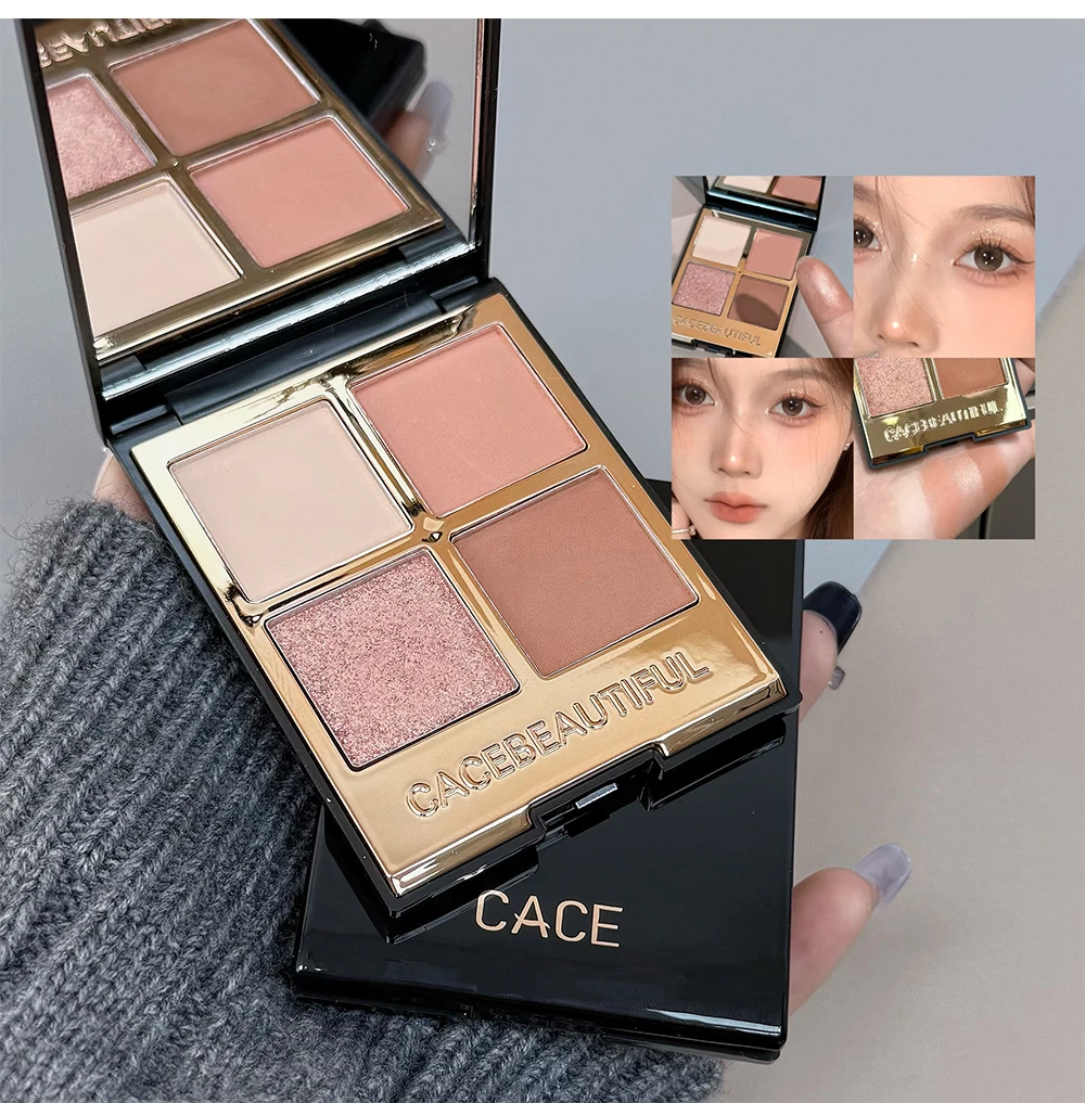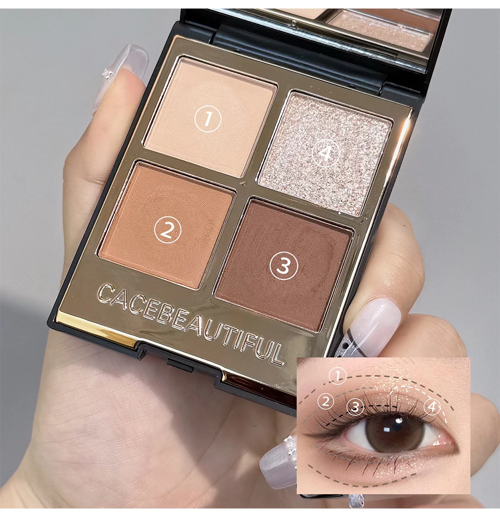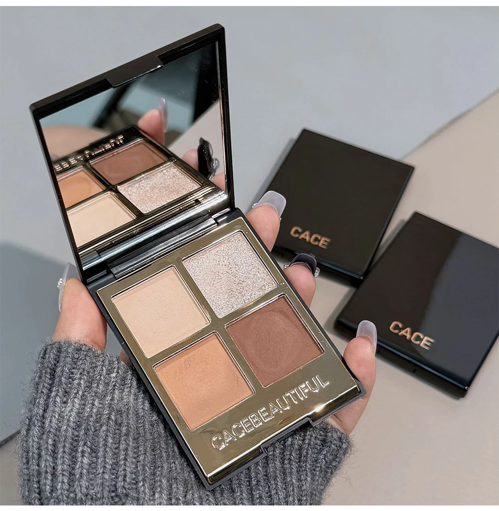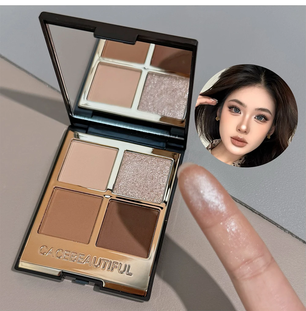 Palette fards à paupières 4 couleurs, gris fumé et noir, mats et nacrés pailletés, pigments lumineux, longue tenue