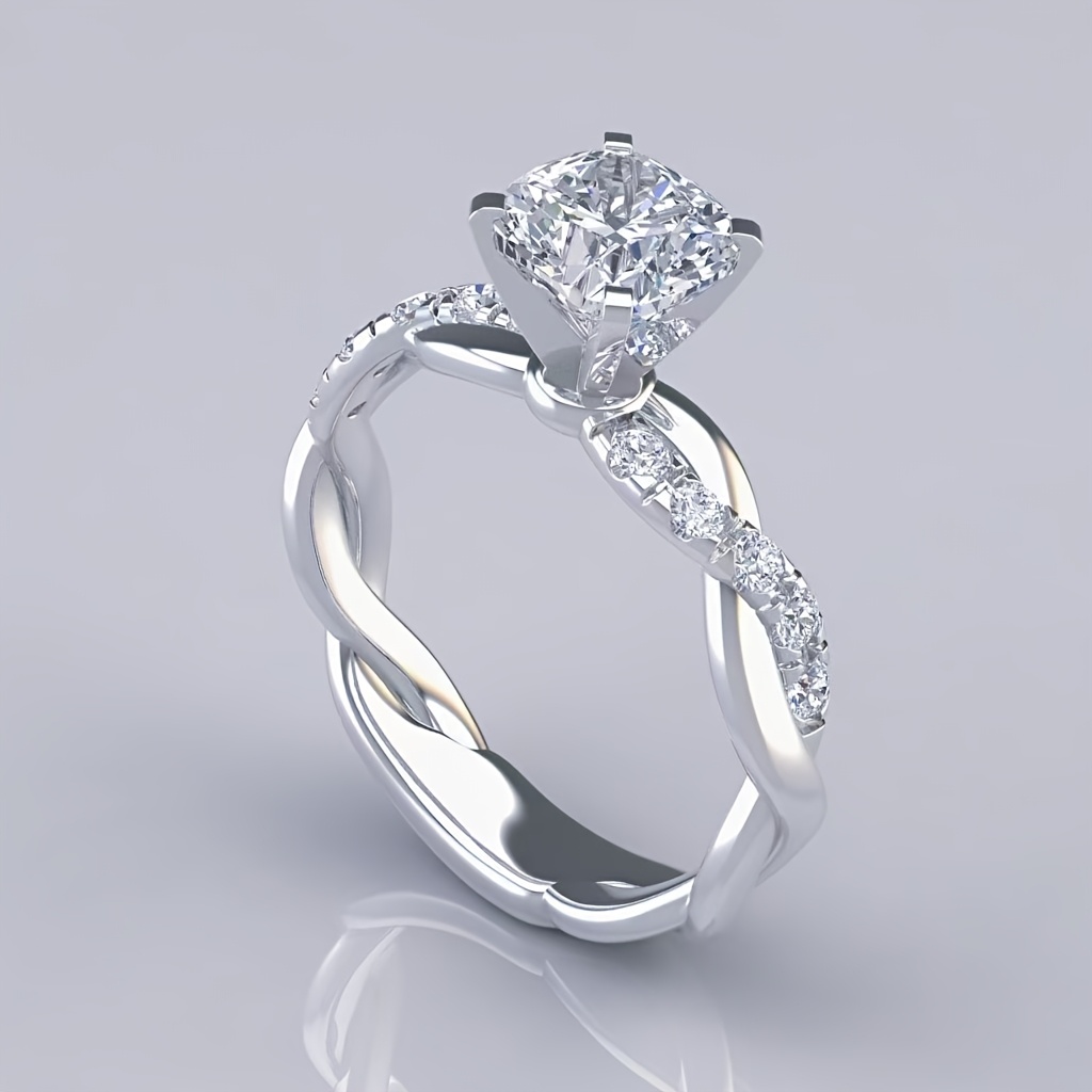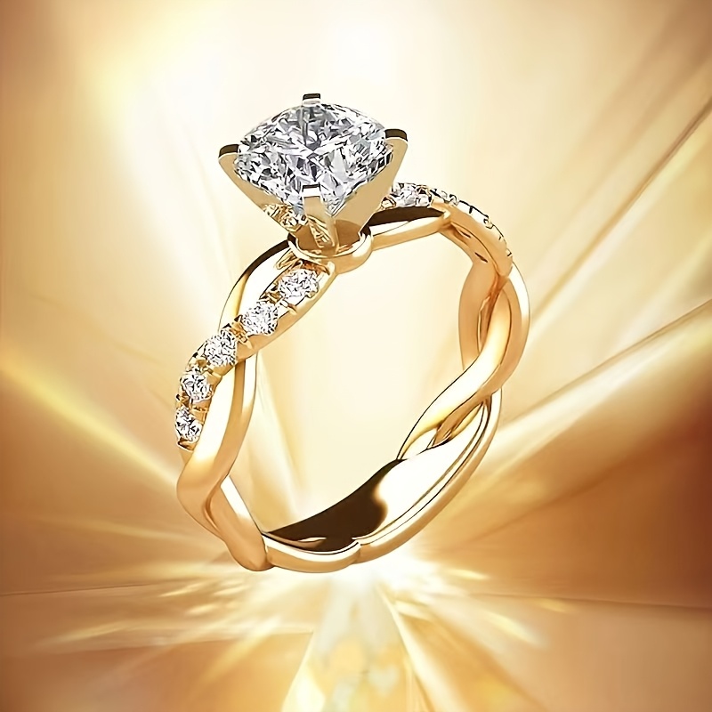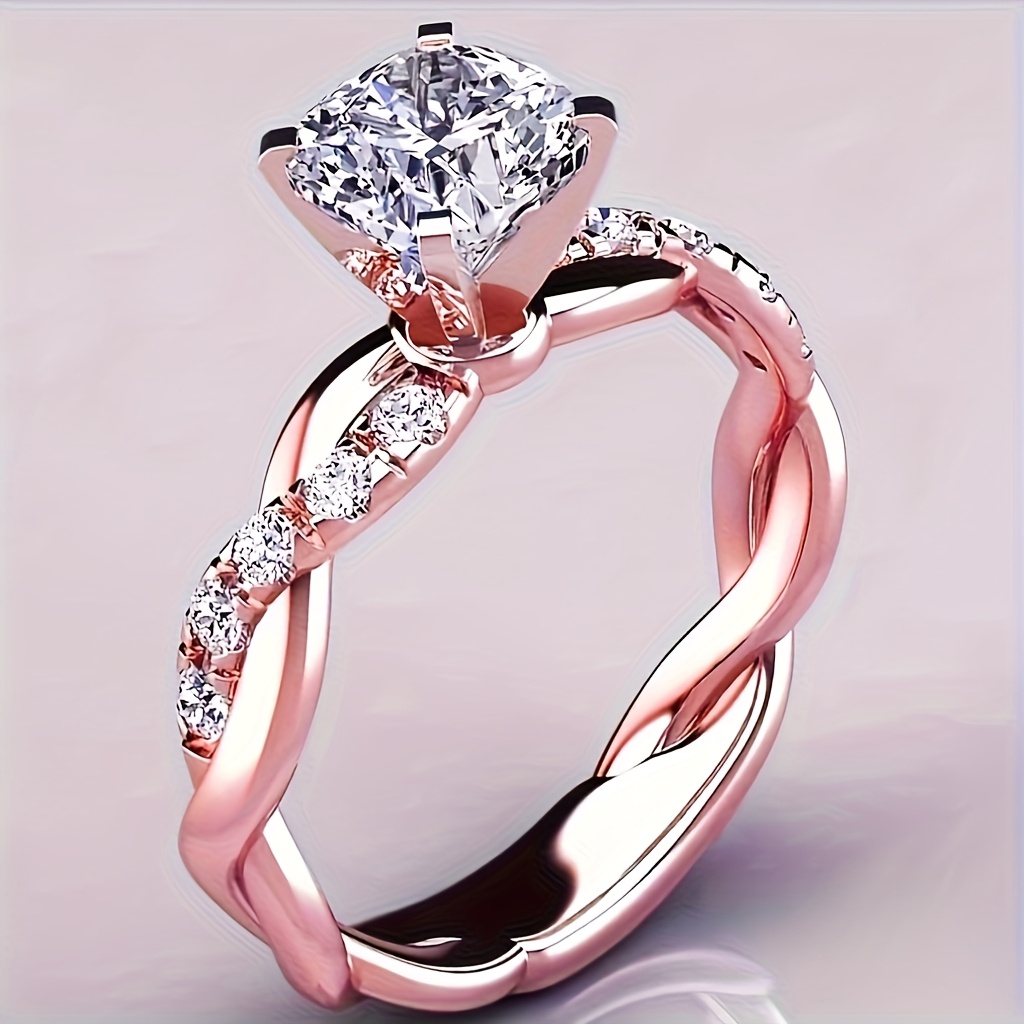 Classic 4-Prong Cubic Synthetic Zirconia Engagement Ring, Twisted Wedding Band with Multiple Synthetic Sparkling Synthetic Zirconia Stones, Women's Marriage and Engagement Jewelry, Suitable for Ladies, Party Gift