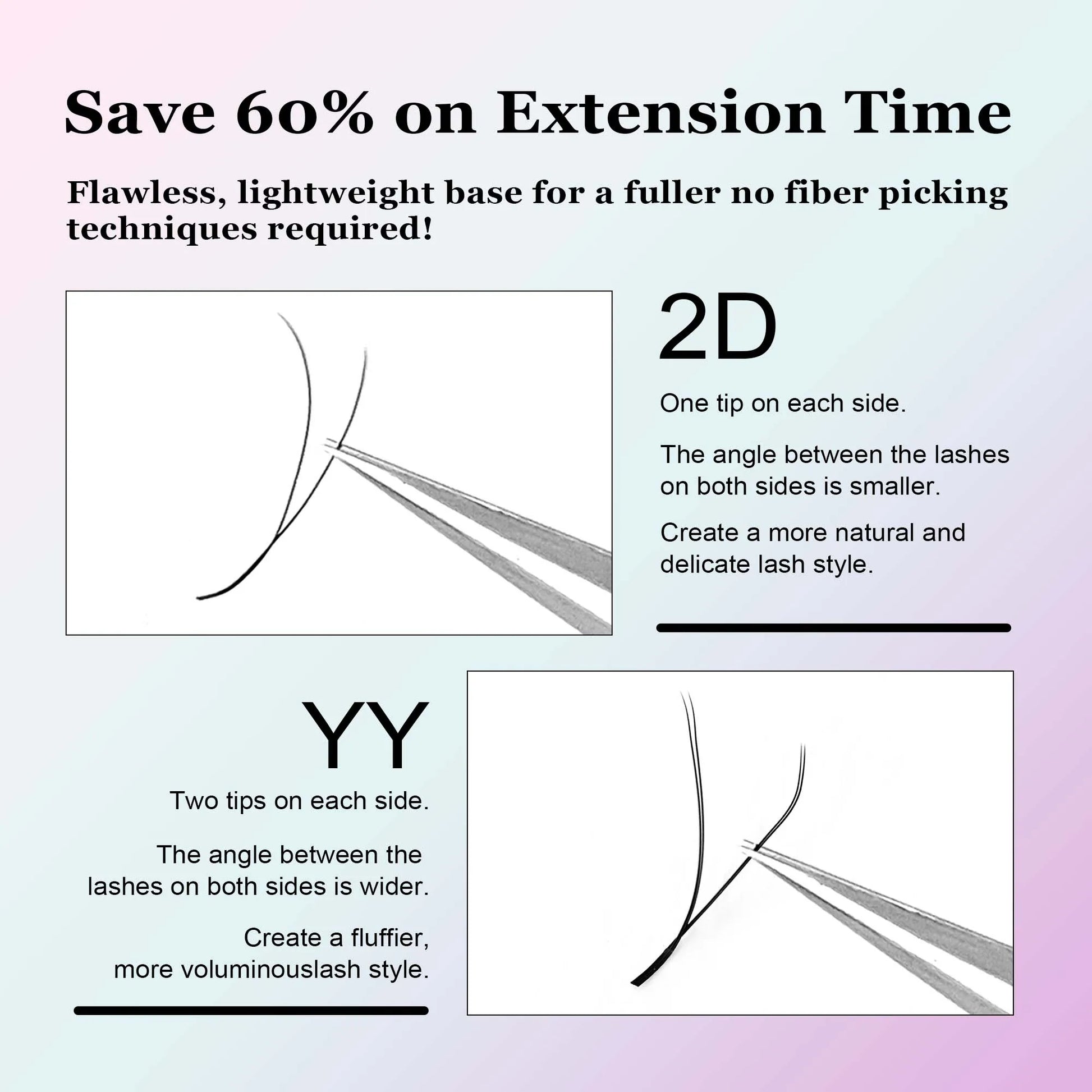 ♥ A new pre-shaped eyelash extension, not like Double Tips YY(2D) Lash, it's Single Tips Y(1D) Lash, so it's thin than YY lash, and easy to use
