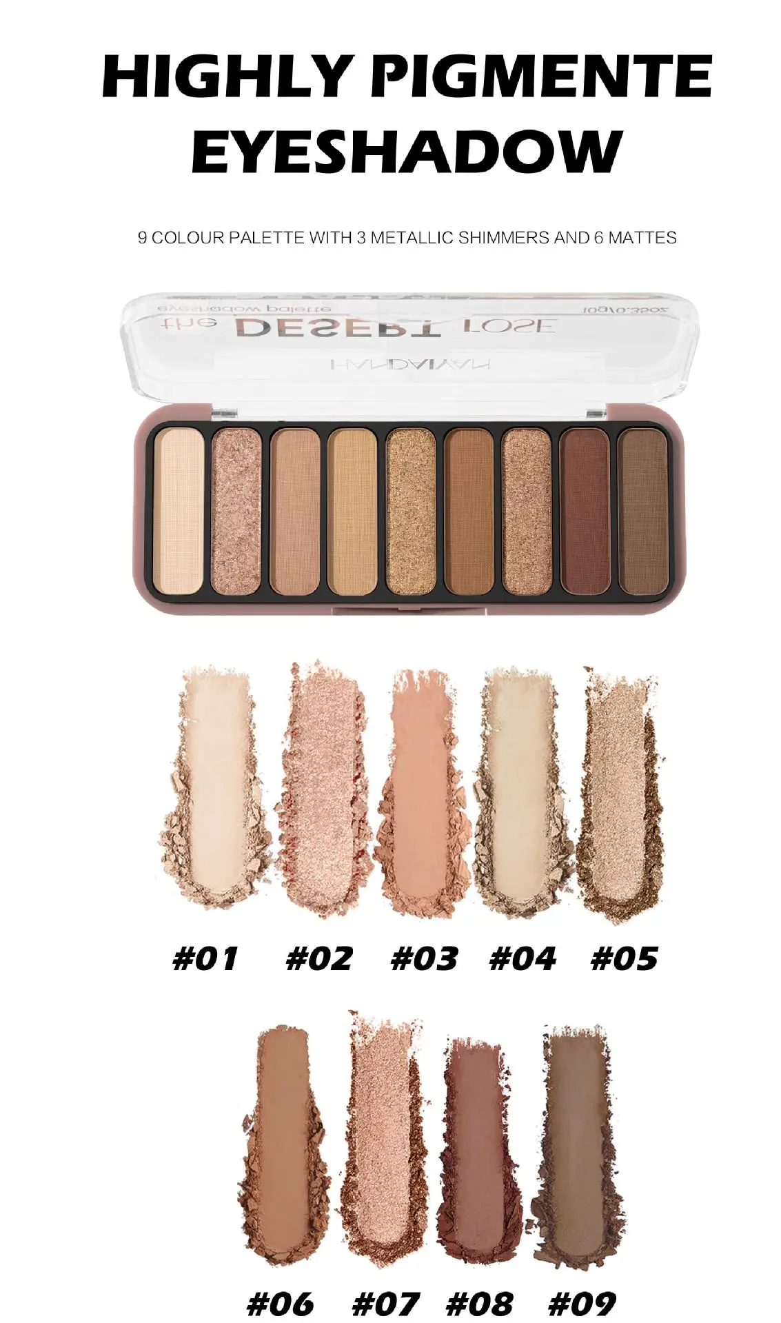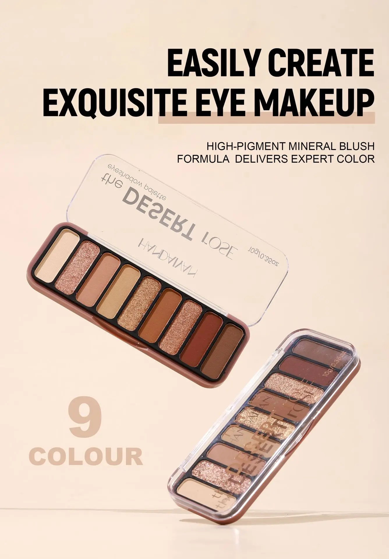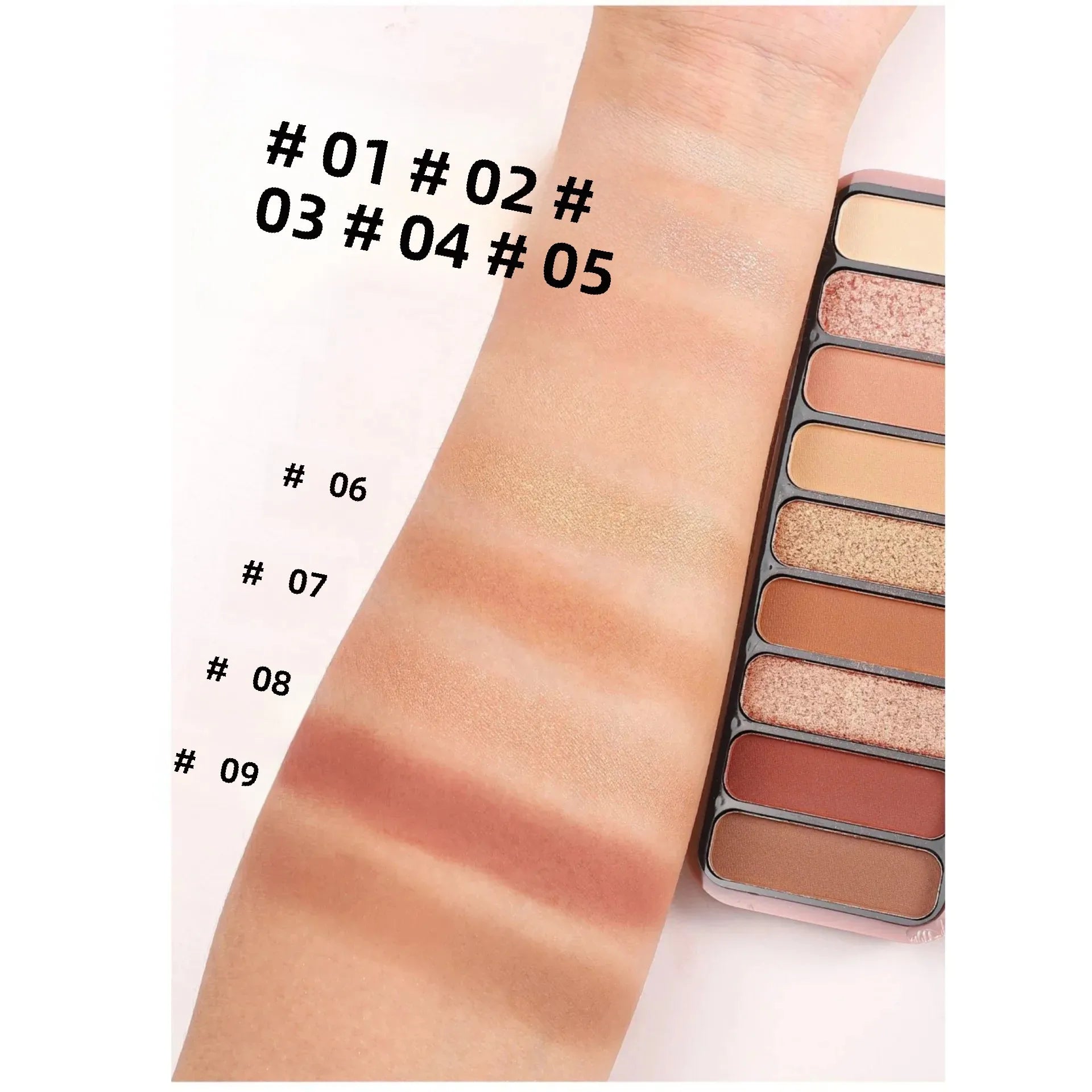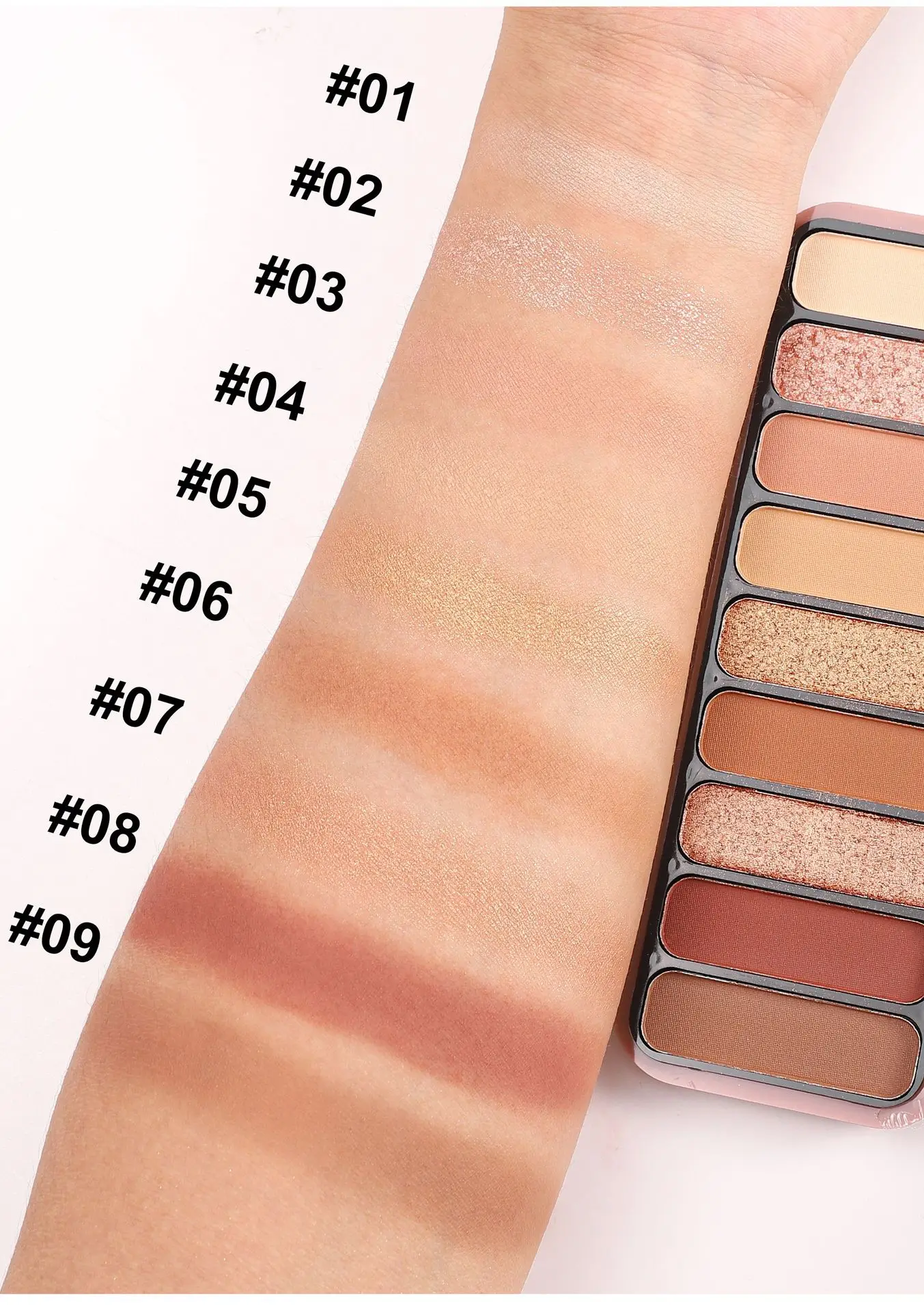 Palette fards à paupières 9 couleurs, haute pigmentation, mats, minéraux, waterproof, longue tenue, tons naturels et terreux