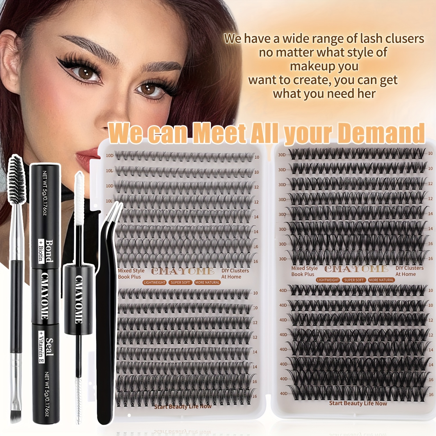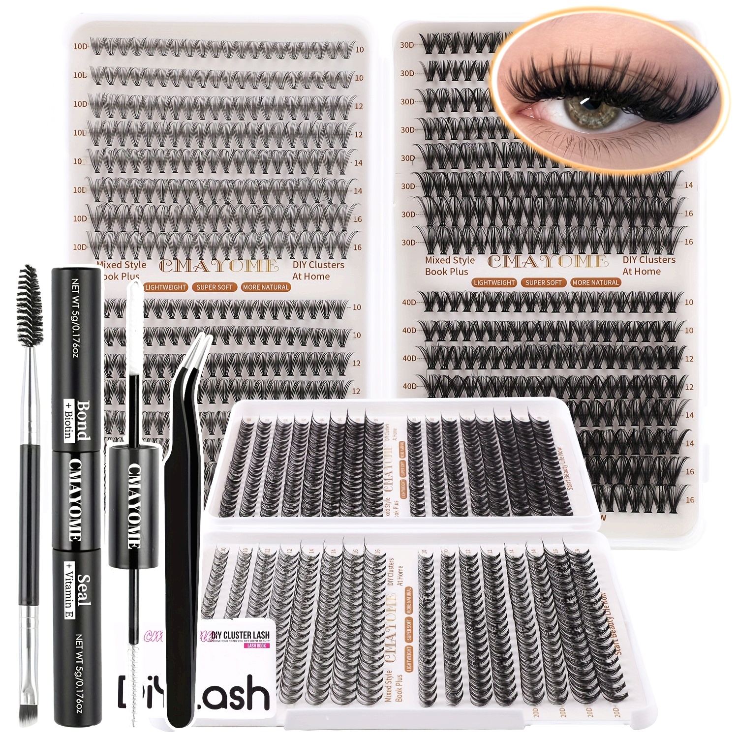 Kit Extensions de Cils — Longueurs Mixtes 10-16 mm, Paquets 10D/20D/30D/40D, Styles Cat Eye, Cosplay, Volume Russe, Naturel, Épais et Dramatique, Inclus Colle et Scellant, Pinces, Débutants, Curl D, Haute Pigmentation