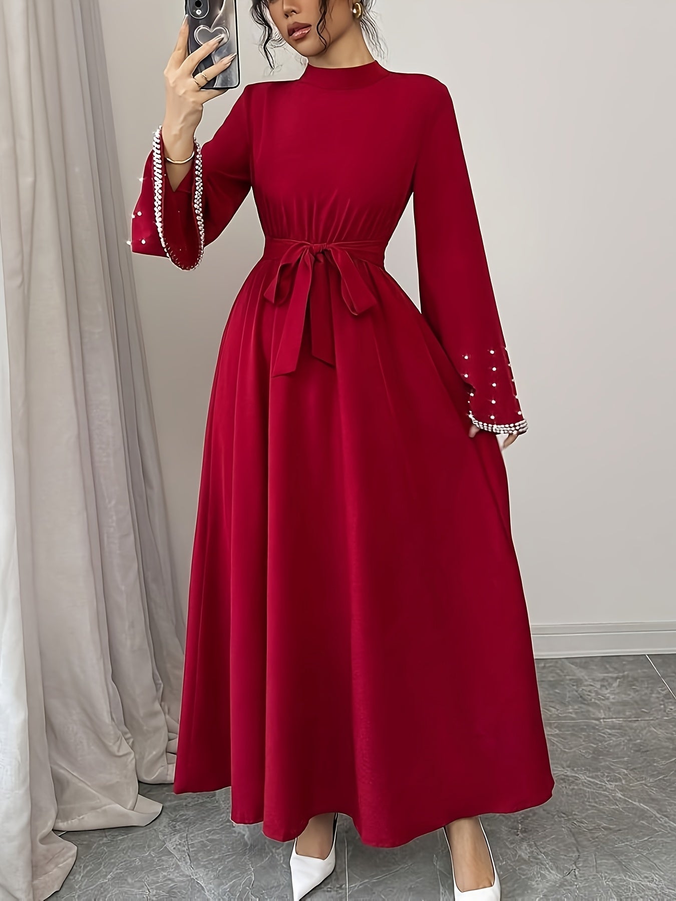 Elegant Women'S High-Neck Flared Sleeve Dress
