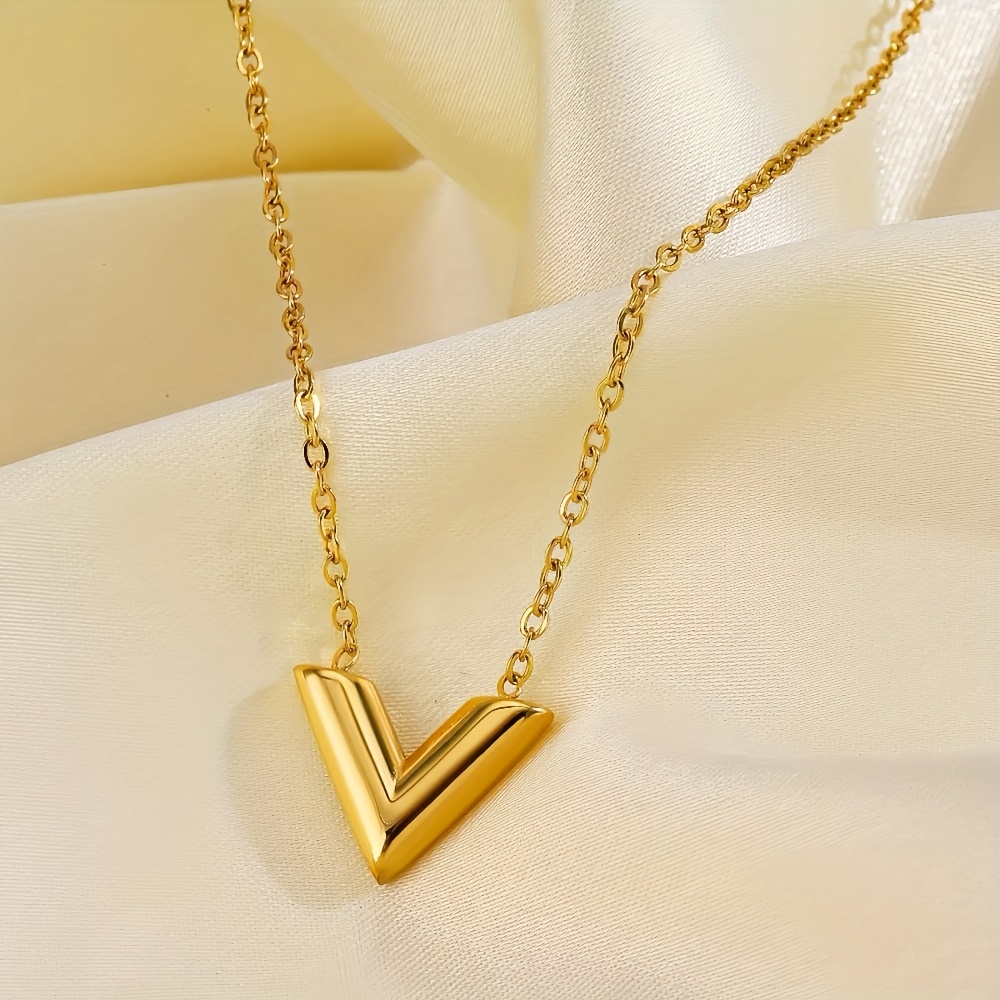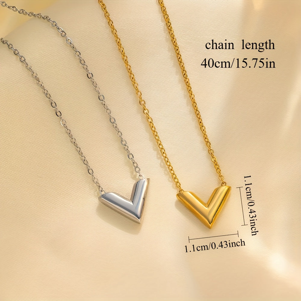 Collier Femme Minimaliste Élégant – V, Hypoallergénique, Acier Inoxydable Plaqué Or 18K, Chaîne Dorée et Argentée, Idéal Quotidien et Soirées, Cadeau Saint-Valentin