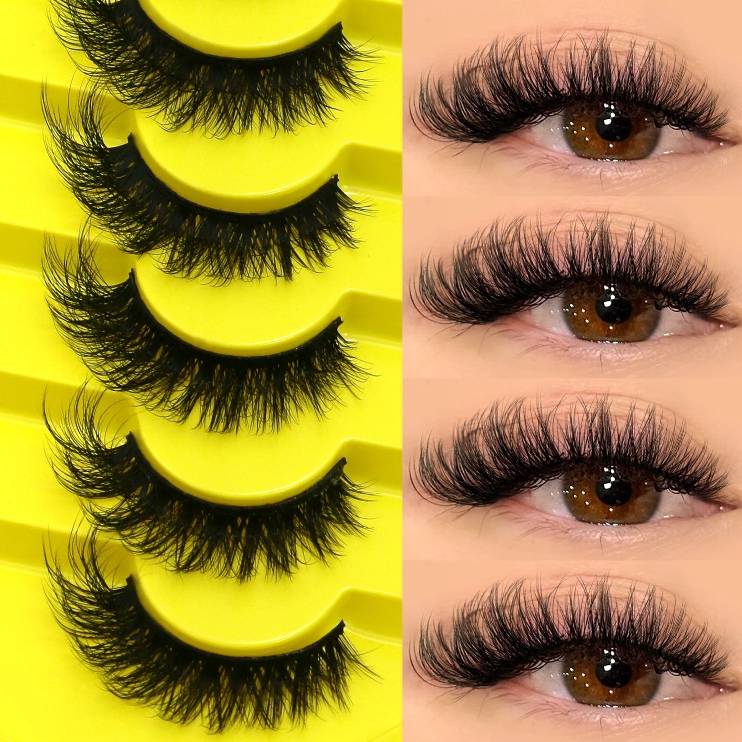 Faux Cils Fluffy 5/7 Paires Yeux de Chat Dramatiques Épais Fluffy 5D Volume Faux Mink Extension