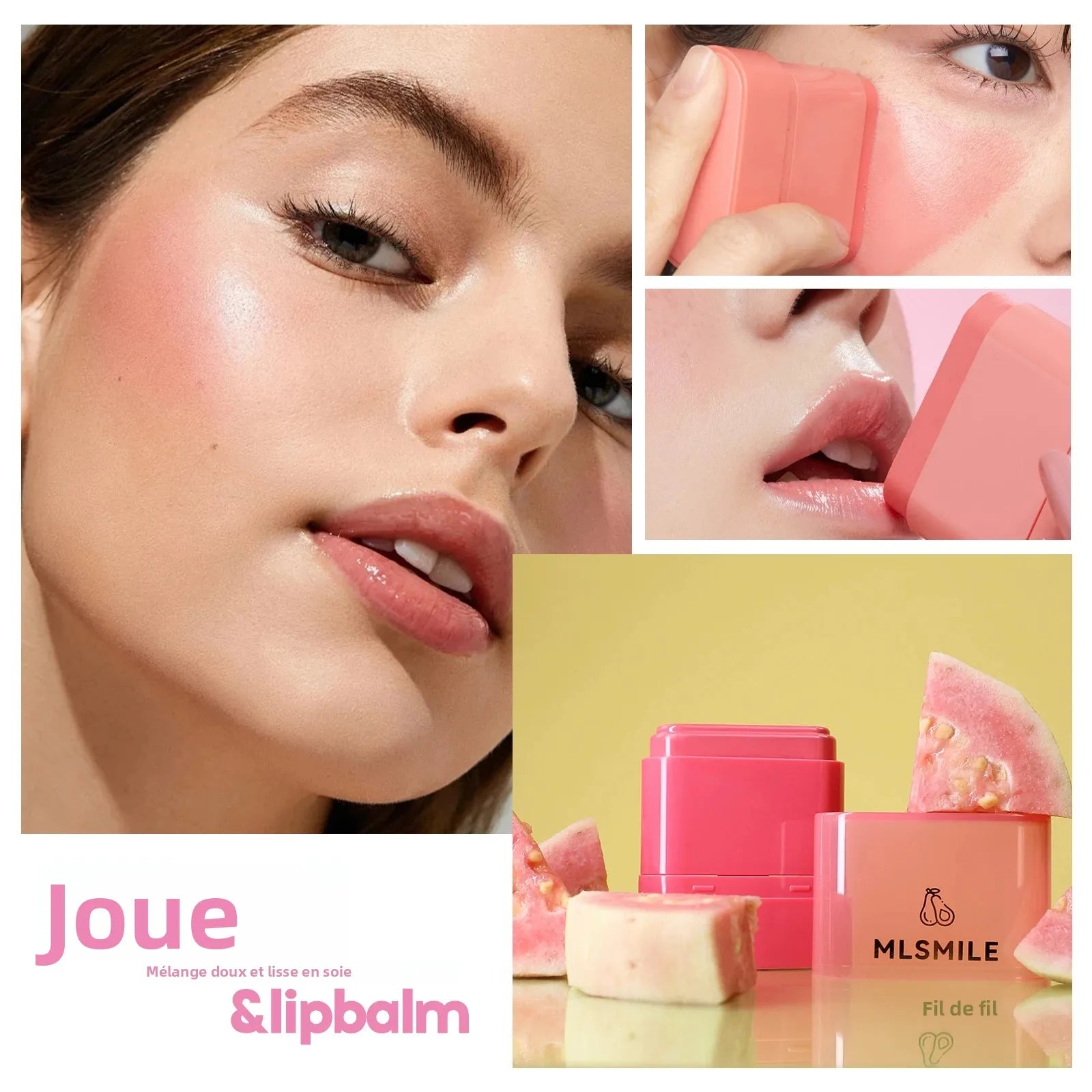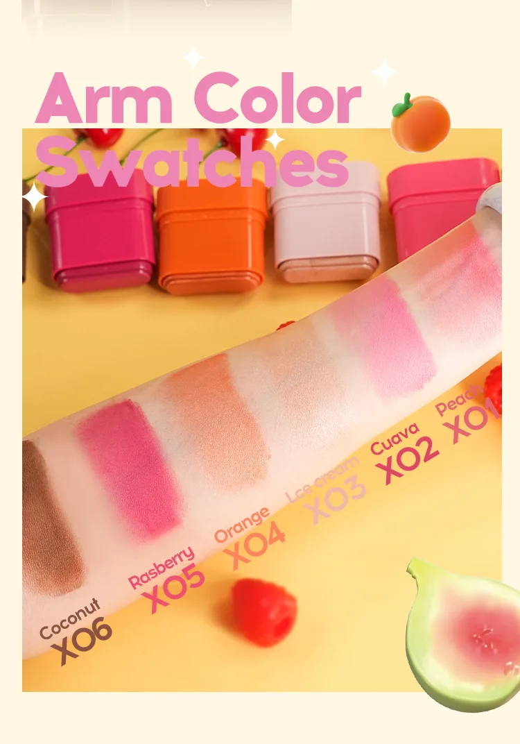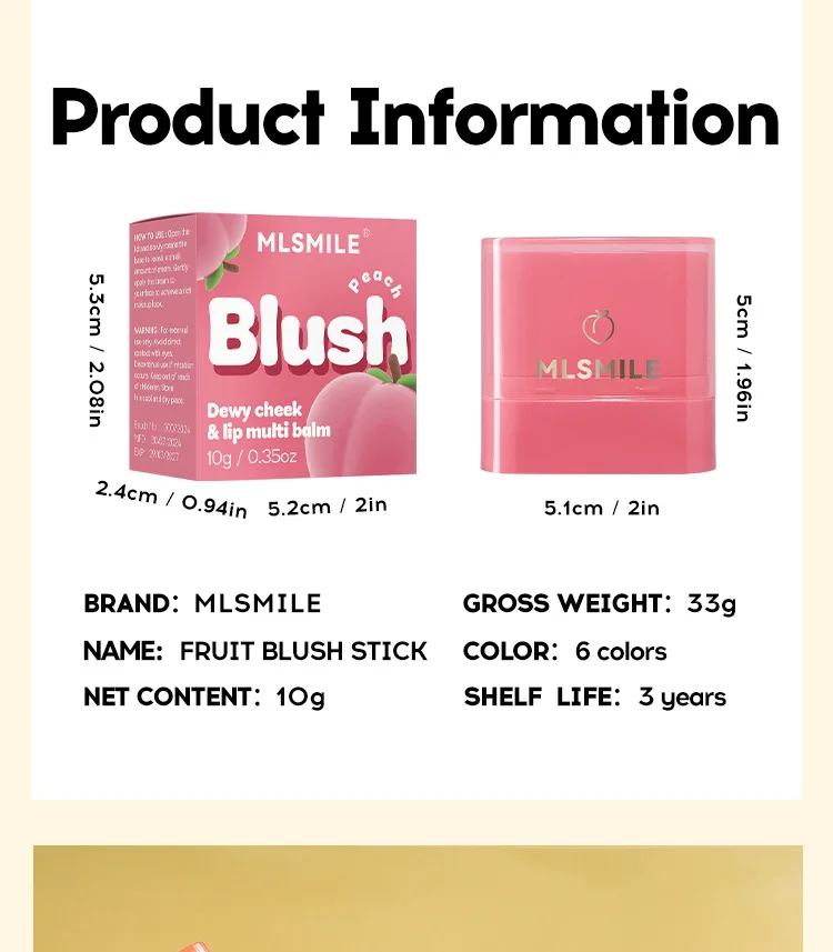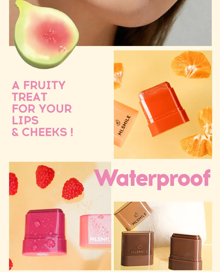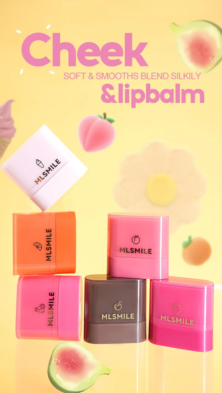 MLSMILE Fruity Blush Stick 2in1 Lipstick Blush Easy To Color Waterproof Long-Lasting Highlight Contouring Cosmetics