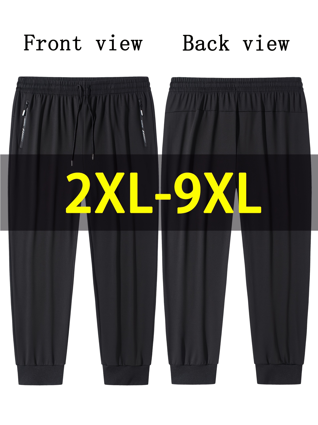 Joggers grande taille pour homme (2XL–9XL) – tissu stretch à séchage rapide, taille élastique à cordon, coupe ample, idéals gym, running et usage quotidien, couleurs noir, gris et bleu