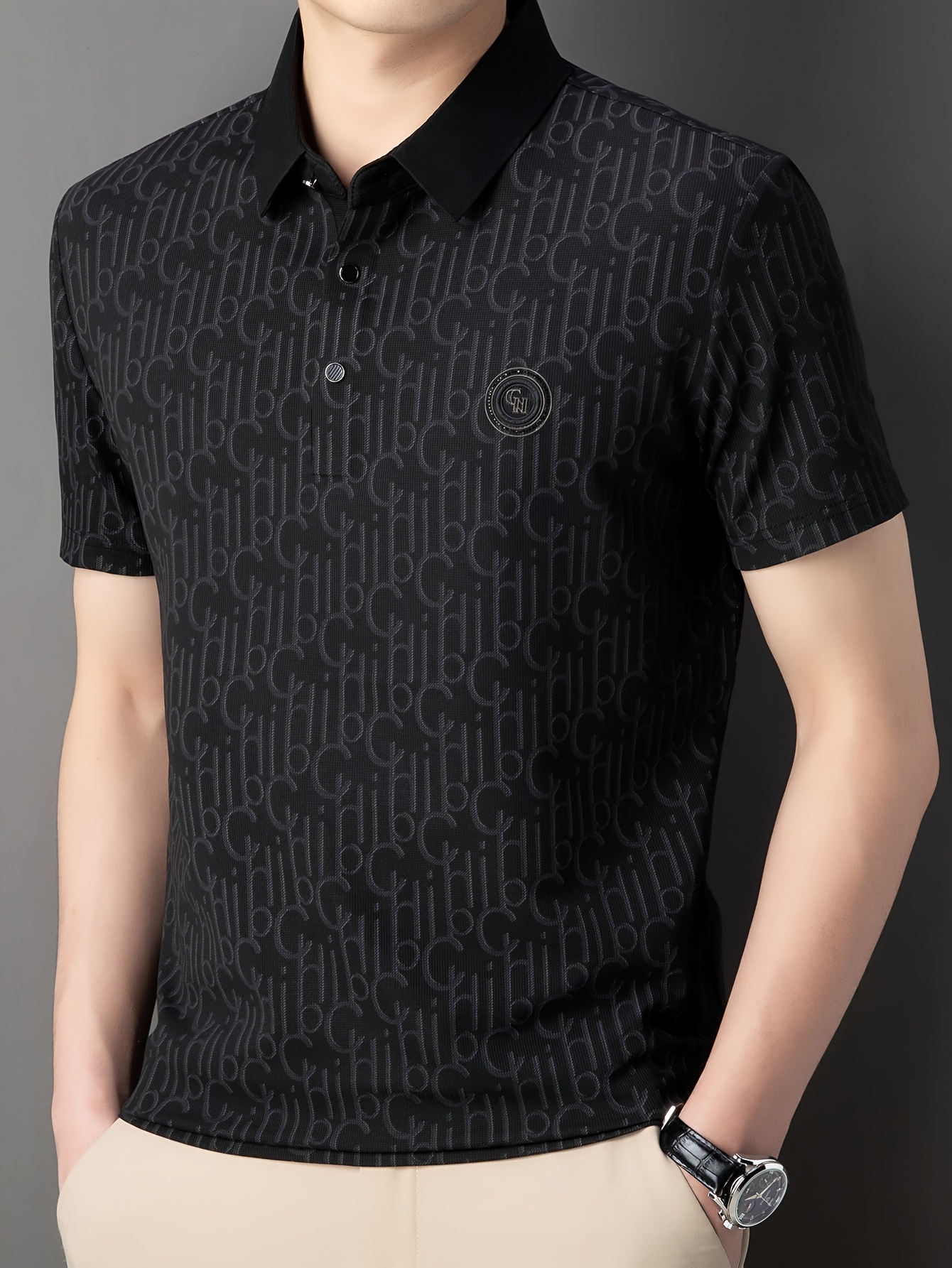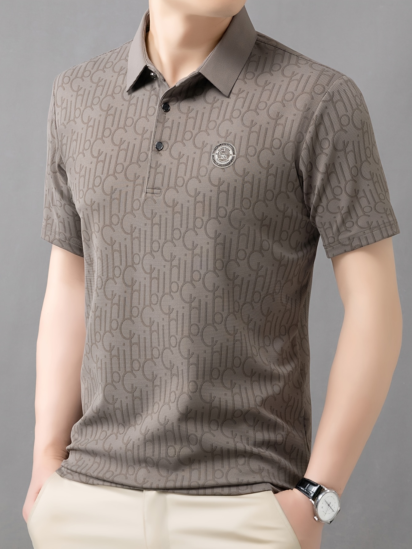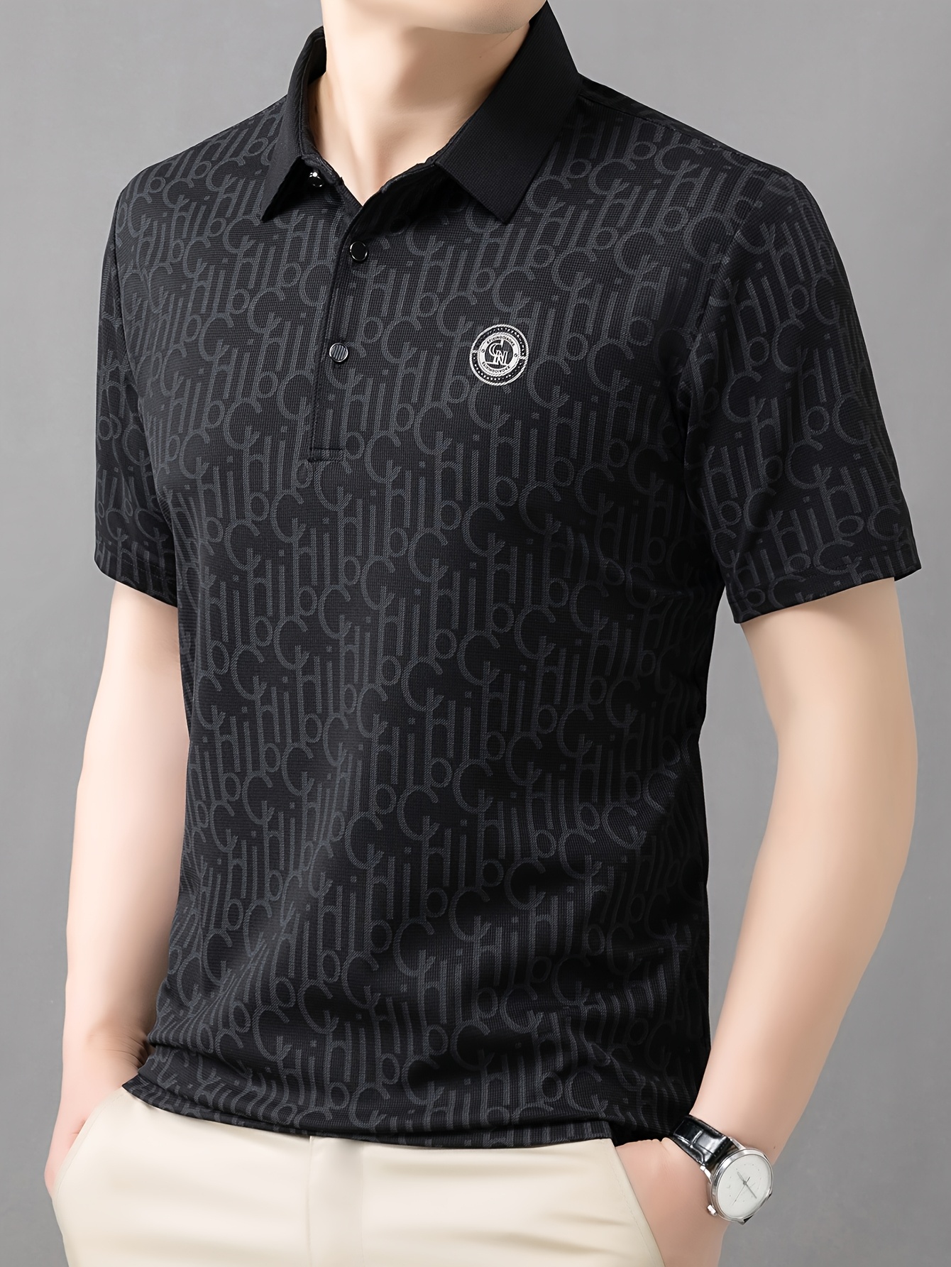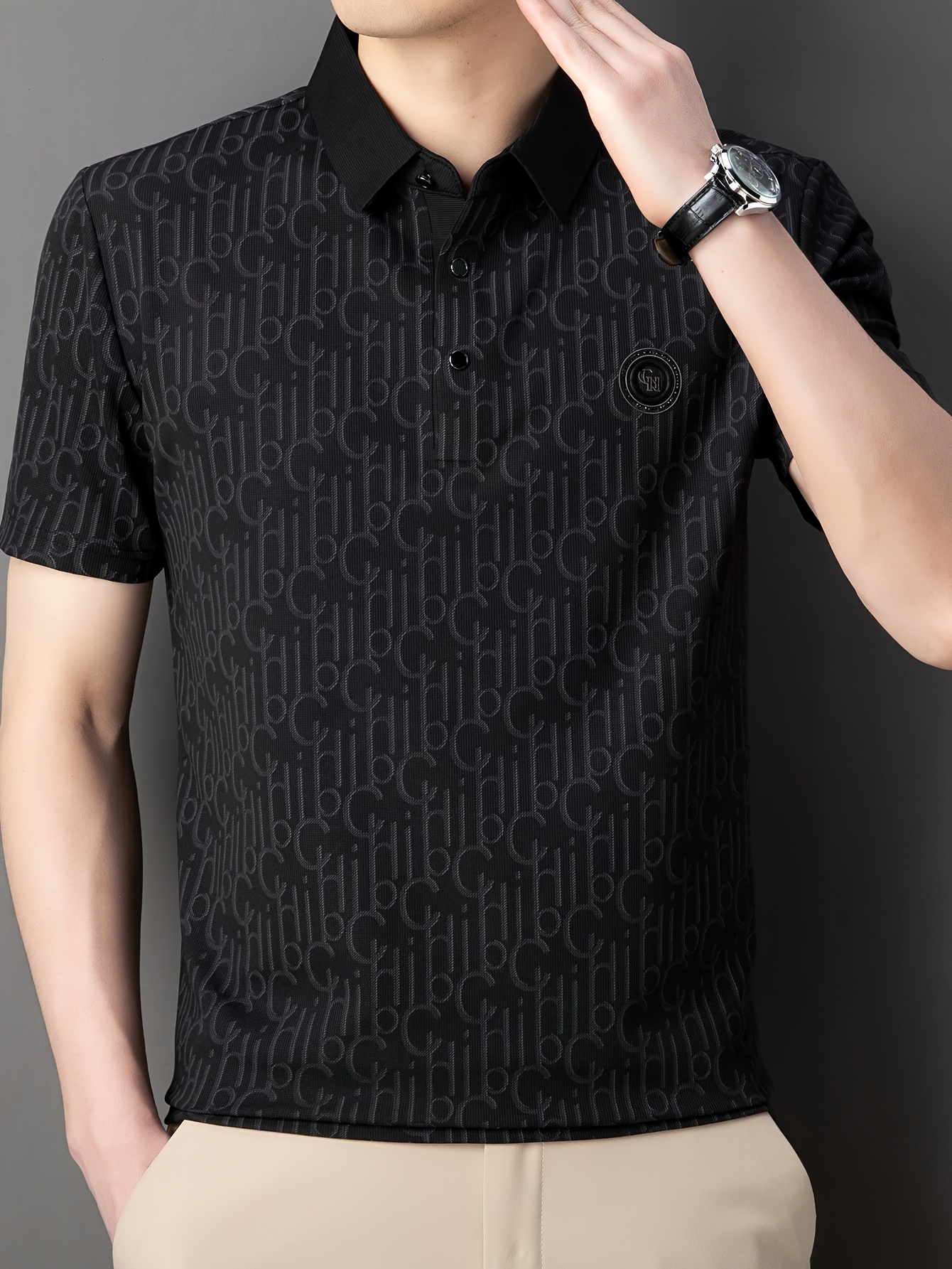Men'S Breathable Summer Graphic T-Shirt - Short Sleeve, Button-Up Collar, Casual Streetwear with Stylish "H" Print Design, Lightweight Polyester Fabric for Golf, Tennis & Weekend Outing
