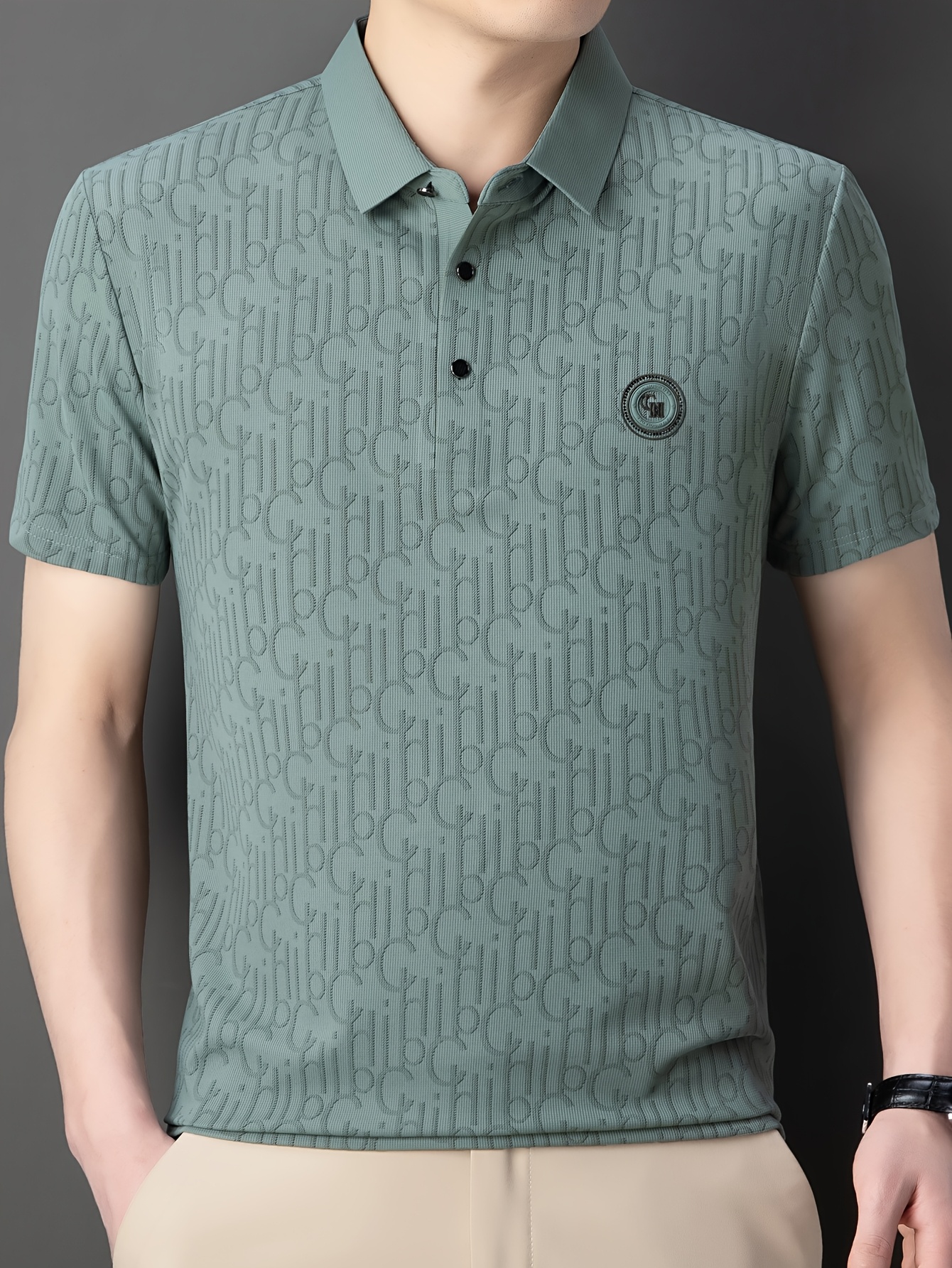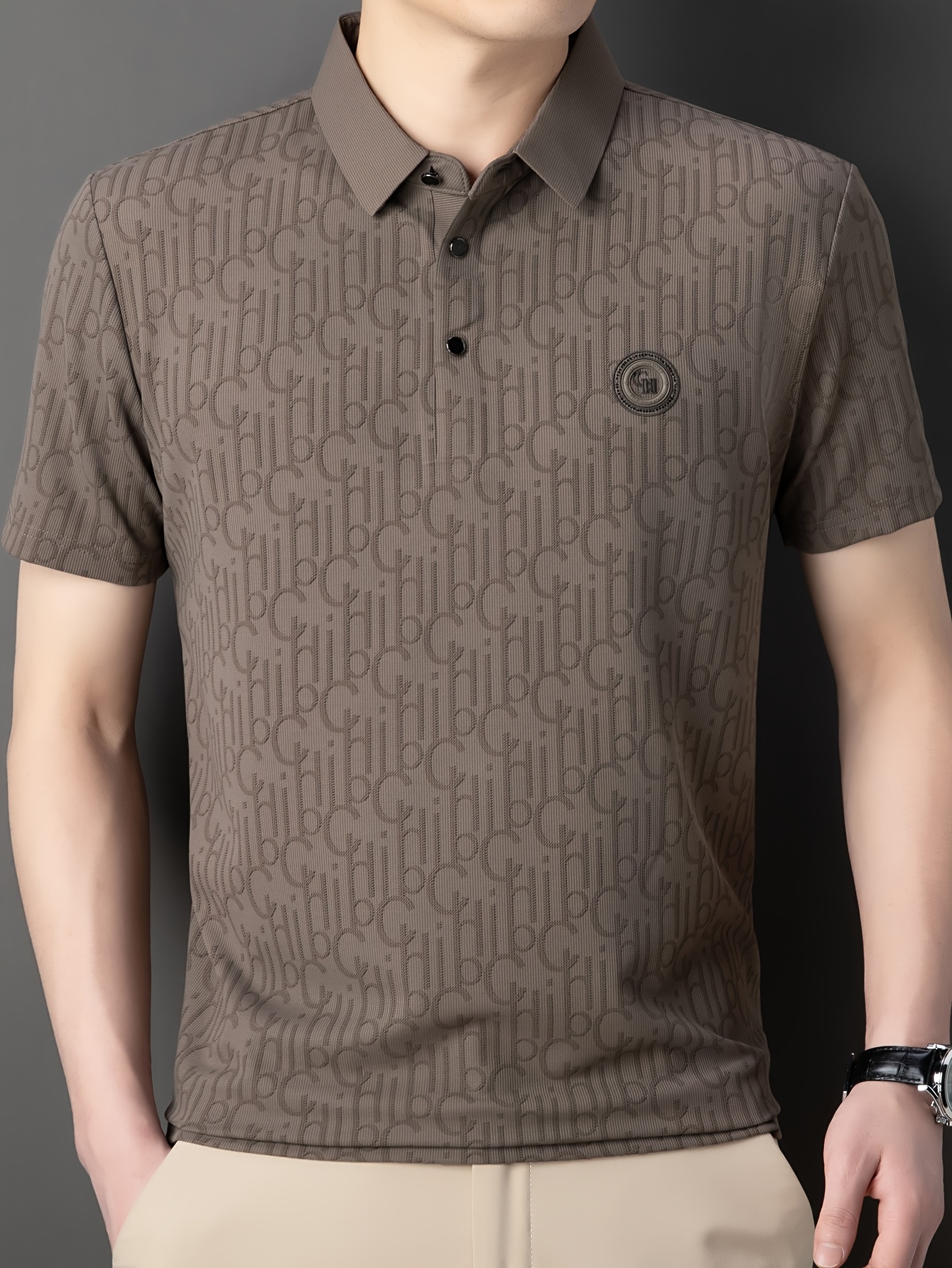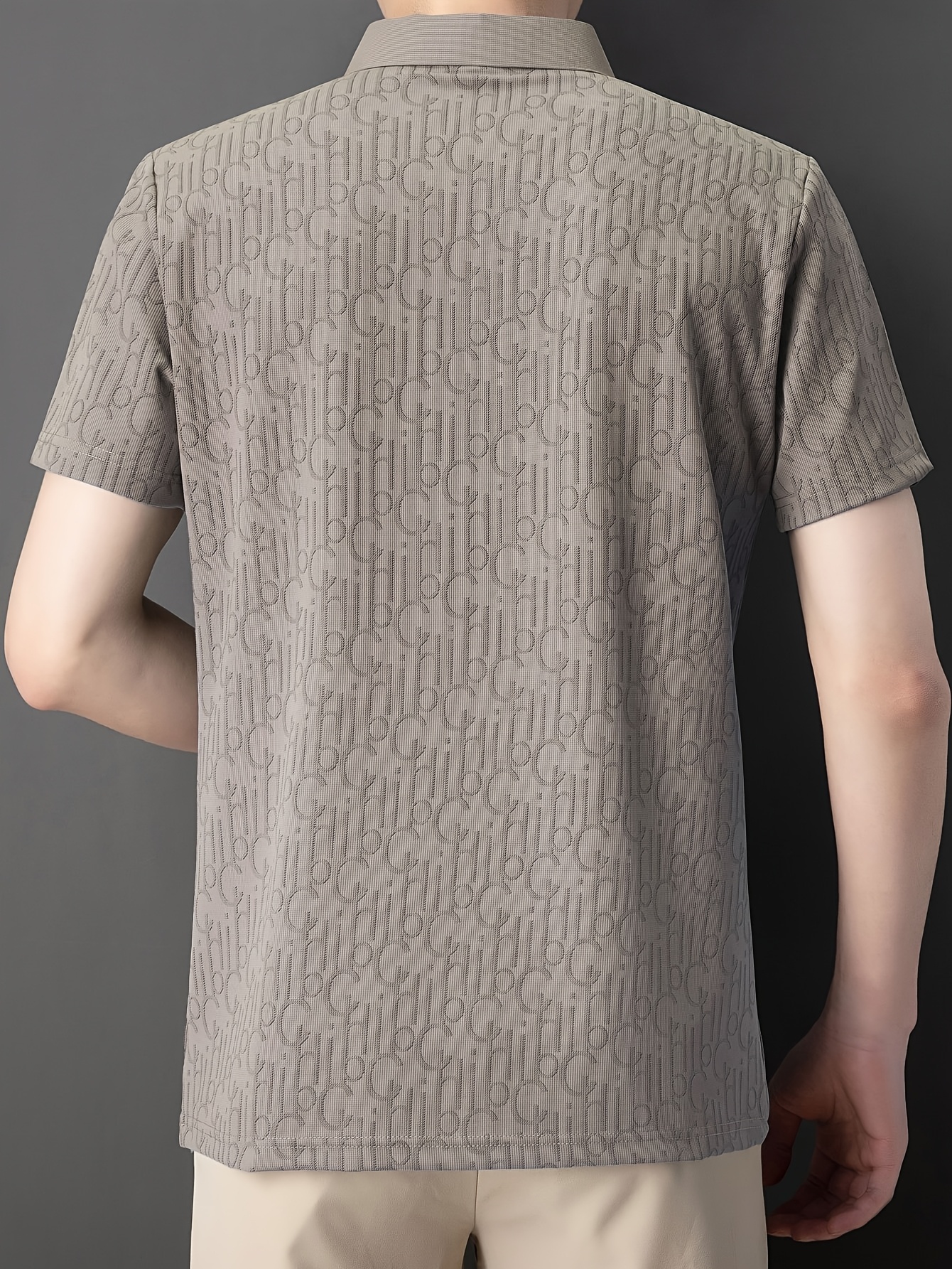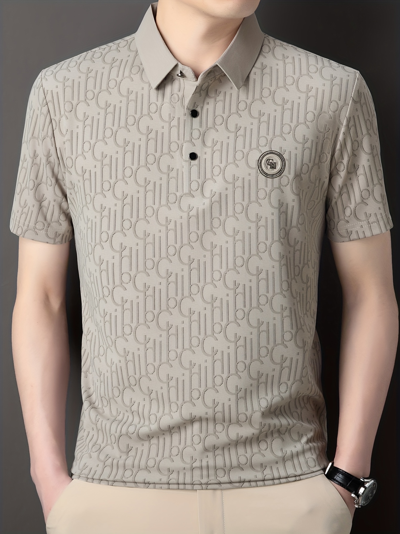 Men'S Breathable Summer Graphic T-Shirt - Short Sleeve, Button-Up Collar, Casual Streetwear with Stylish "H" Print Design, Lightweight Polyester Fabric for Golf, Tennis & Weekend Outing