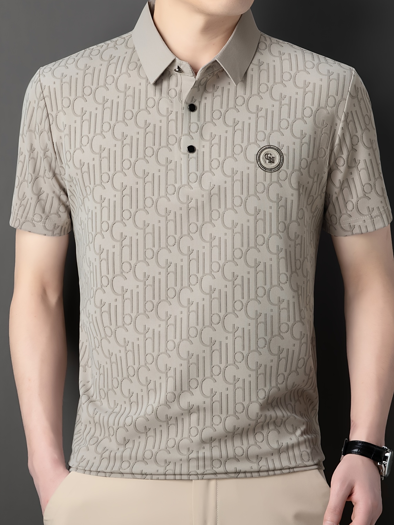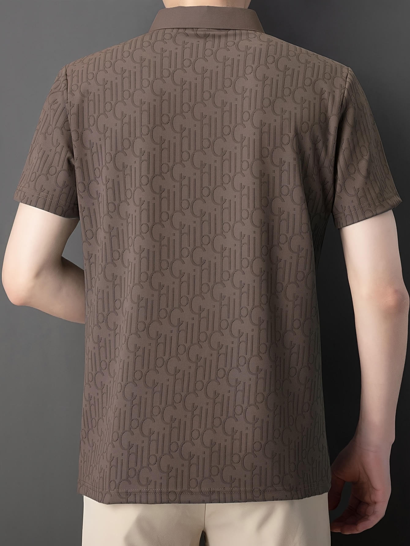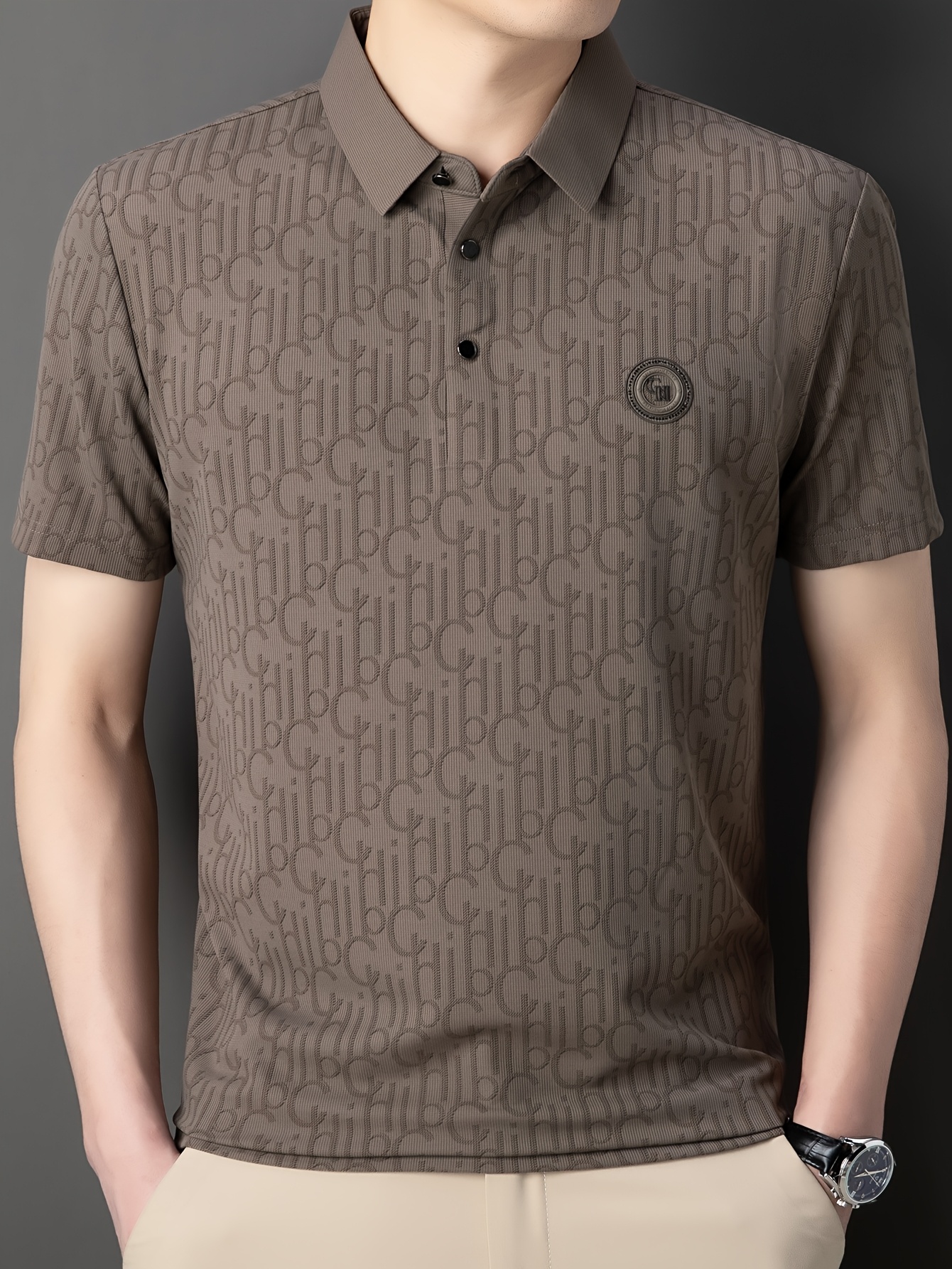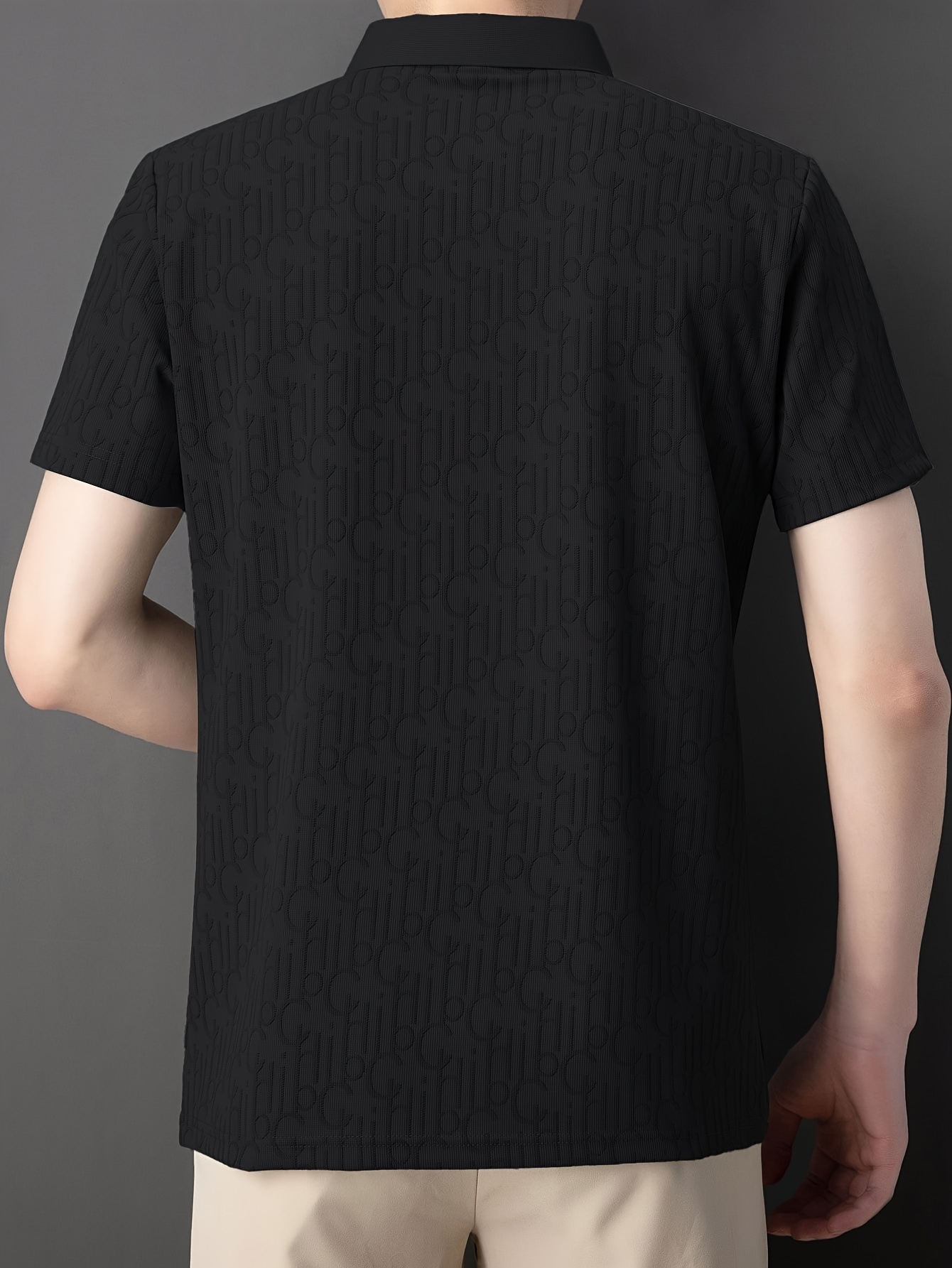 Men'S Breathable Summer Graphic T-Shirt - Short Sleeve, Button-Up Collar, Casual Streetwear with Stylish "H" Print Design, Lightweight Polyester Fabric for Golf, Tennis & Weekend Outing