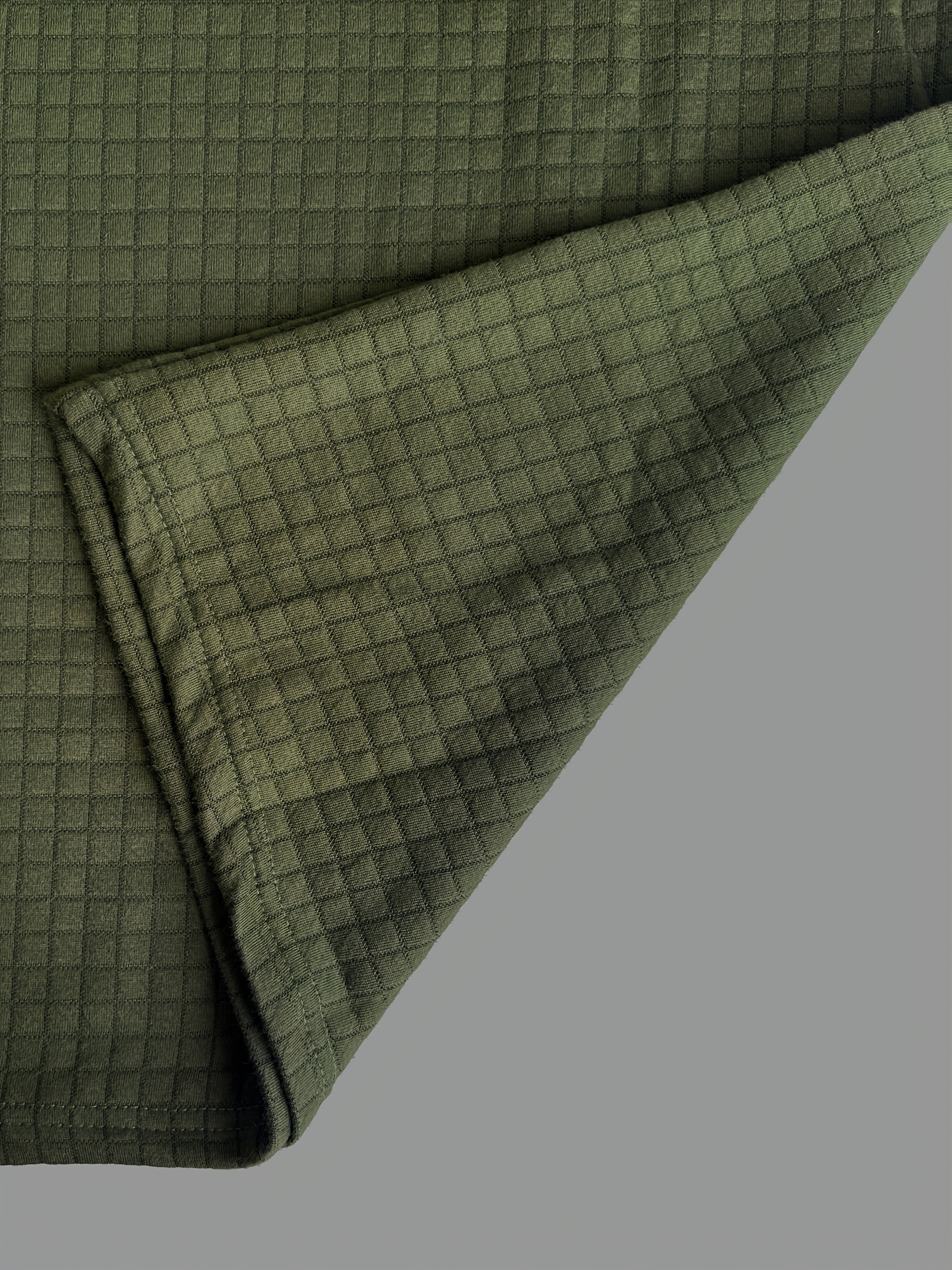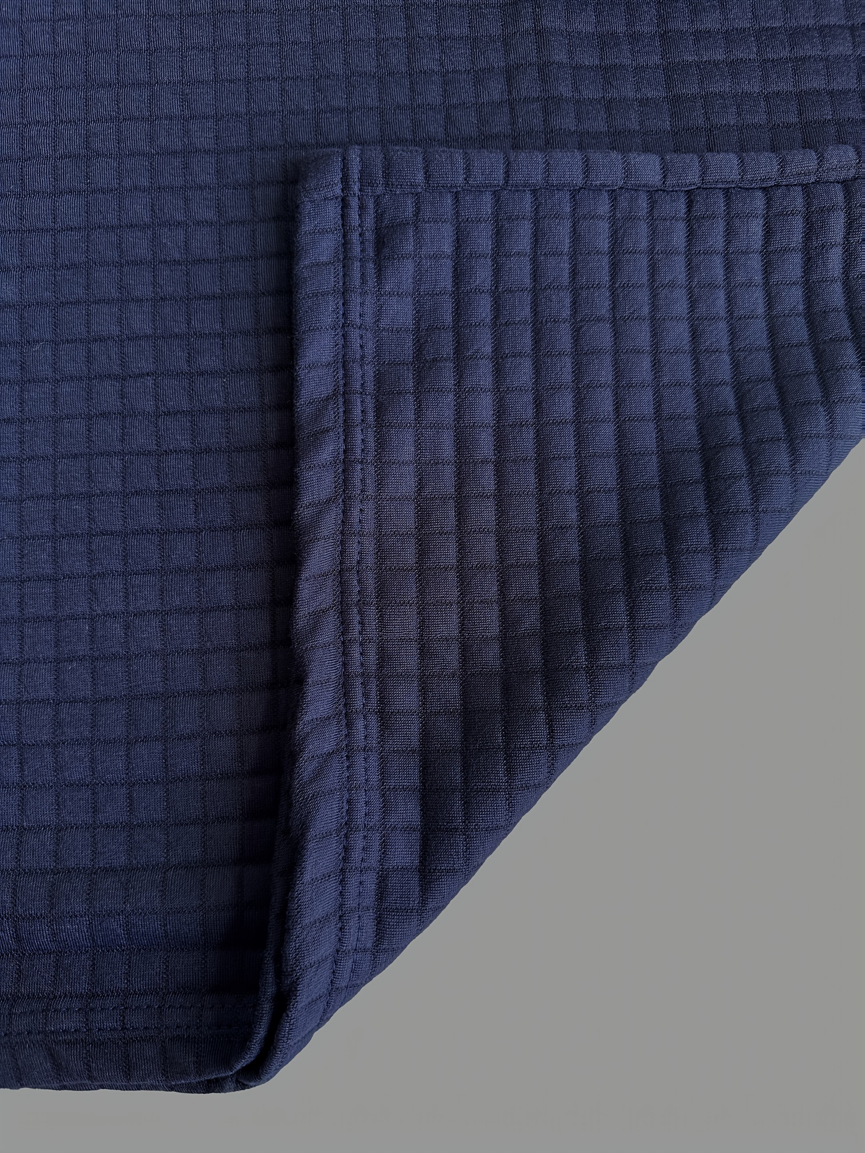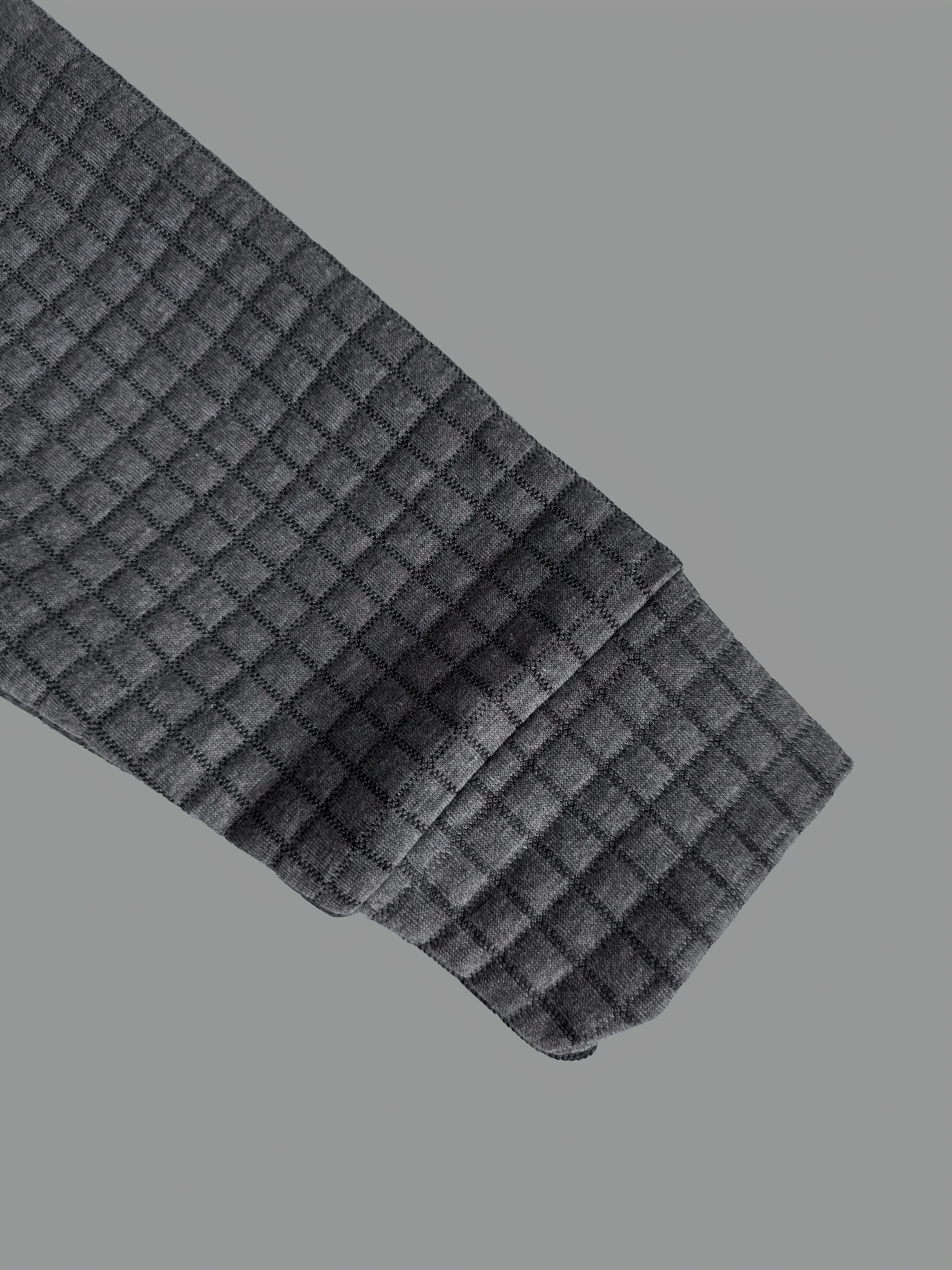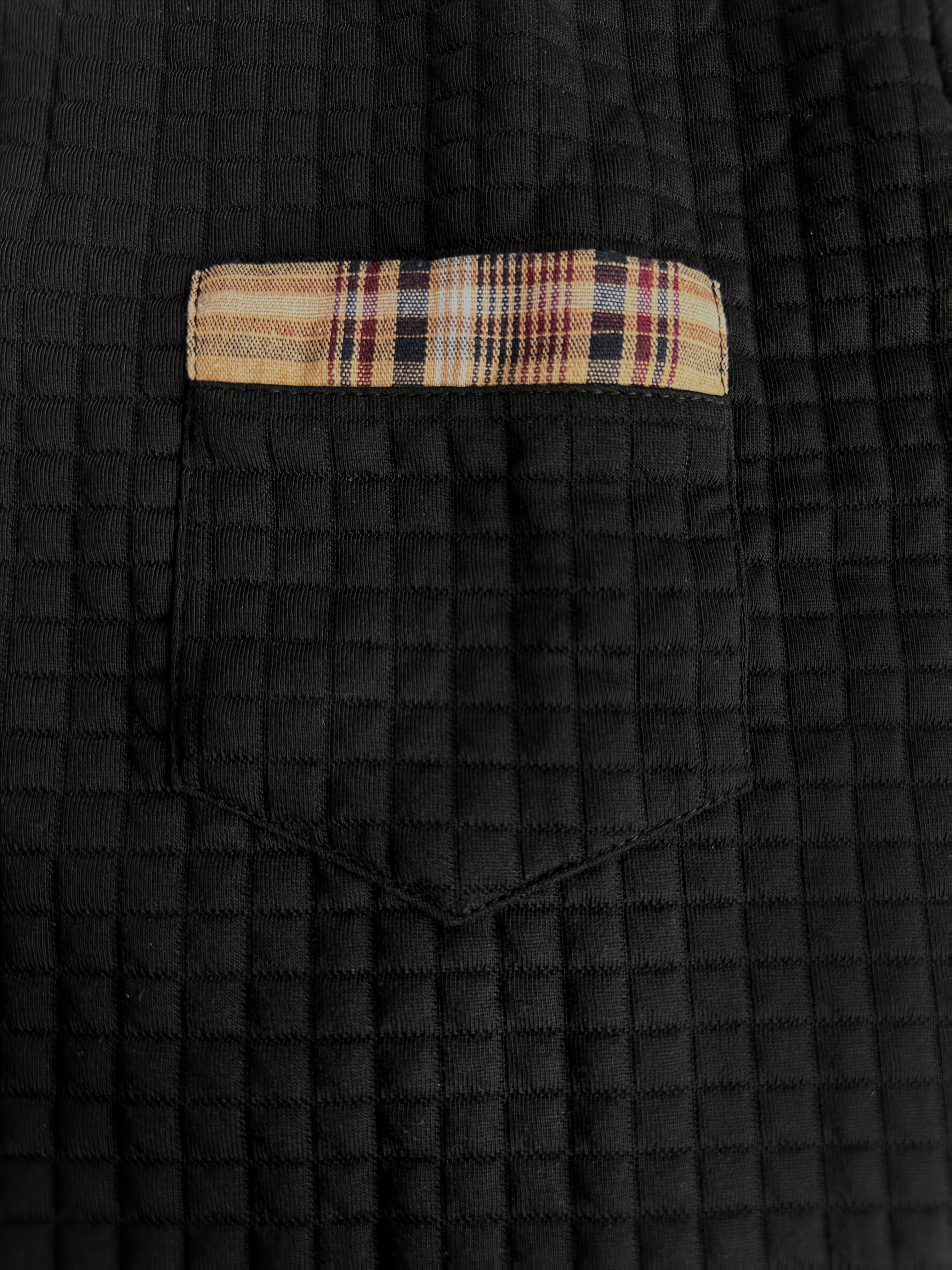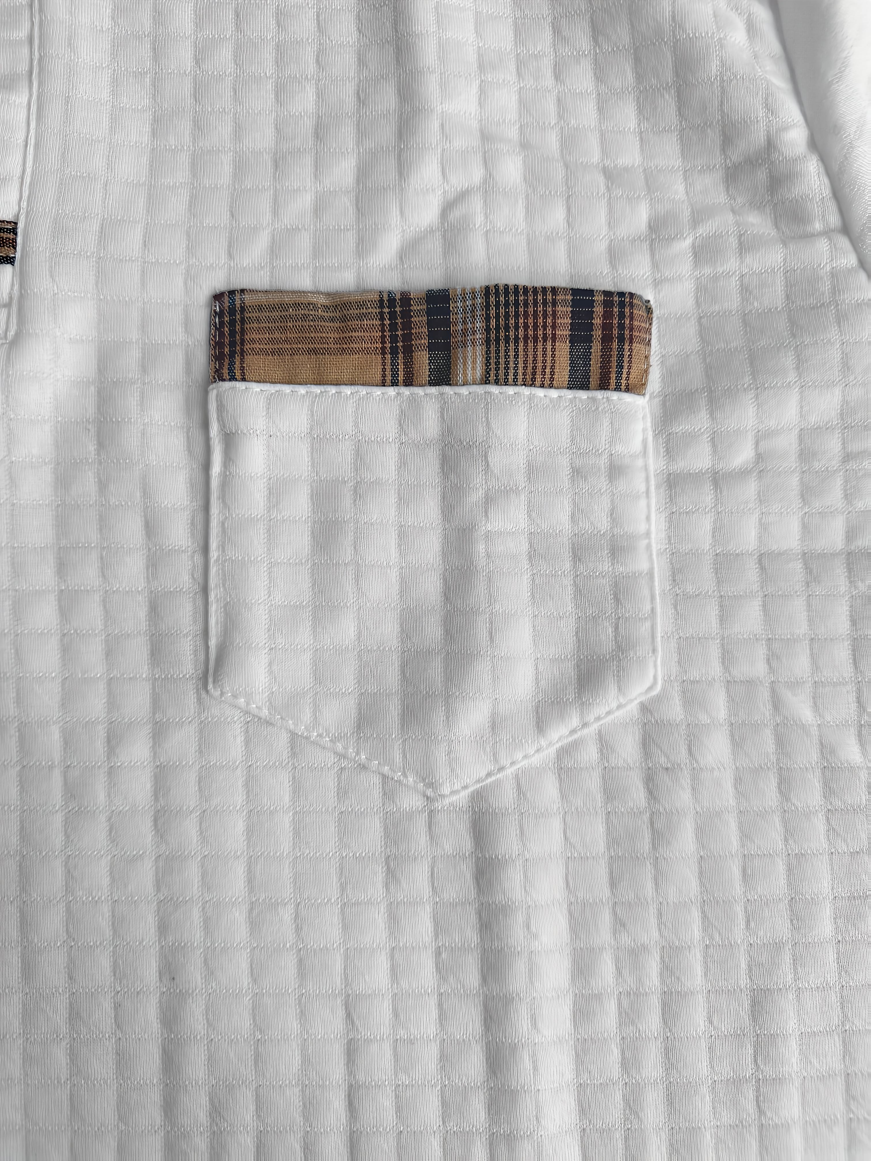 Men'S Casual Warm Long Sleeve Polo Shirt - Gray with Brown & White Plaid Collar, Button-Up Front, Textured Waffle Weave, Perfect for Fall, Casual Wear|Plaid Pattern Shirt|Buttonup Collar Shirt