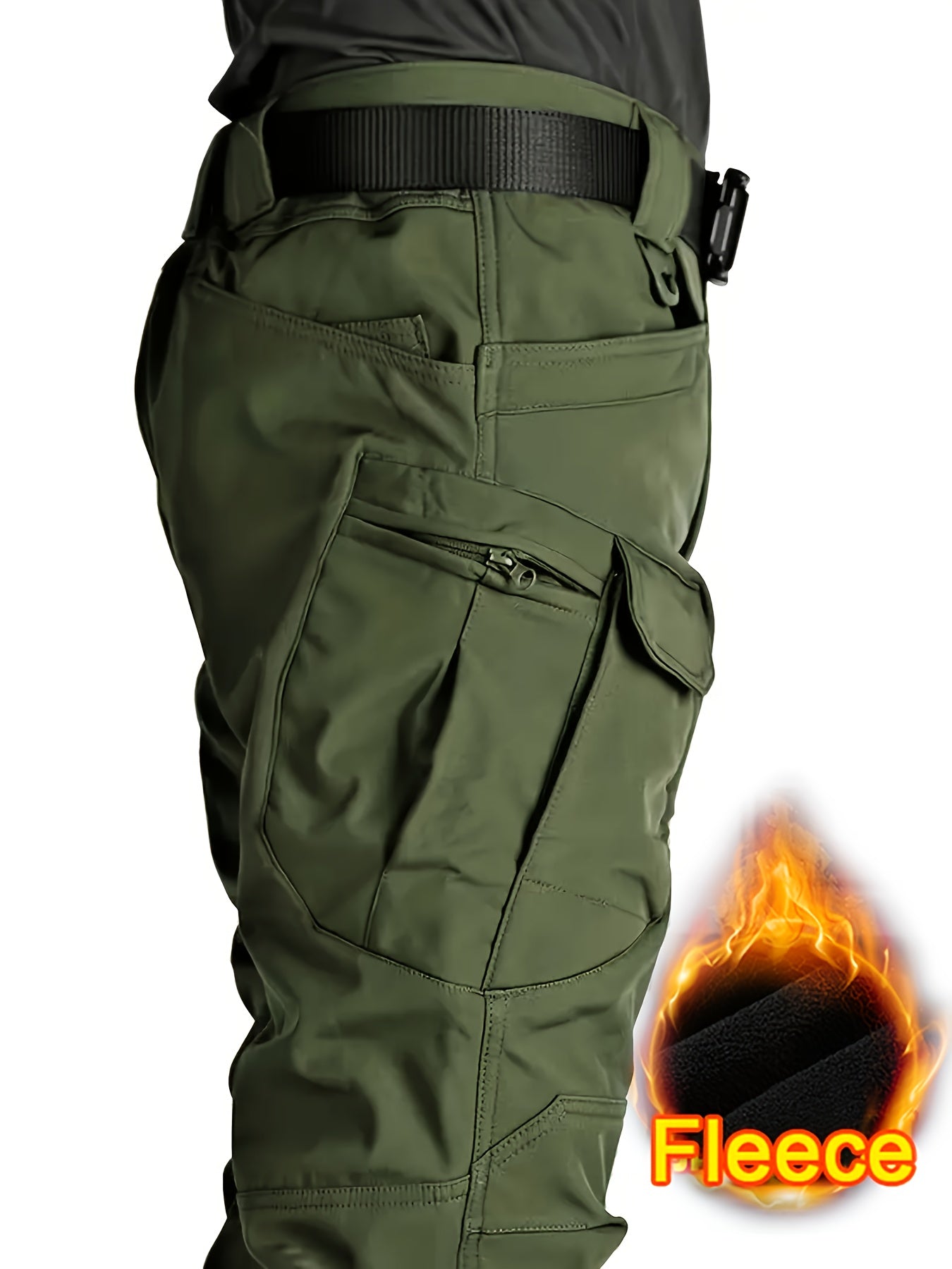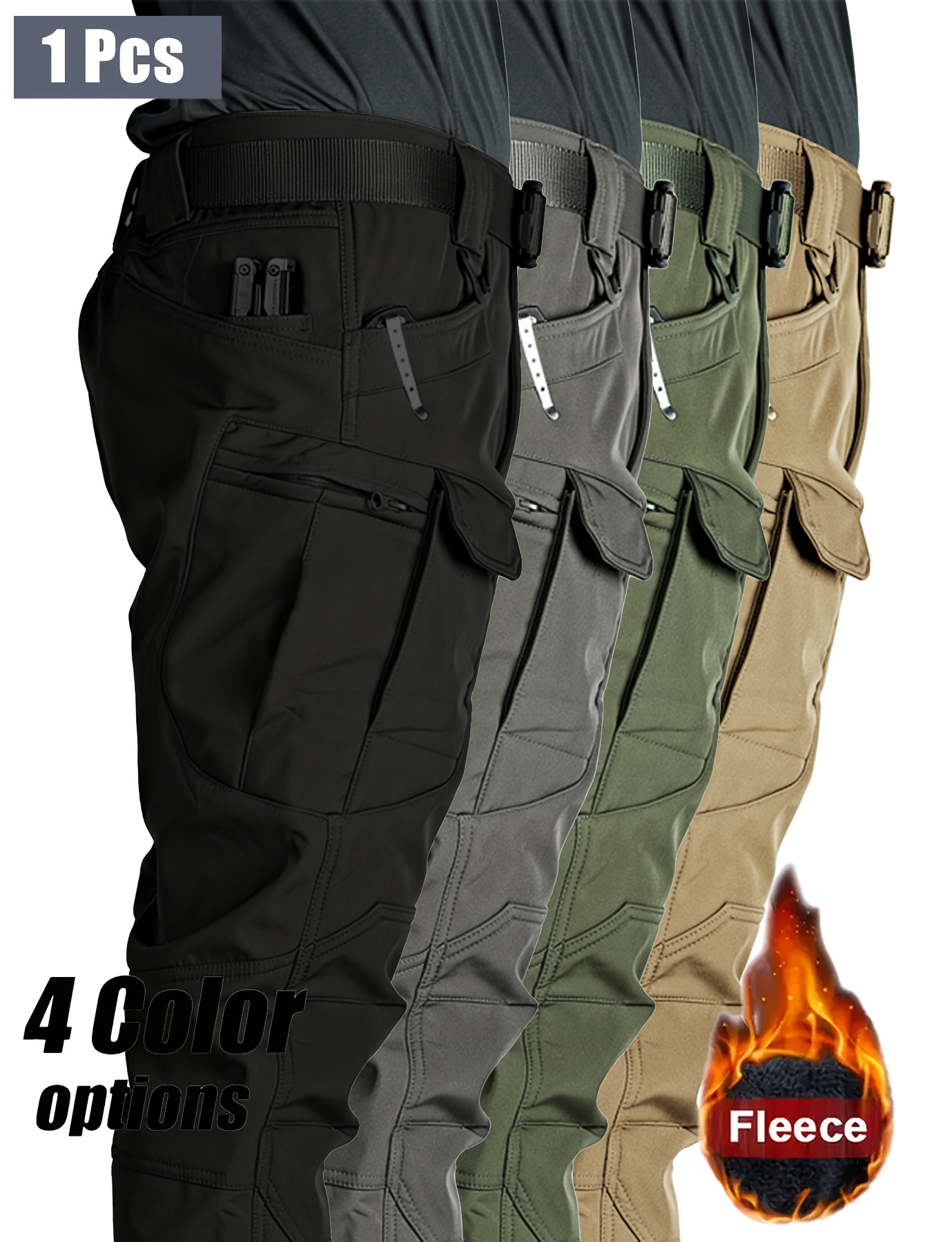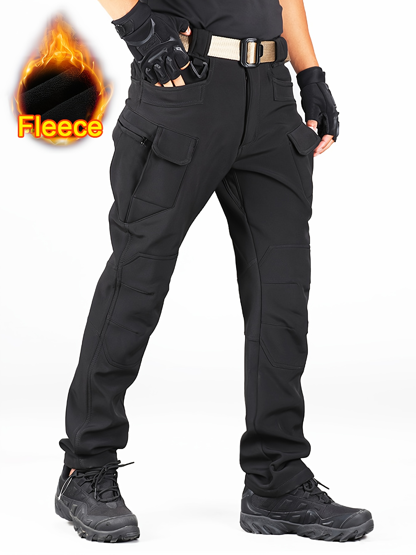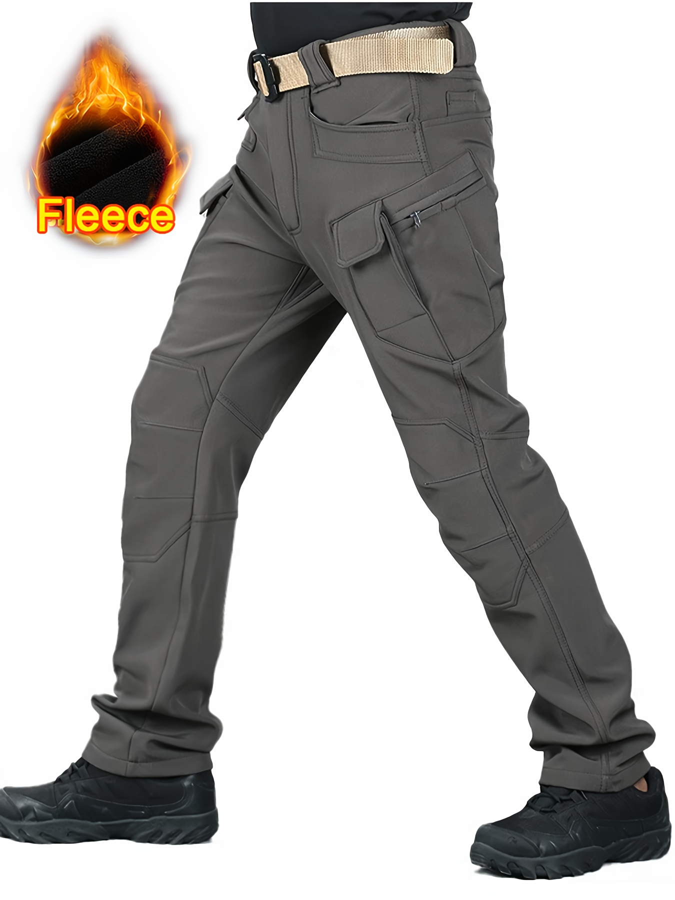 Pantalon cargo tactique en polaire pour homme – multi-poches, couleur unie, coupe-vent, tissu micro-extensible 295 g, idéal activités outdoor, randonnée et usage quotidien (sans ceinture)