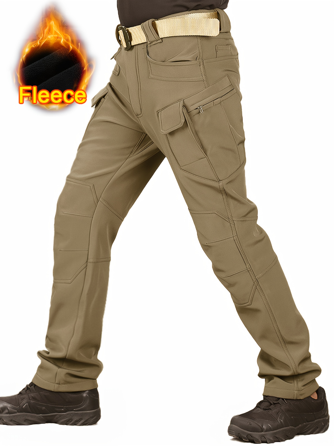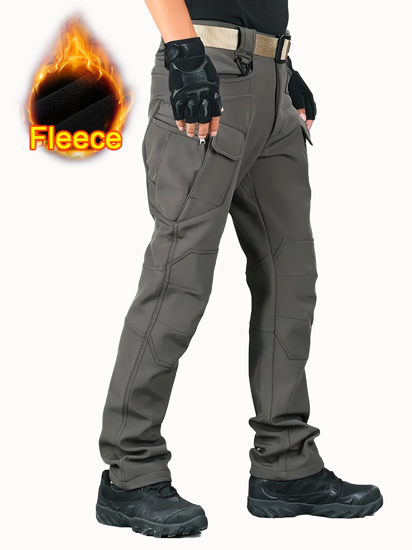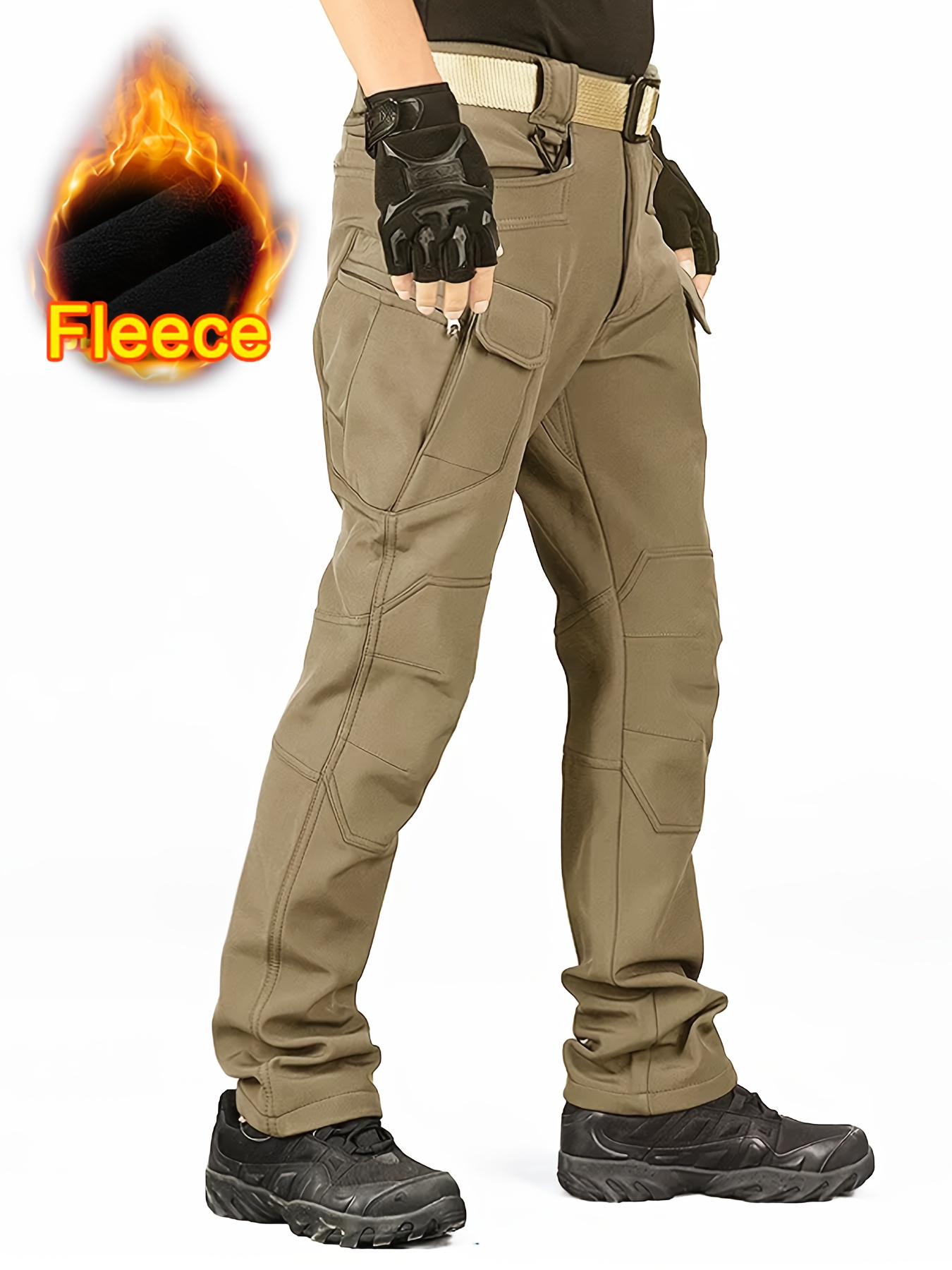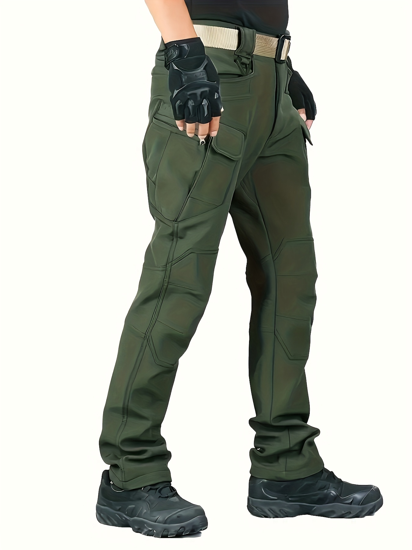 Pantalon cargo tactique en polaire pour homme – multi-poches, couleur unie, coupe-vent, tissu micro-extensible 295 g, idéal activités outdoor, randonnée et usage quotidien (sans ceinture)