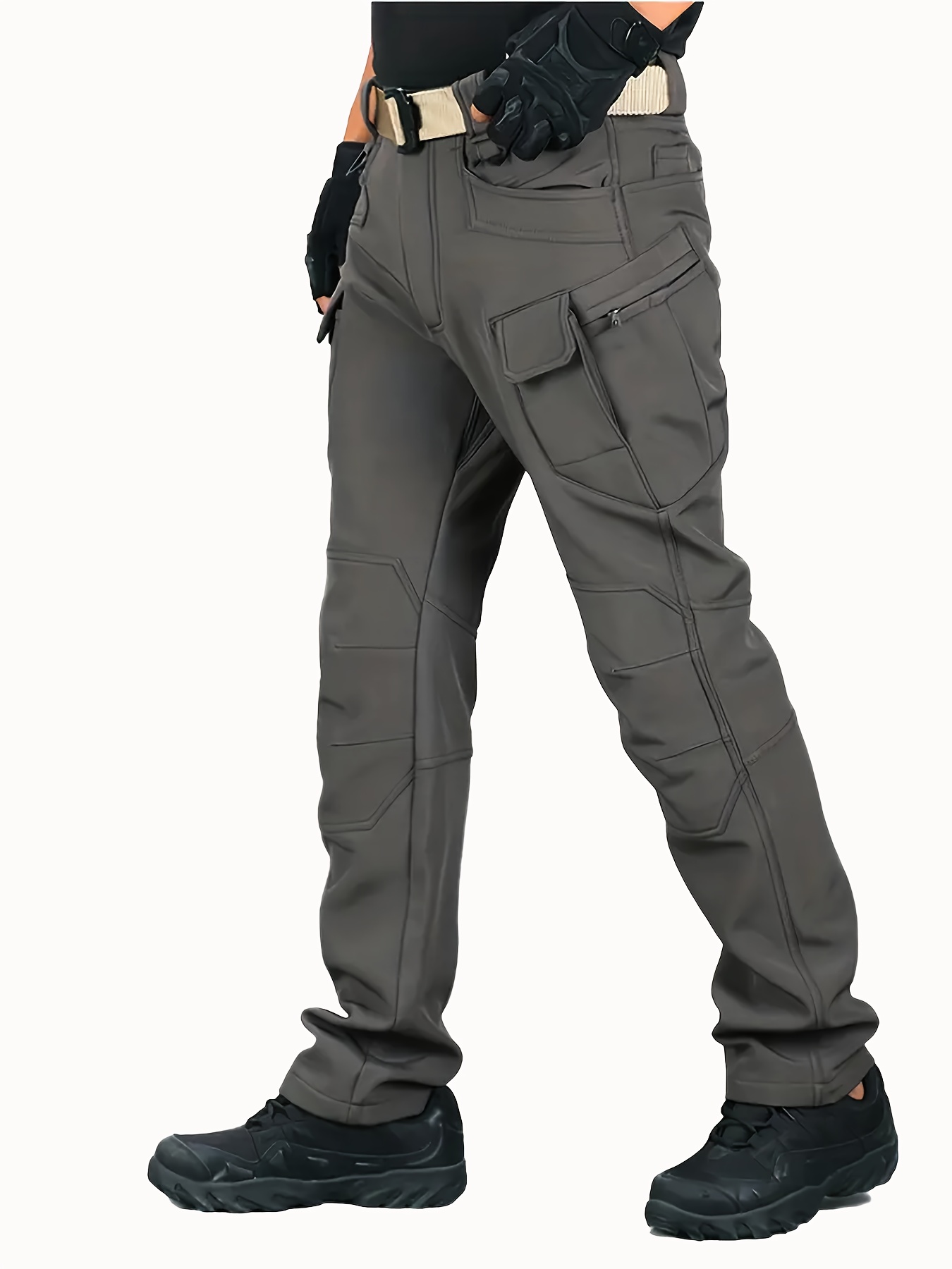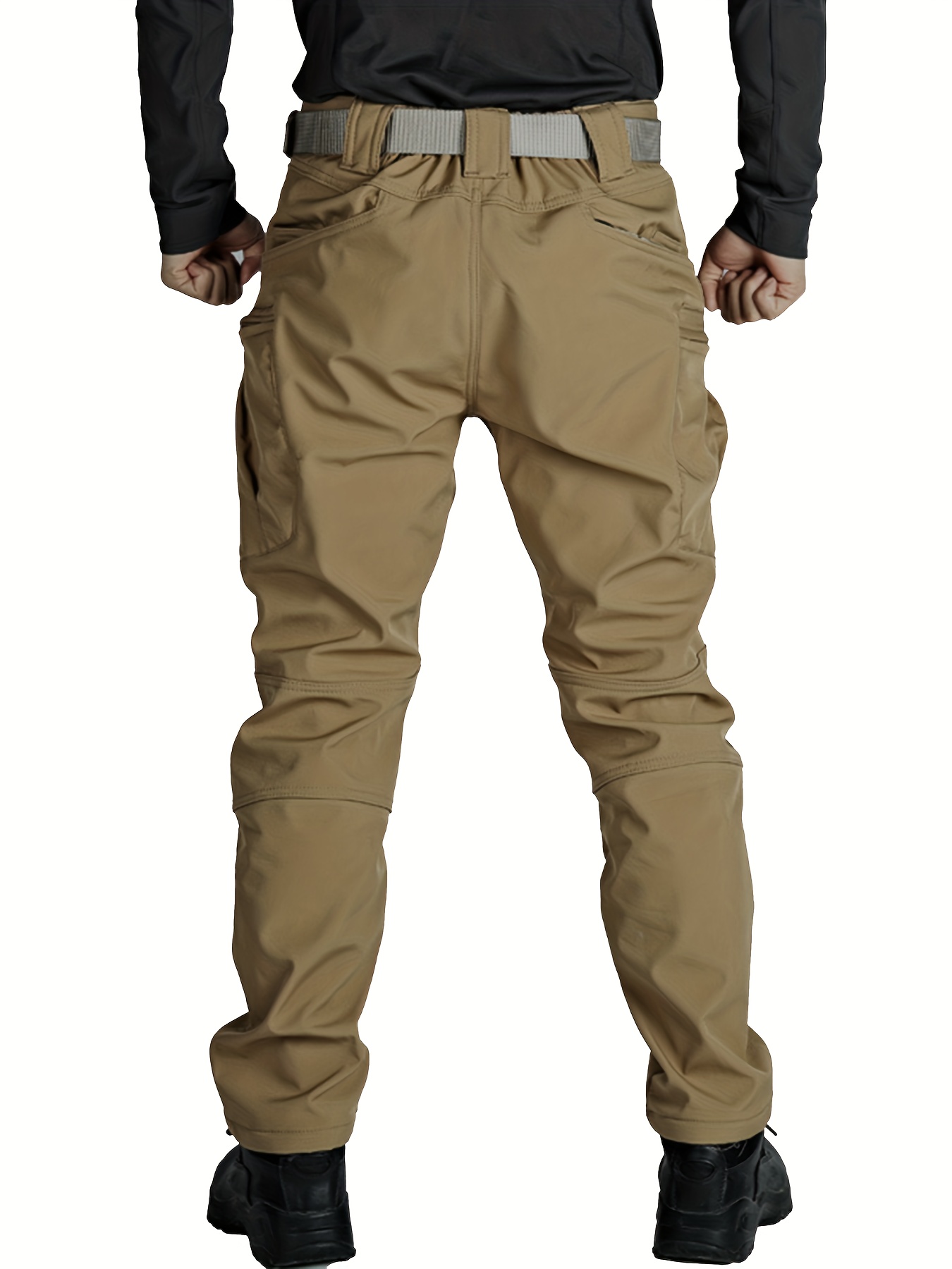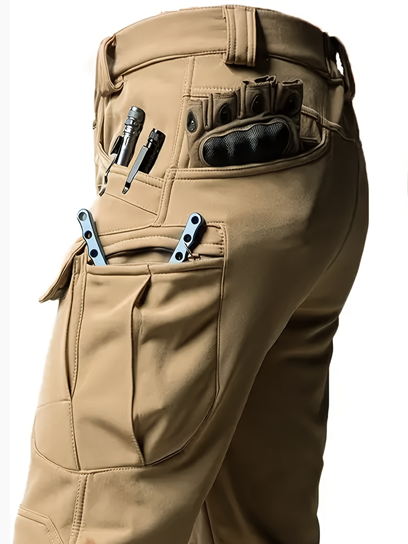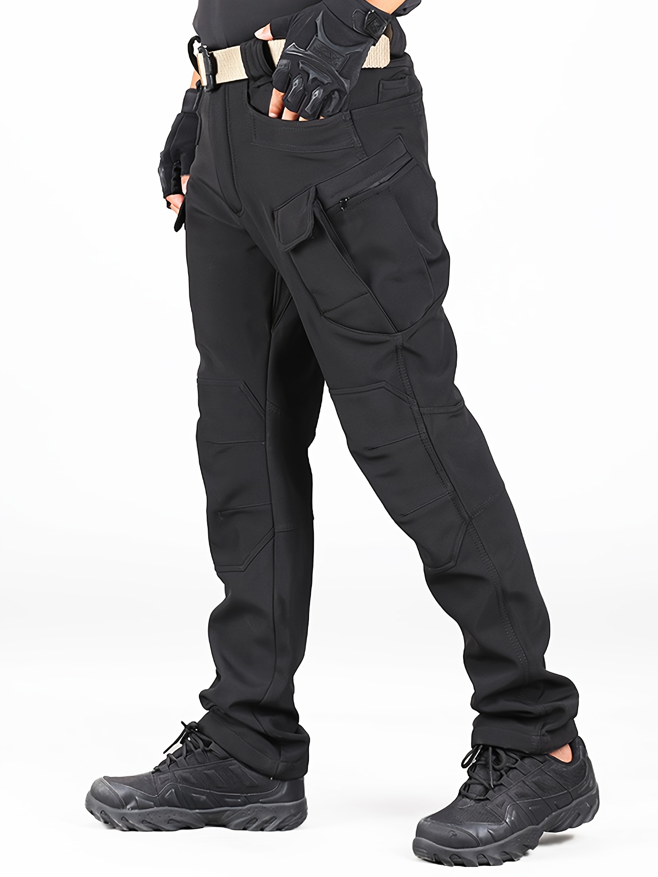 Pantalon cargo tactique en polaire pour homme – multi-poches, couleur unie, coupe-vent, tissu micro-extensible 295 g, idéal activités outdoor, randonnée et usage quotidien (sans ceinture)