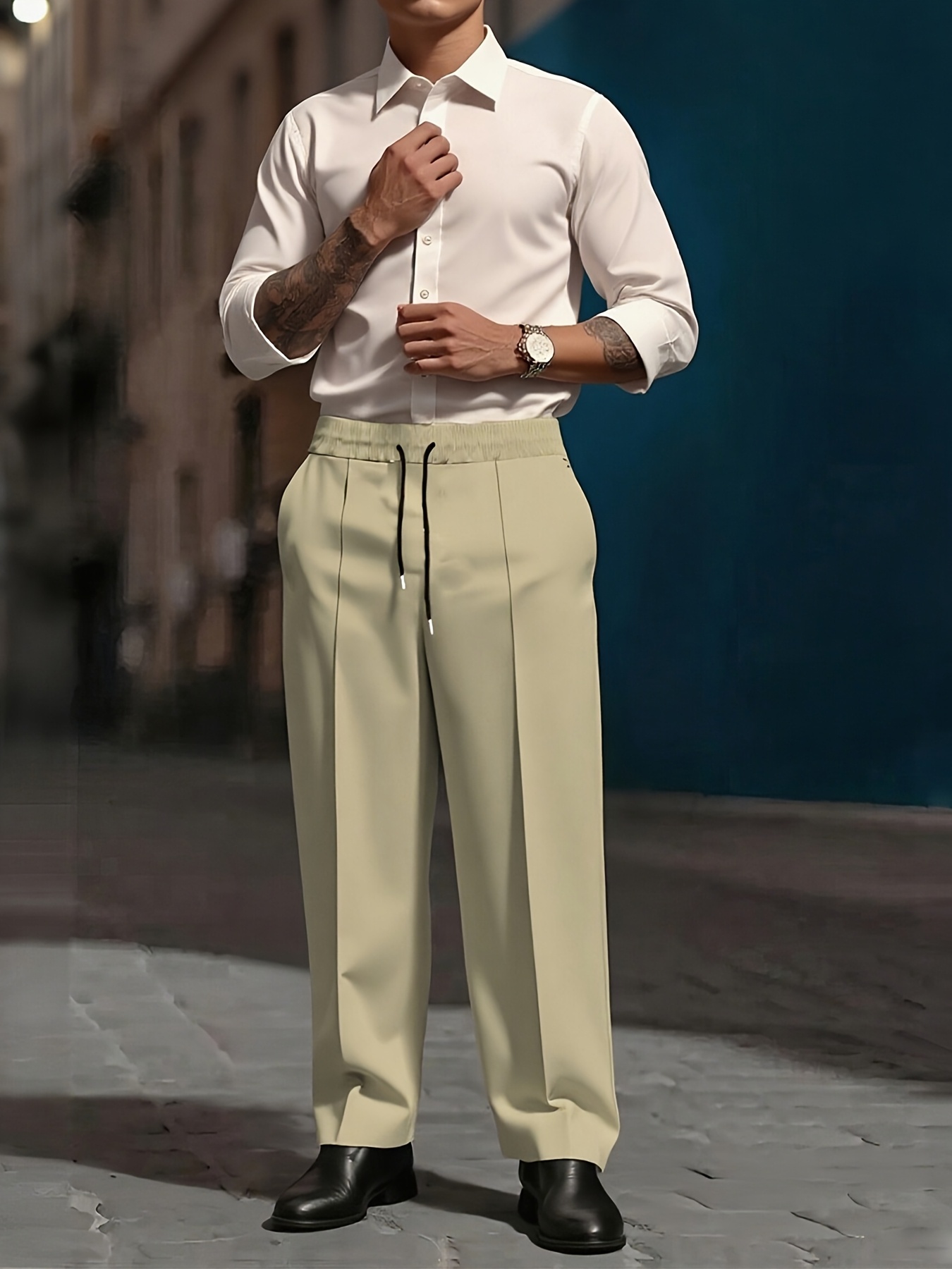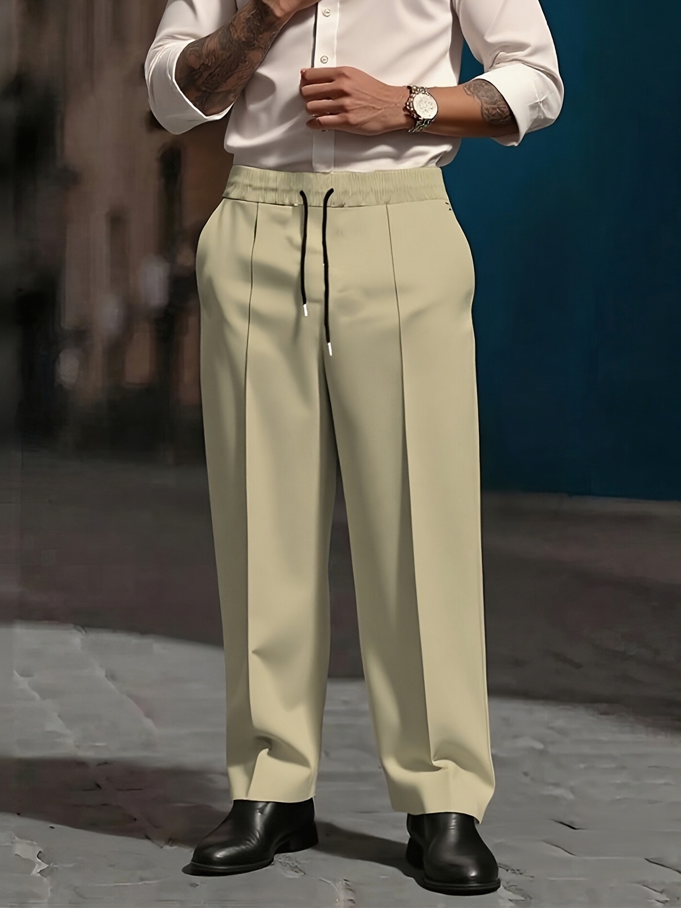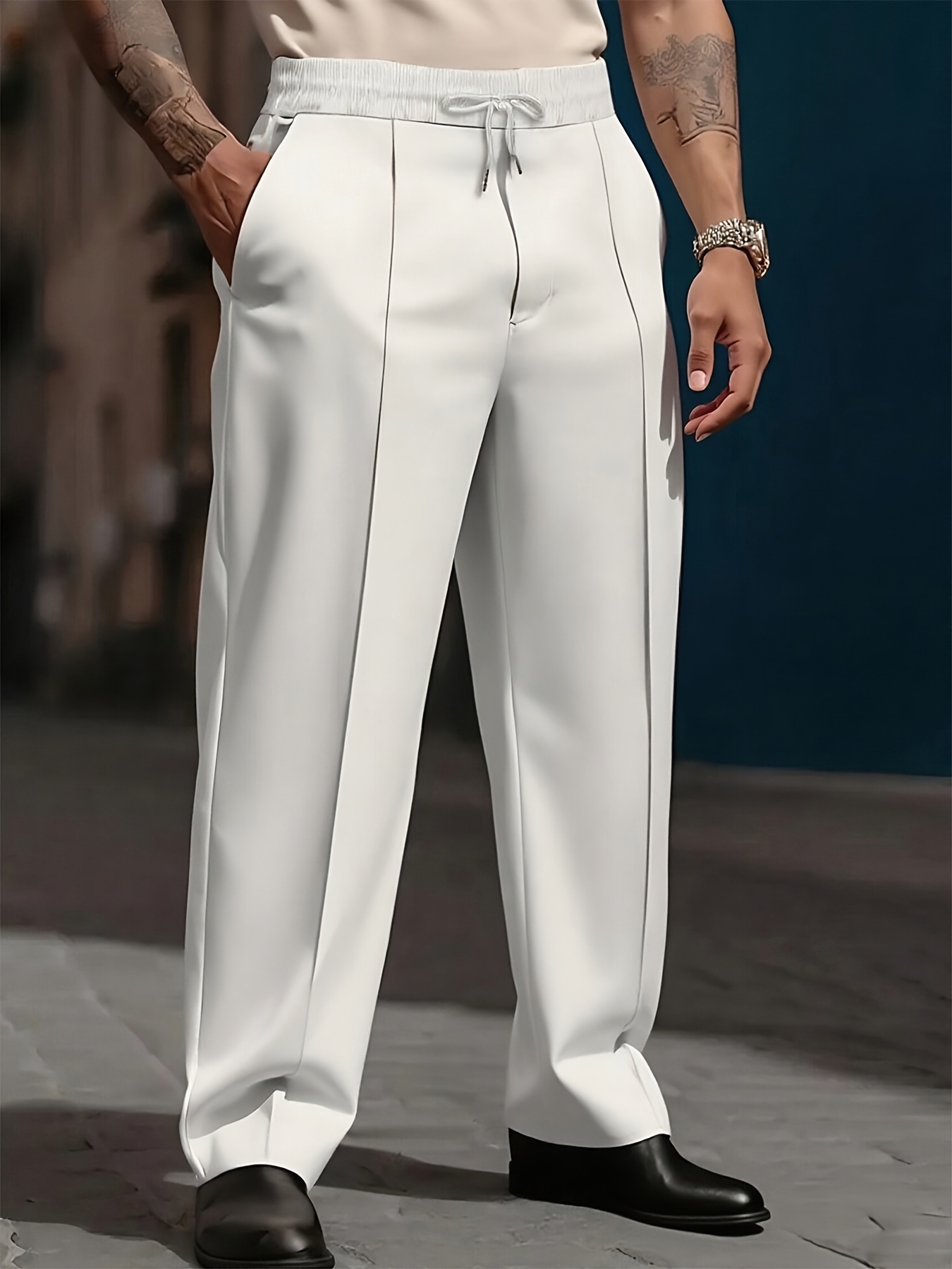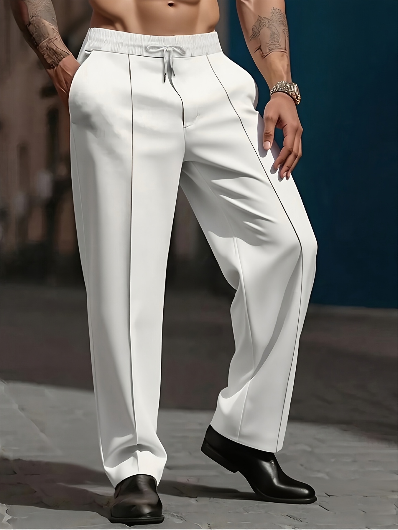 Pantalons Homme Lourds – Jambe Droite, Formels & Business, Blanc, Anti-Rides, Tout Saison