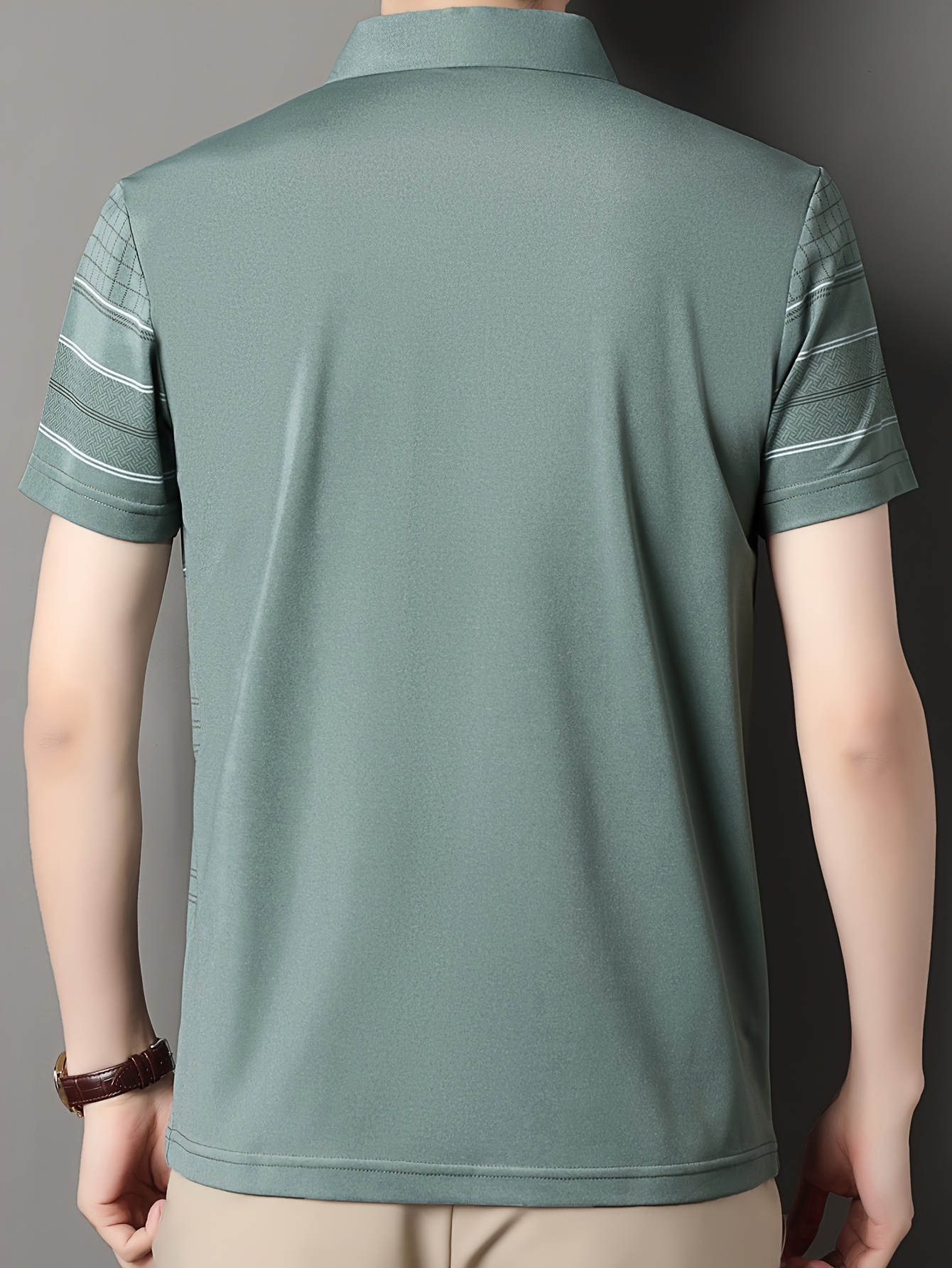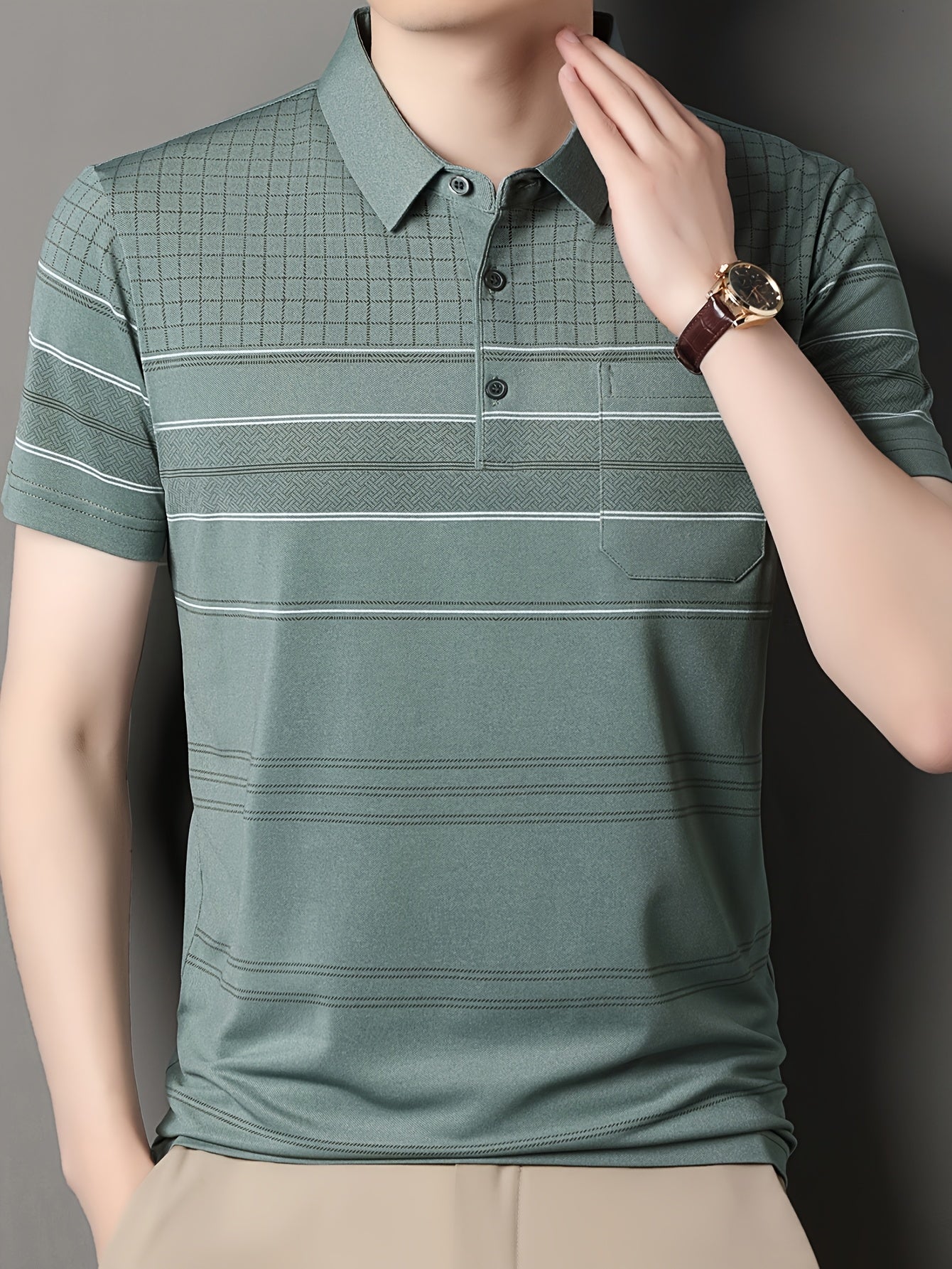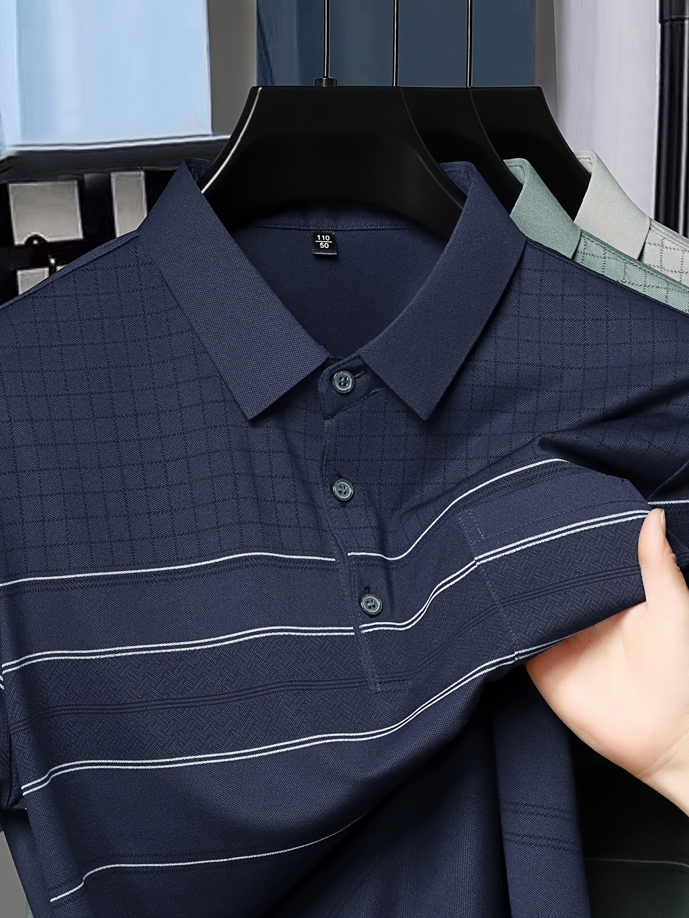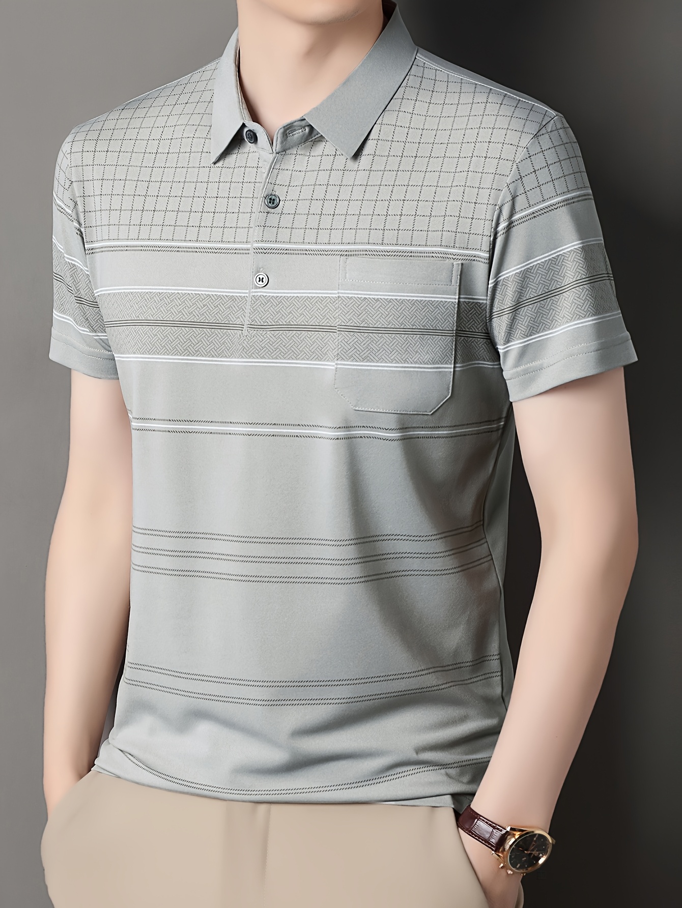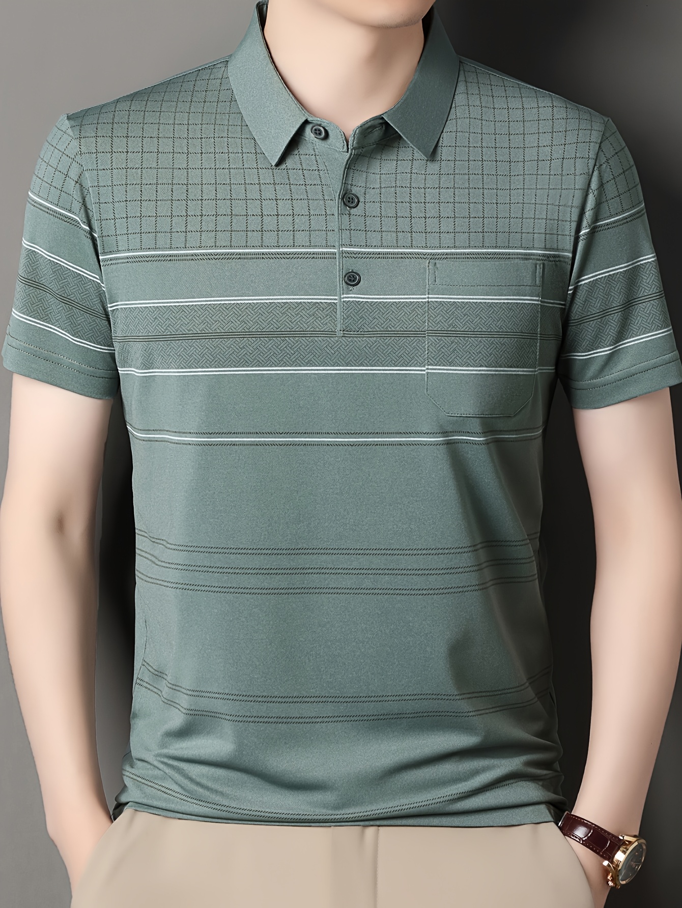 Men'S Summer Casual Short Sleeve T-Shirt with Pockets, Striped Pattern, Half Placket Lapel Collar, Regular Fit - Ideal for Work and Casual Attire, Work Uniform|Short Sleeve Shirt|Sleek Look