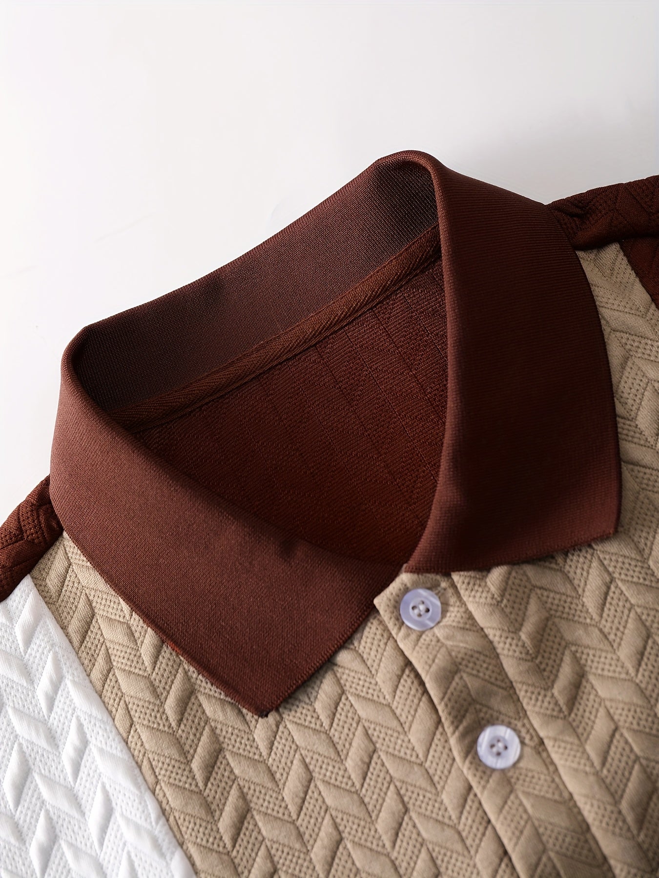Men's Summer Shirt - Short Sleeve Geometric Pattern Button-Up Collar, Contrast Color Block Design, Breathable Knit Fabric, Machine Washable Casual Top for Office & Leisure, Relaxed Fit Apparel, Easycare Clothing