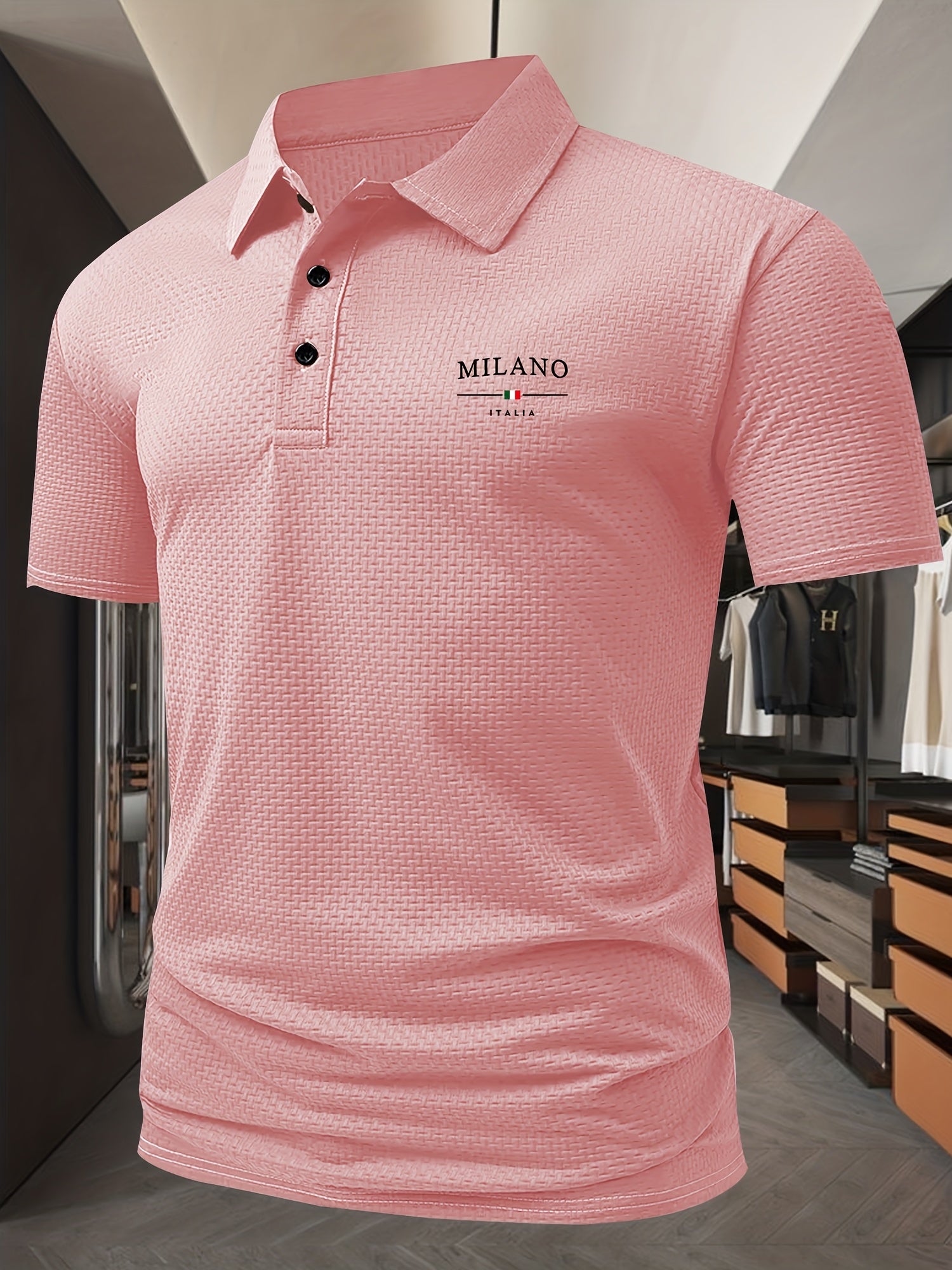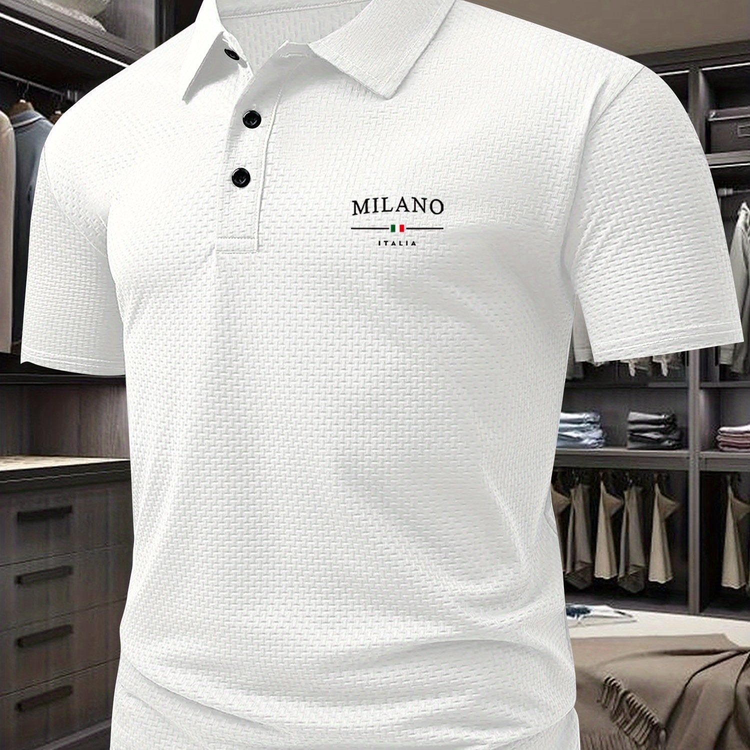 Milano Men'S Casual T-Shirt - Breathable Regular Fit Short Sleeve Shirt with Geometric Print, Button-Up Collar for Summer Comfort & Casual Attire, Comfortable Clothing, Easycare Material