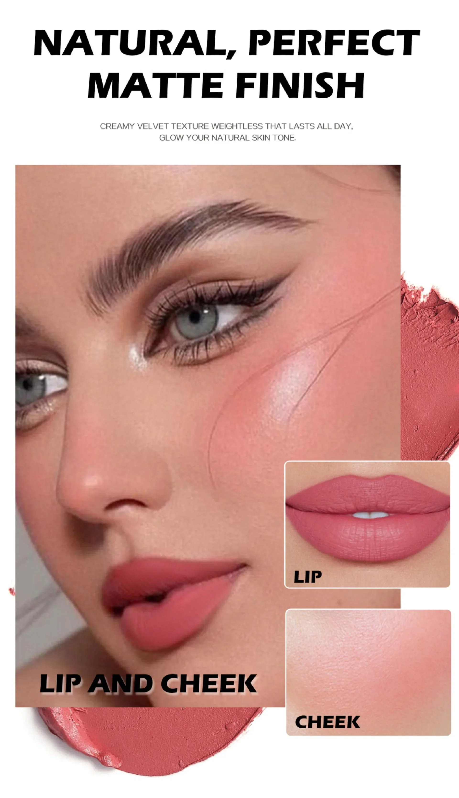 Blush Visage Mat Naturel — Texture Velours Lisse, Crème pour Lèvres et Joues, Rouge, Waterproof, Maquillage Complet
