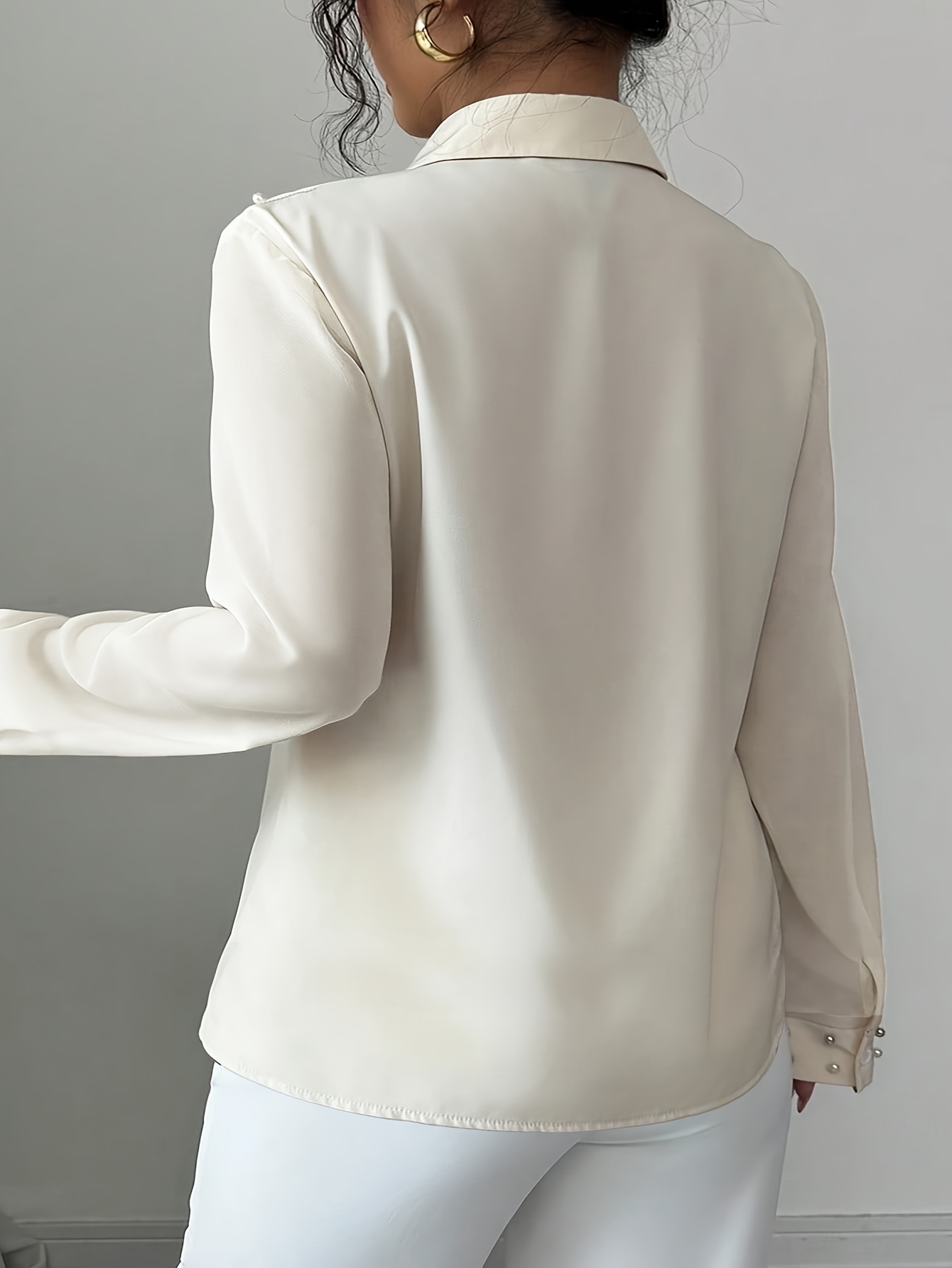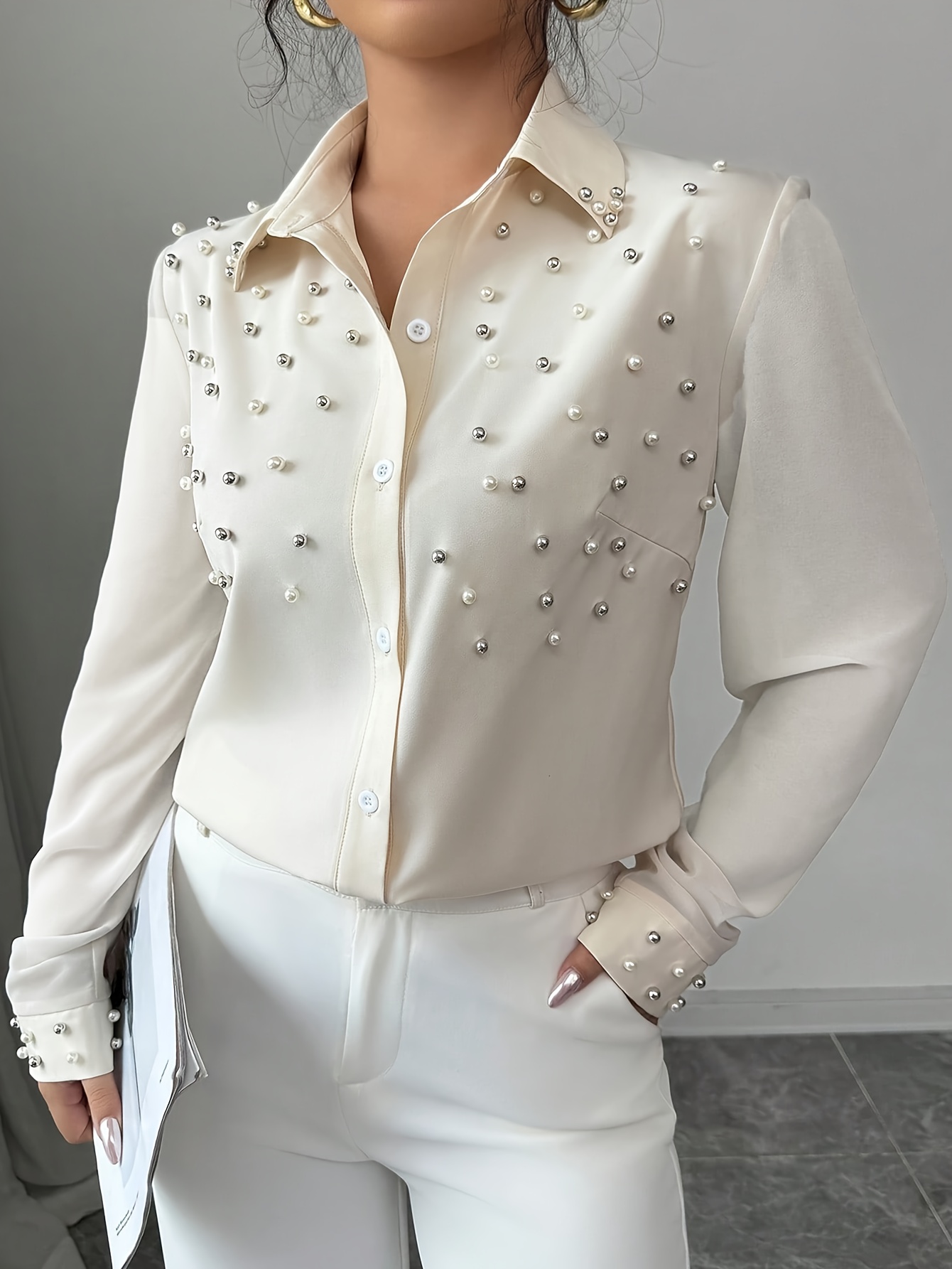 Chemisier grande taille pour femmes avec perles – haut élégant à manches longues, chemises longues pour femmes grande taille, blouse de haute qualité avec boutons, manches longues, idéal pour soirées et occasions habillées