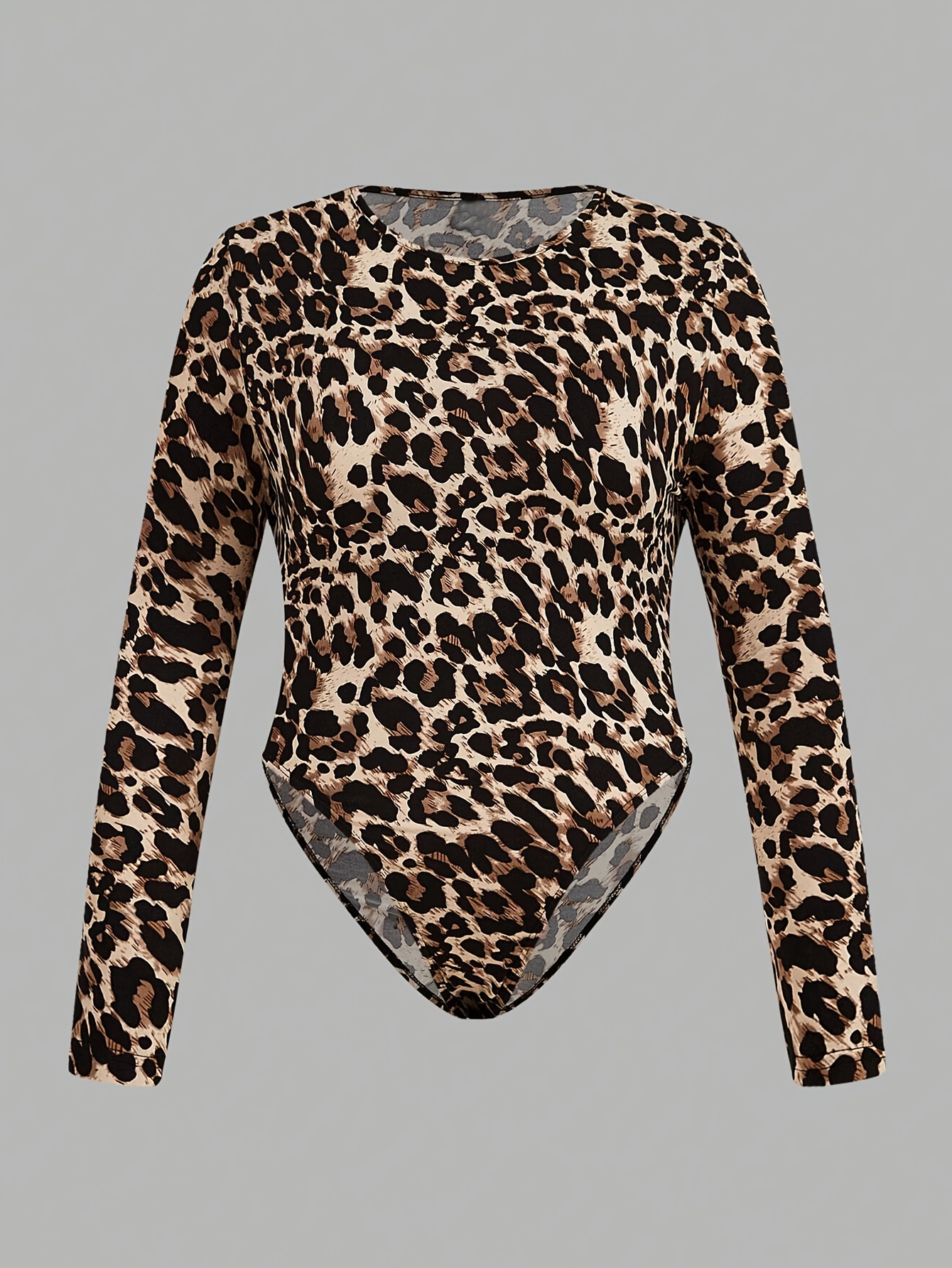 Ensemble 3 pièces grande taille pour femmes – T-shirts ajustés à manches longues, col rond, couleur unie et imprimé léopard, casual