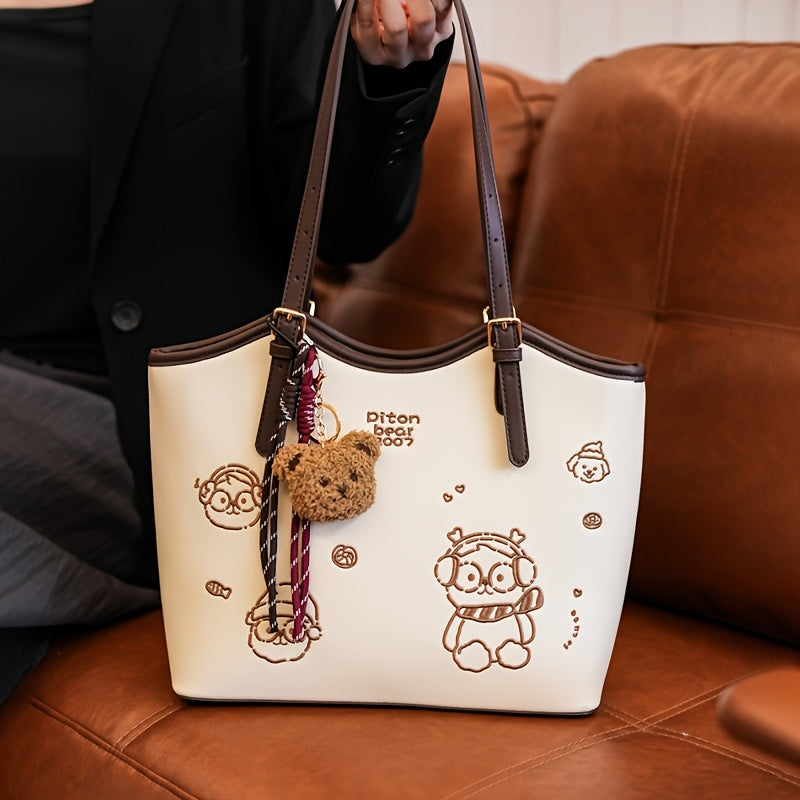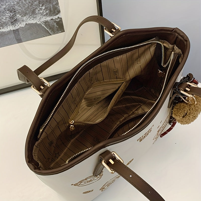 Sac Cabas Femme Stylé – Grande Capacité, Détails Marron, Motif Animal Amusant, Parfait pour le Quotidien et les Déplacements, Poignées Solides
