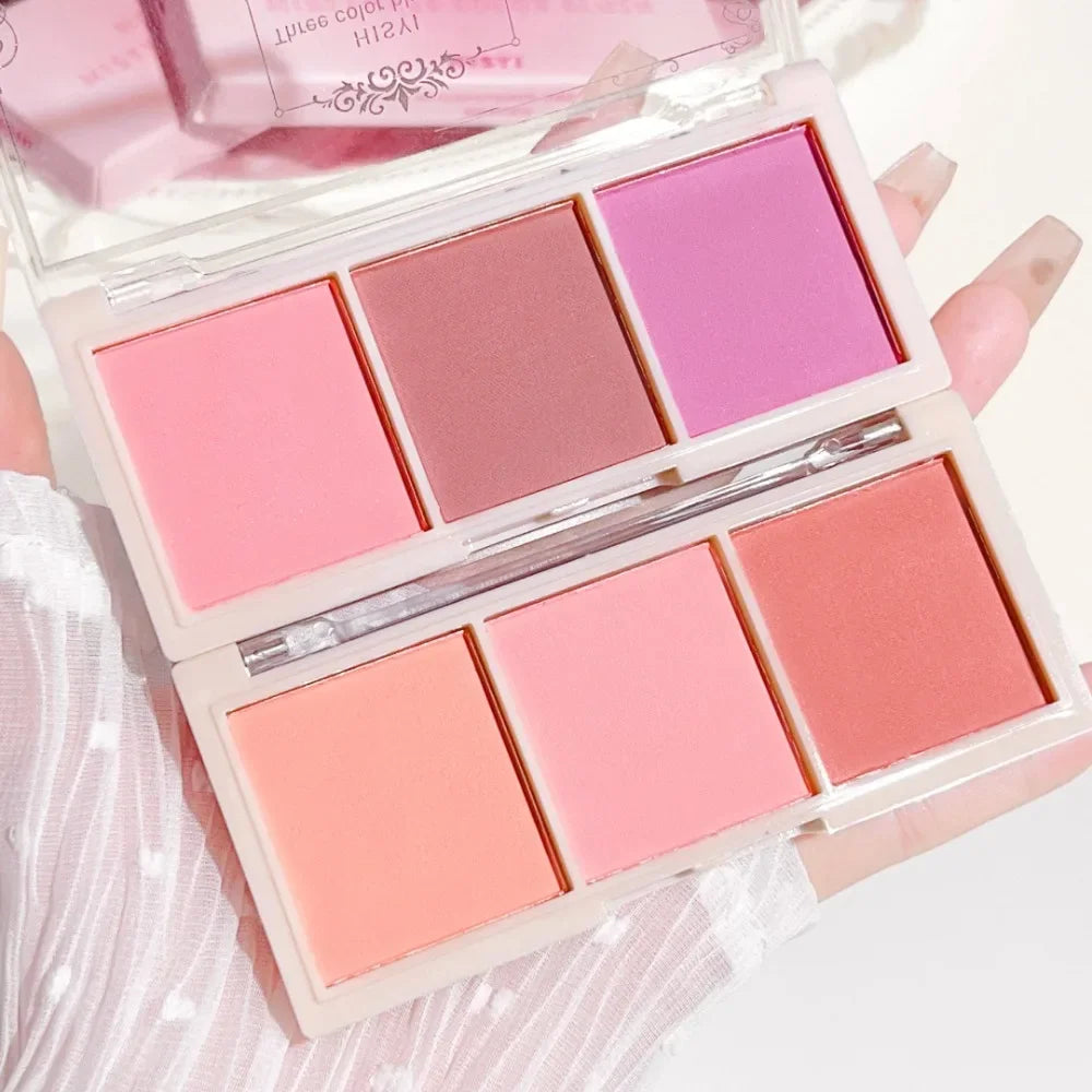 Blush Trois Couleurs — Rendu Naturel, Poudre Délicate Sans Chute, Fini Mat, Tenue Longue, Teinte Violet pour un Maquillage Frais et Éclatant
