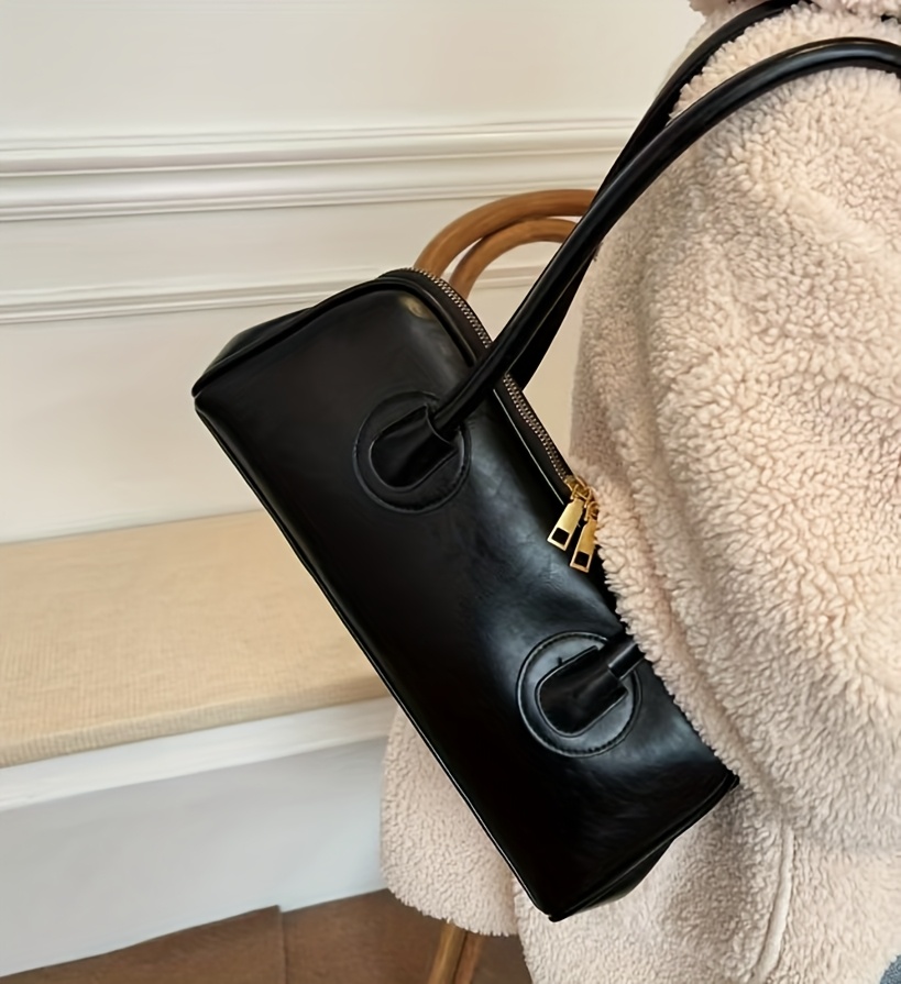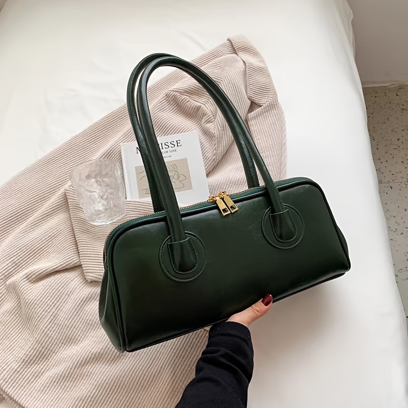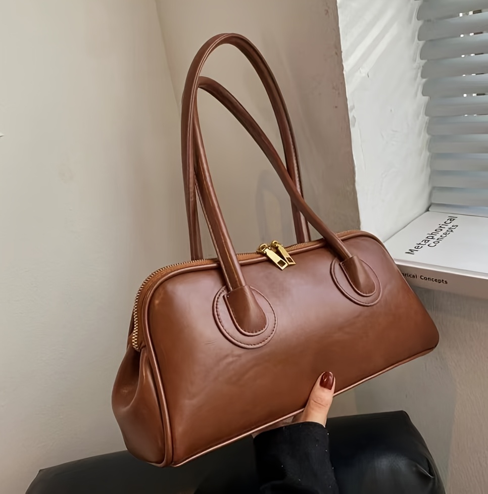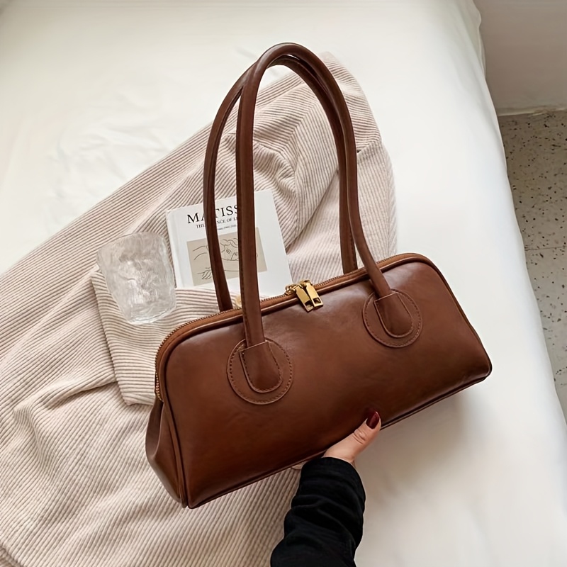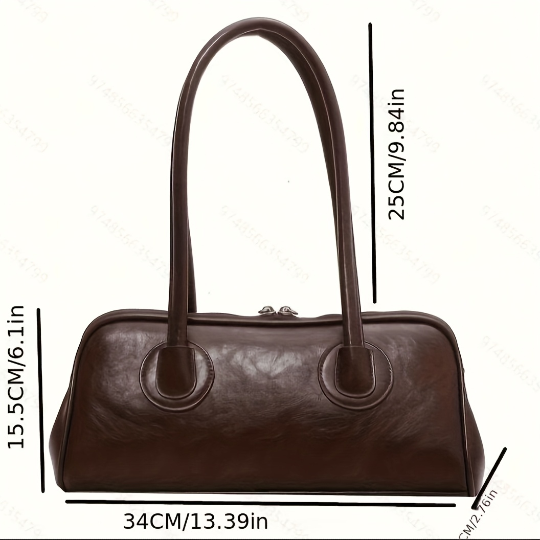 Sac épaule vintage pour femmes – style baguette français chic automne/hiver 2025, doublure polyester, fermeture zippée, marron foncé élégant avec ferrures dorées, polyvalent et sécurisé pour voyages