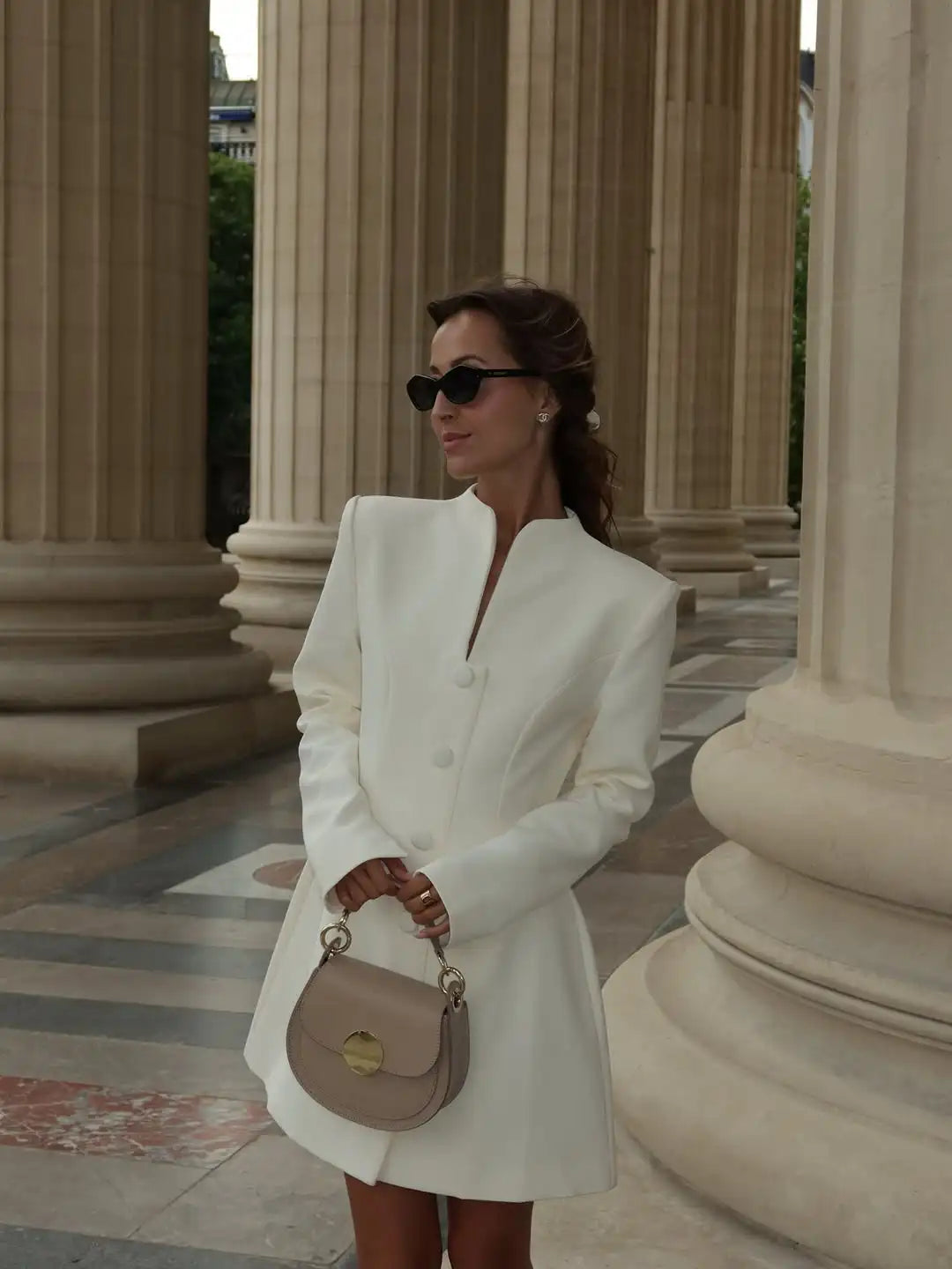 Grâce à sa teinte blanche unie et à son design plissé au niveau de la taille, cette robe s’adapte facilement à différentes occasions : dîners élégants, soirées ou sorties estivales.