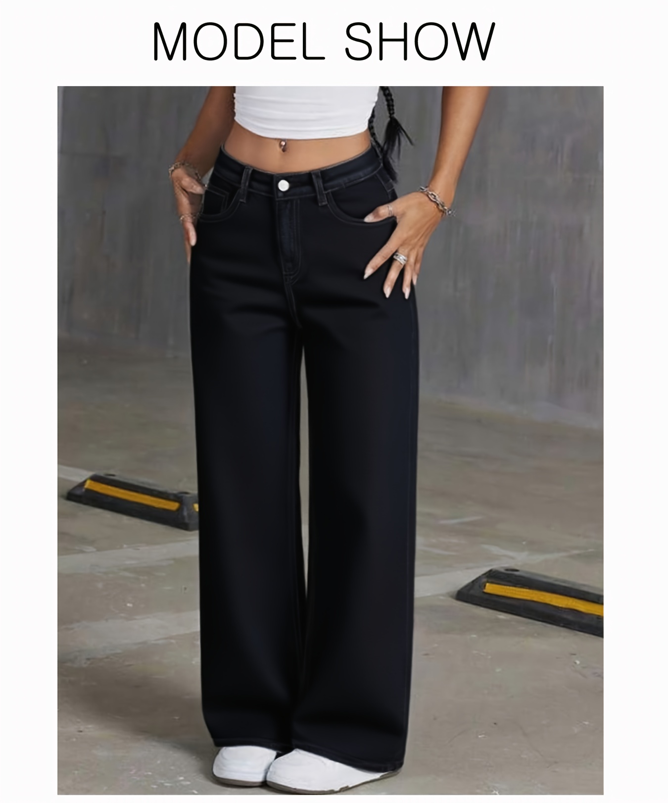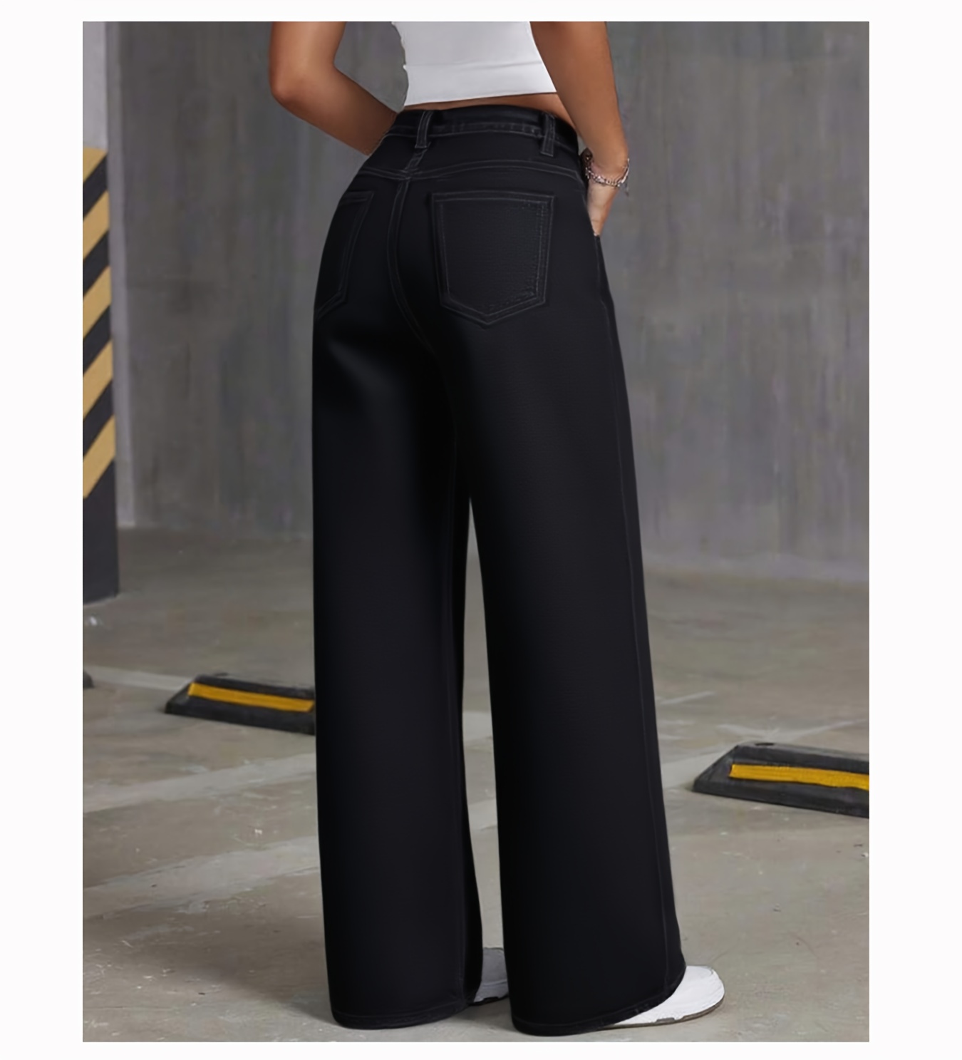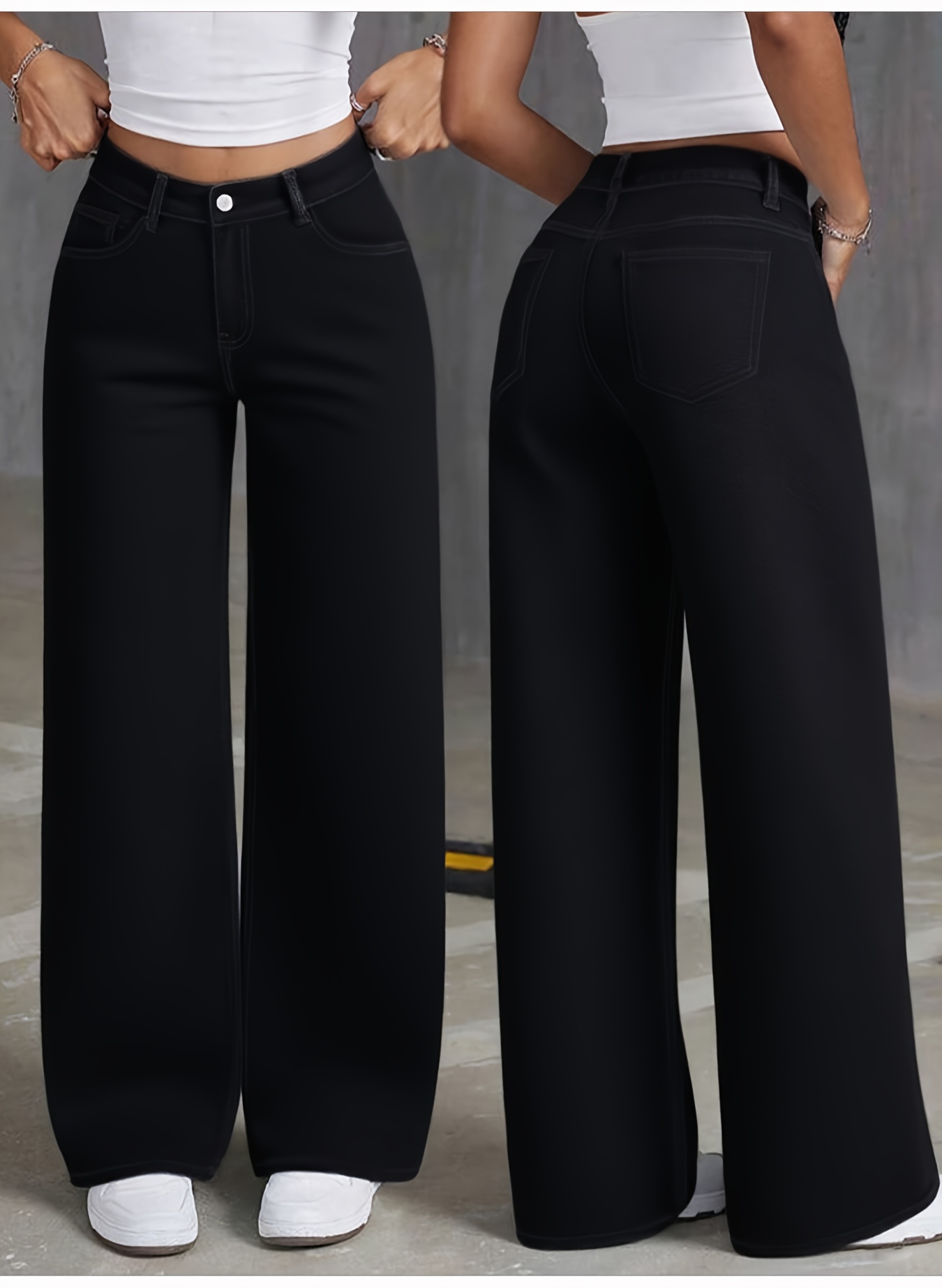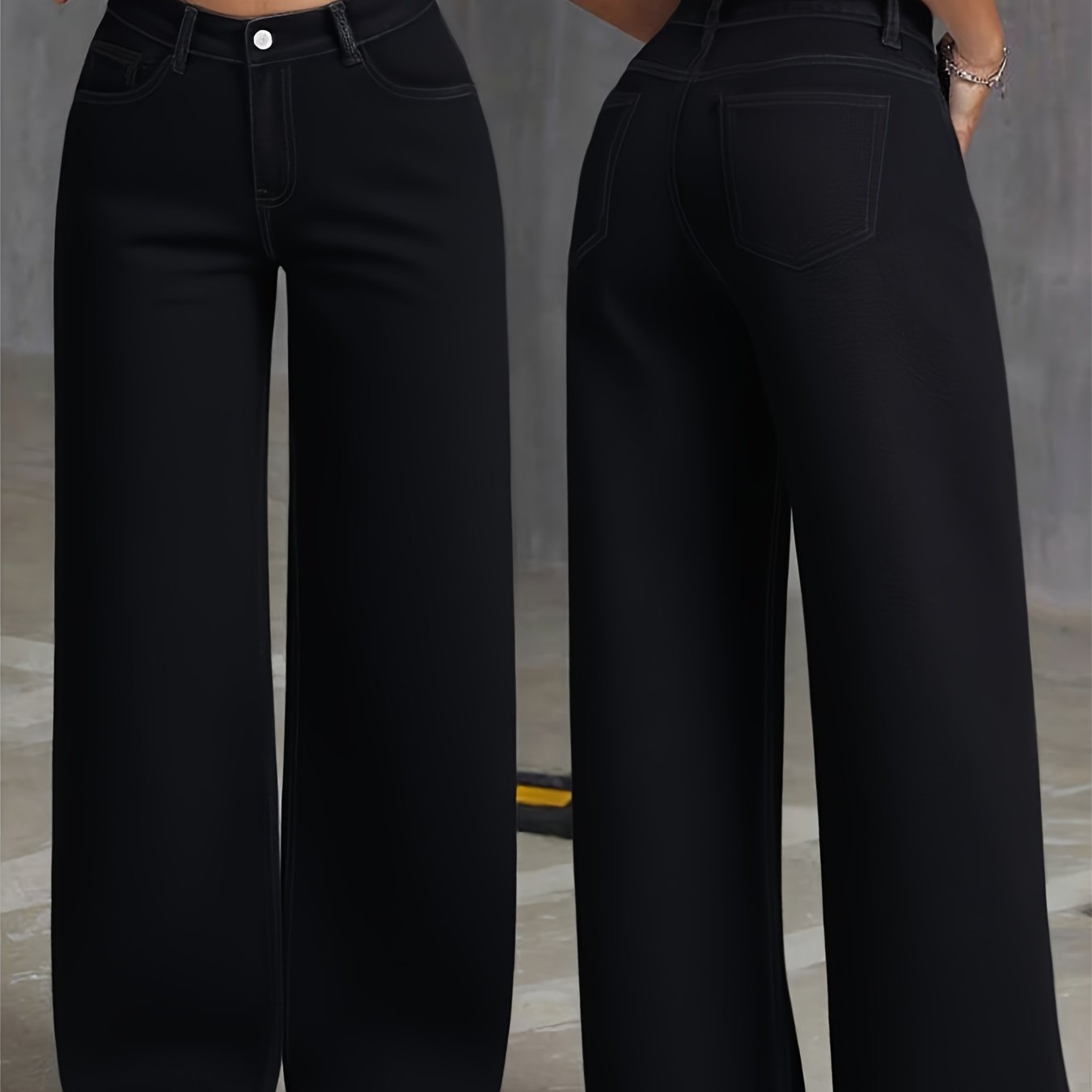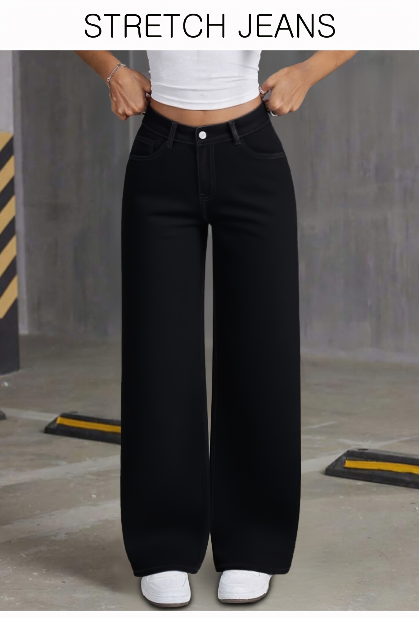 Jeans Femme Noir Jambe Large Extensible Poches Confortable Polyvalent Toute Saison Décontracté